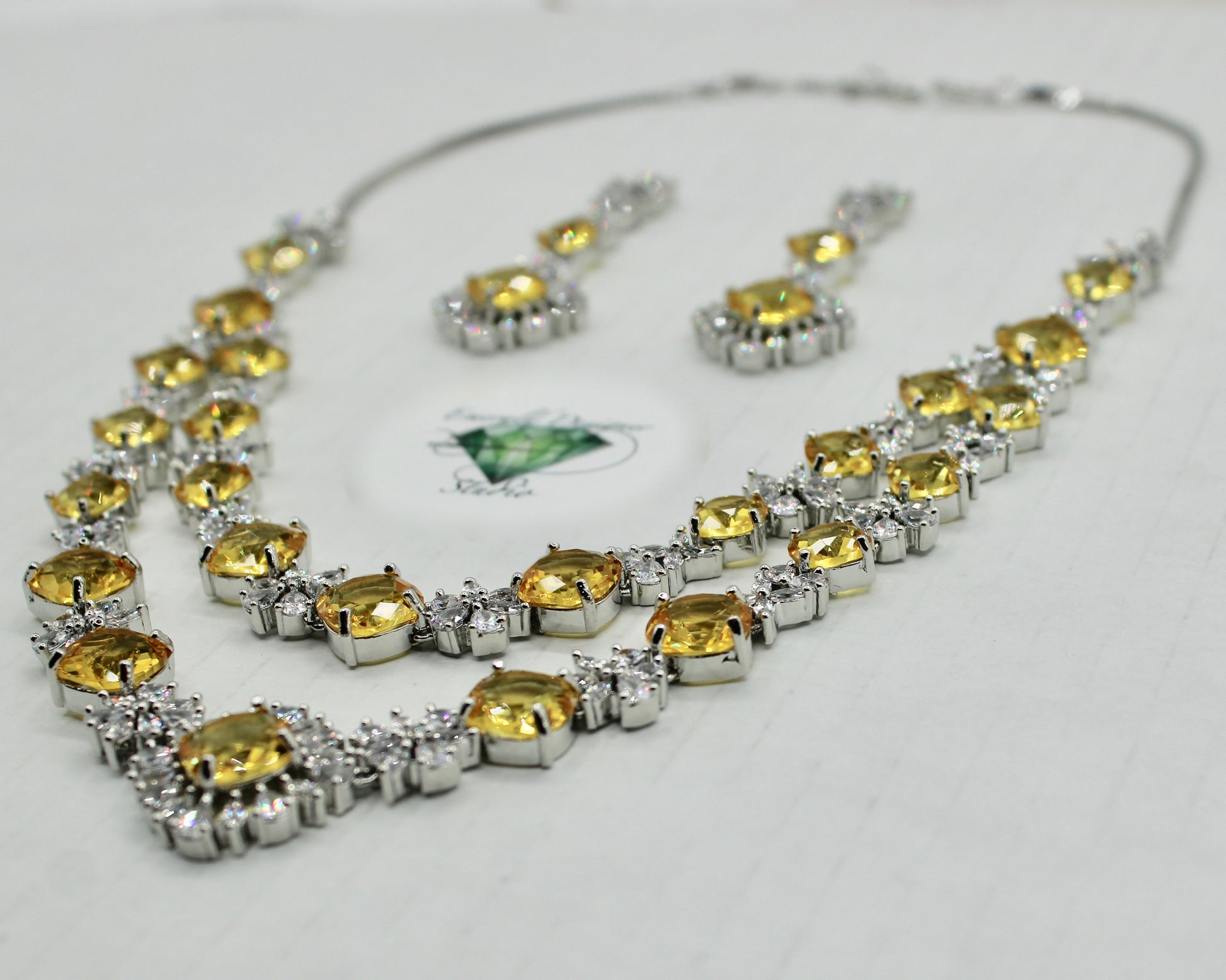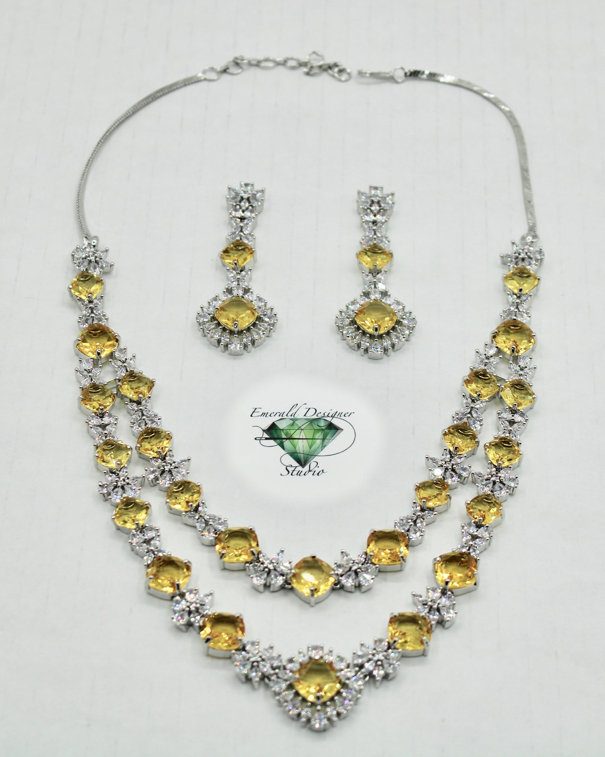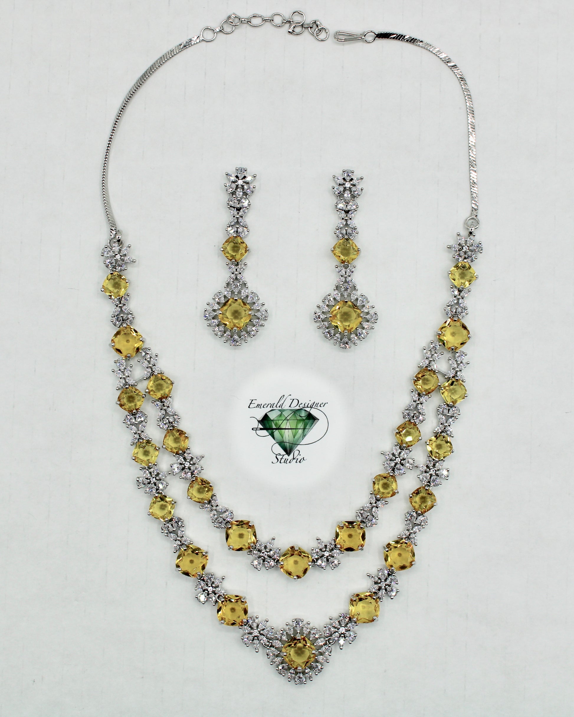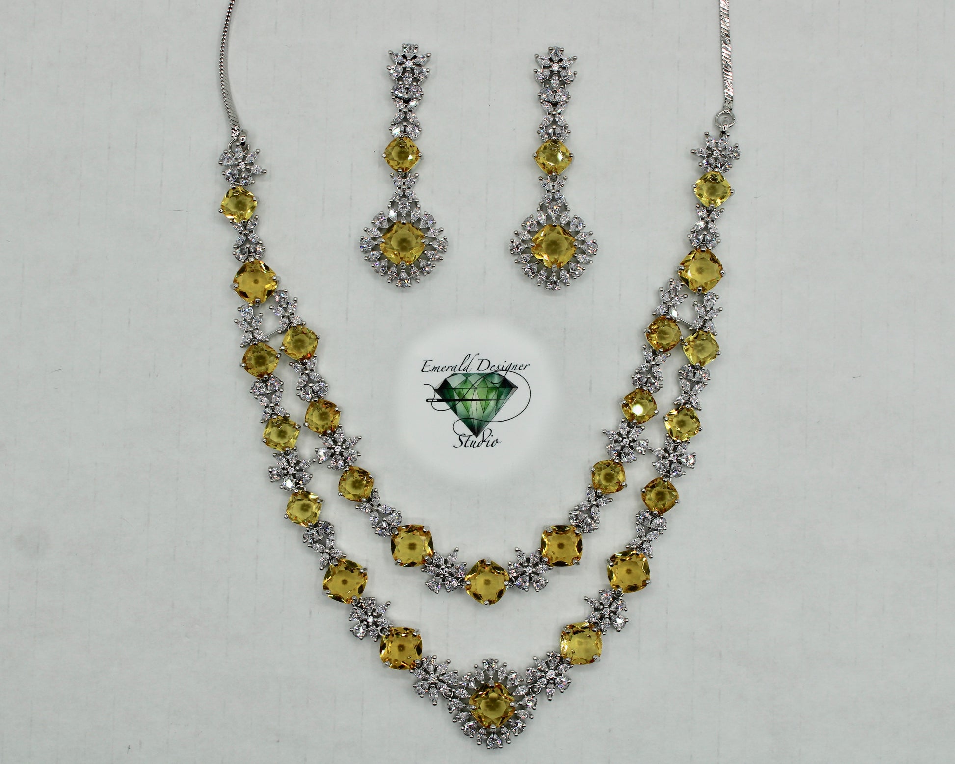 This layered necklace set is detailed with cubic zirconia throughout and is complete with matching earrings.