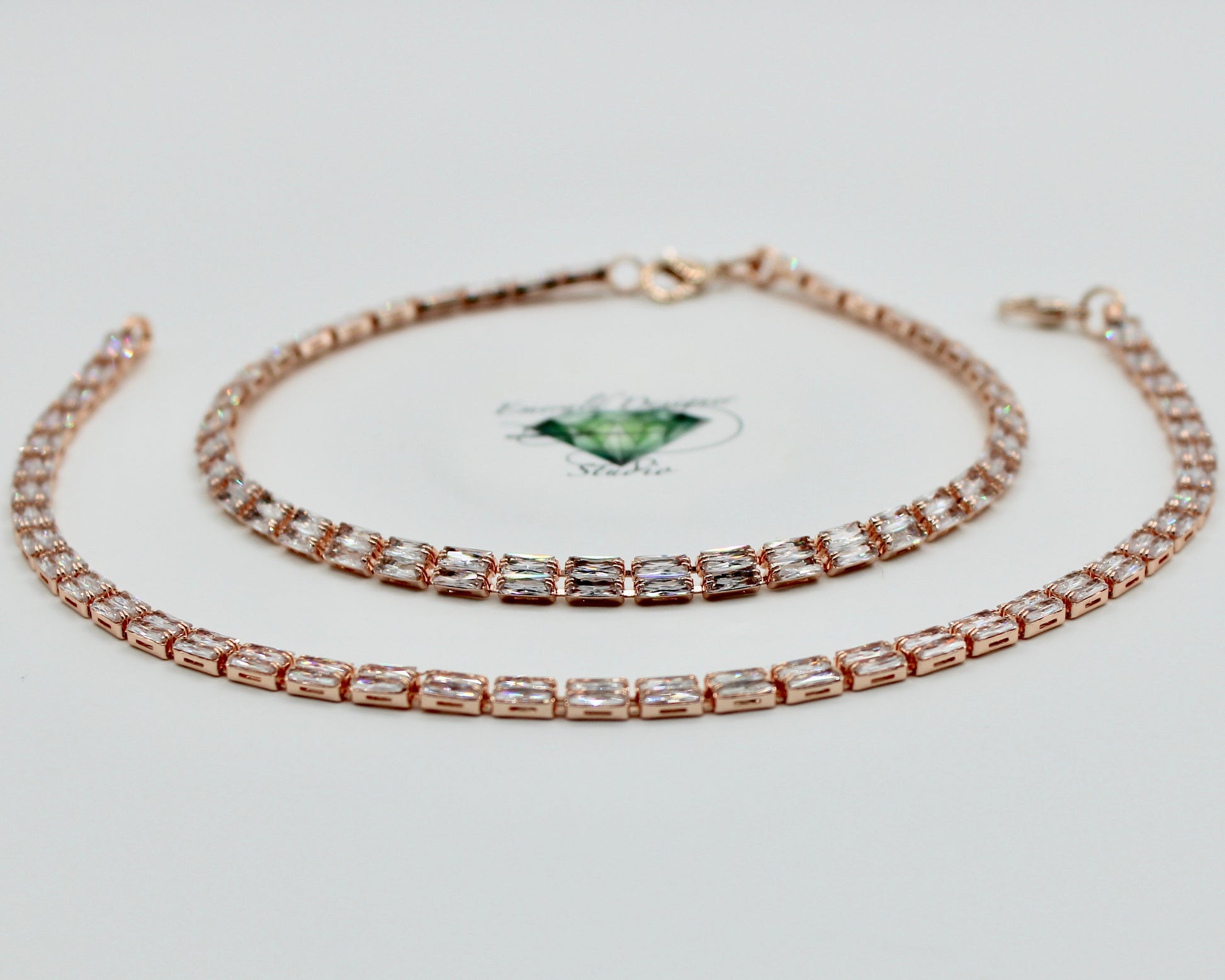These stunning double pencil cut cubic zirconia anklets are perfect for a minimalist look. These anklets can worn day-to-day as well. Made of brass to increase product lifetime.