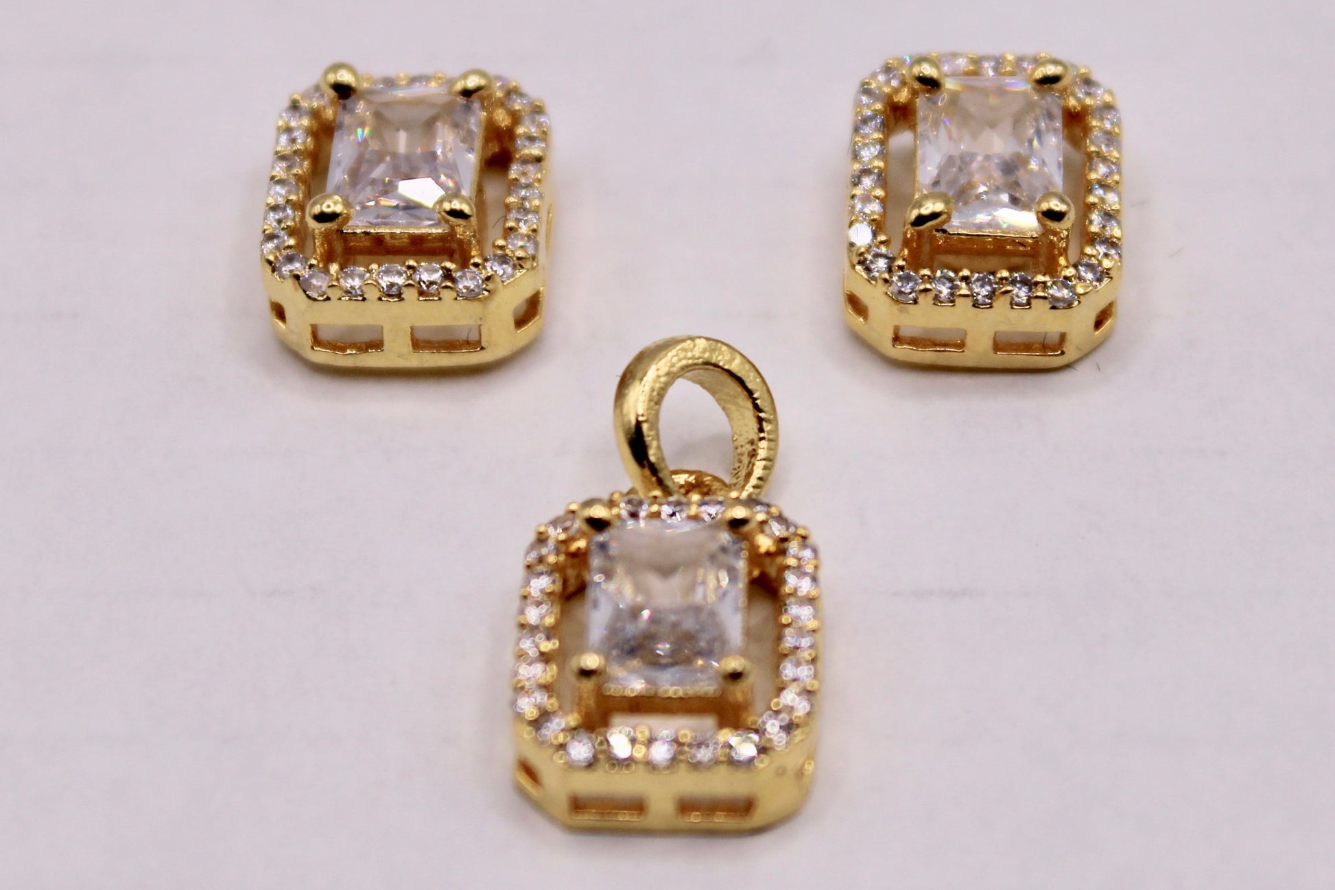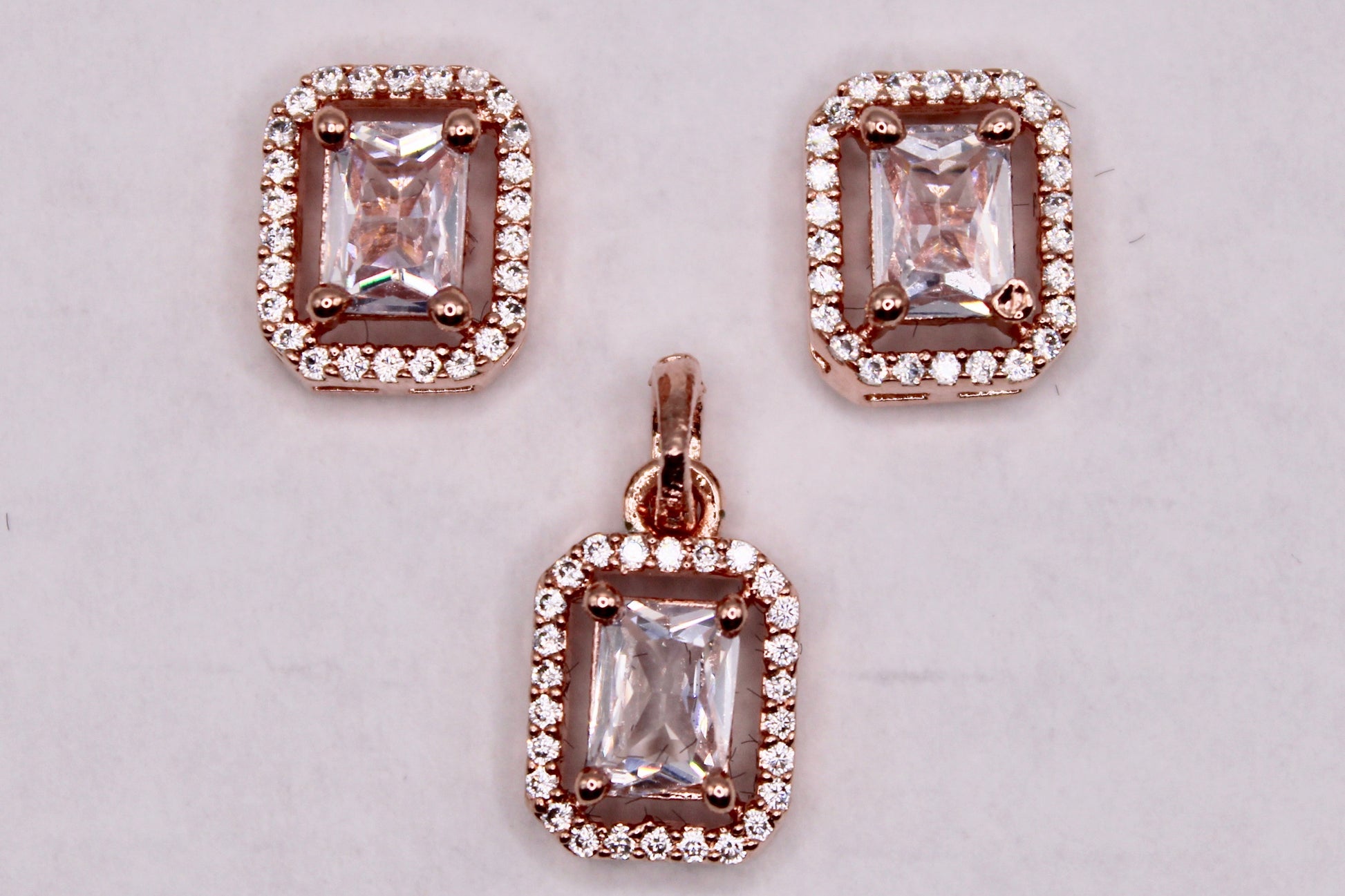 This stunning solitaire pendant set is complete with emerald cut cubic zirconia, and is available in three colours. This set can be styled with both eastern and western outfits.