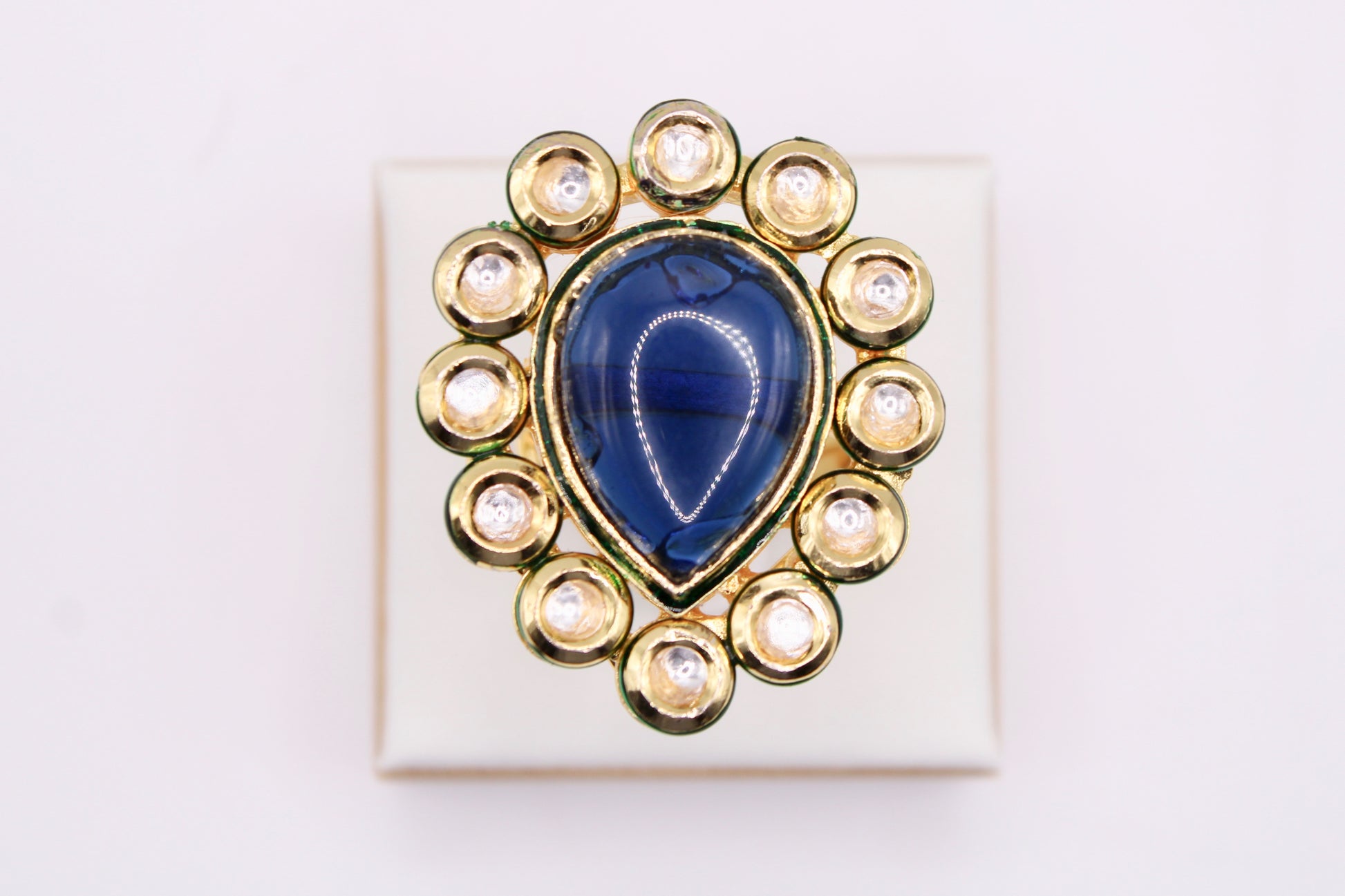 These lovely pear-shaped cocktail rings are hand-made kundan, and are truly timeless. Adjustable, made of brass to increase product lifetime.