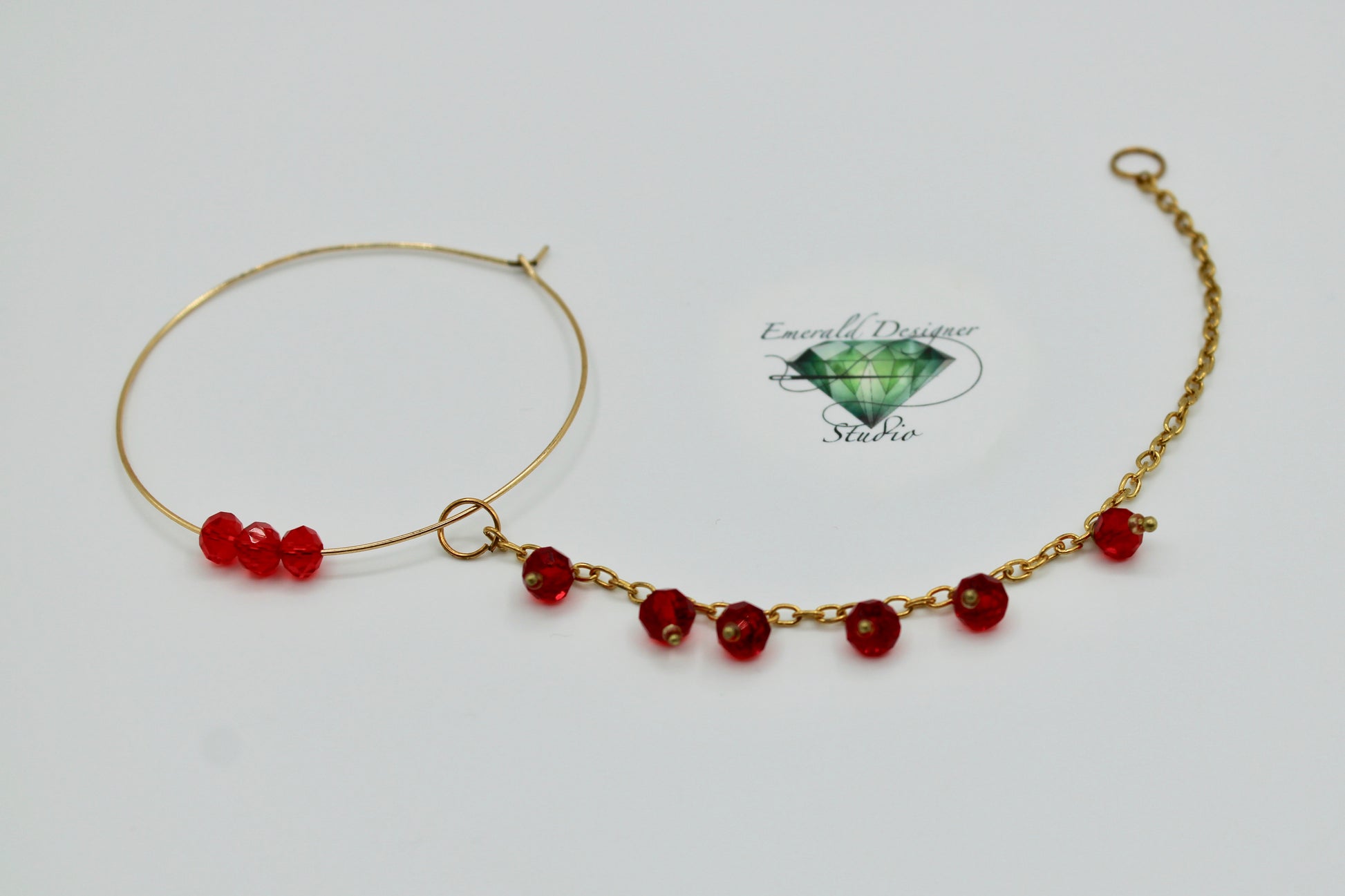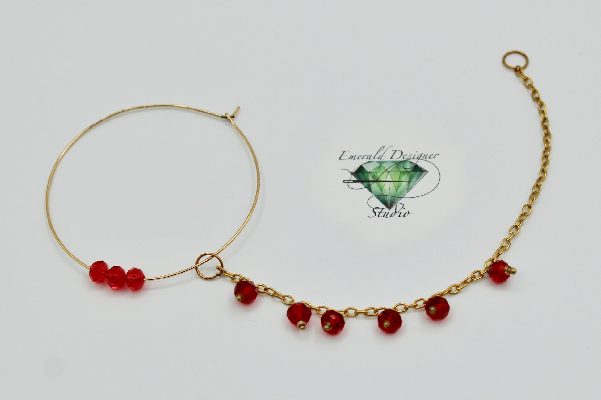 This delicate bridal nose ring is complete with crystal detailing and a crystal-detailed sahara.