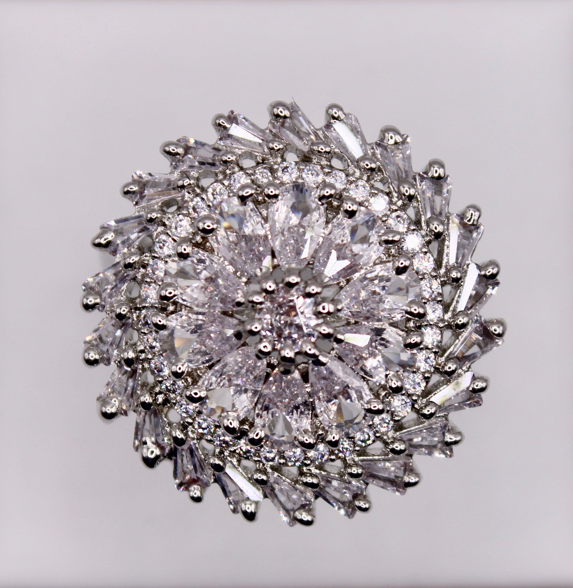 This stunning ring is complete with cubic zirconia flower detailing. Made of brass to increase product lifetime.