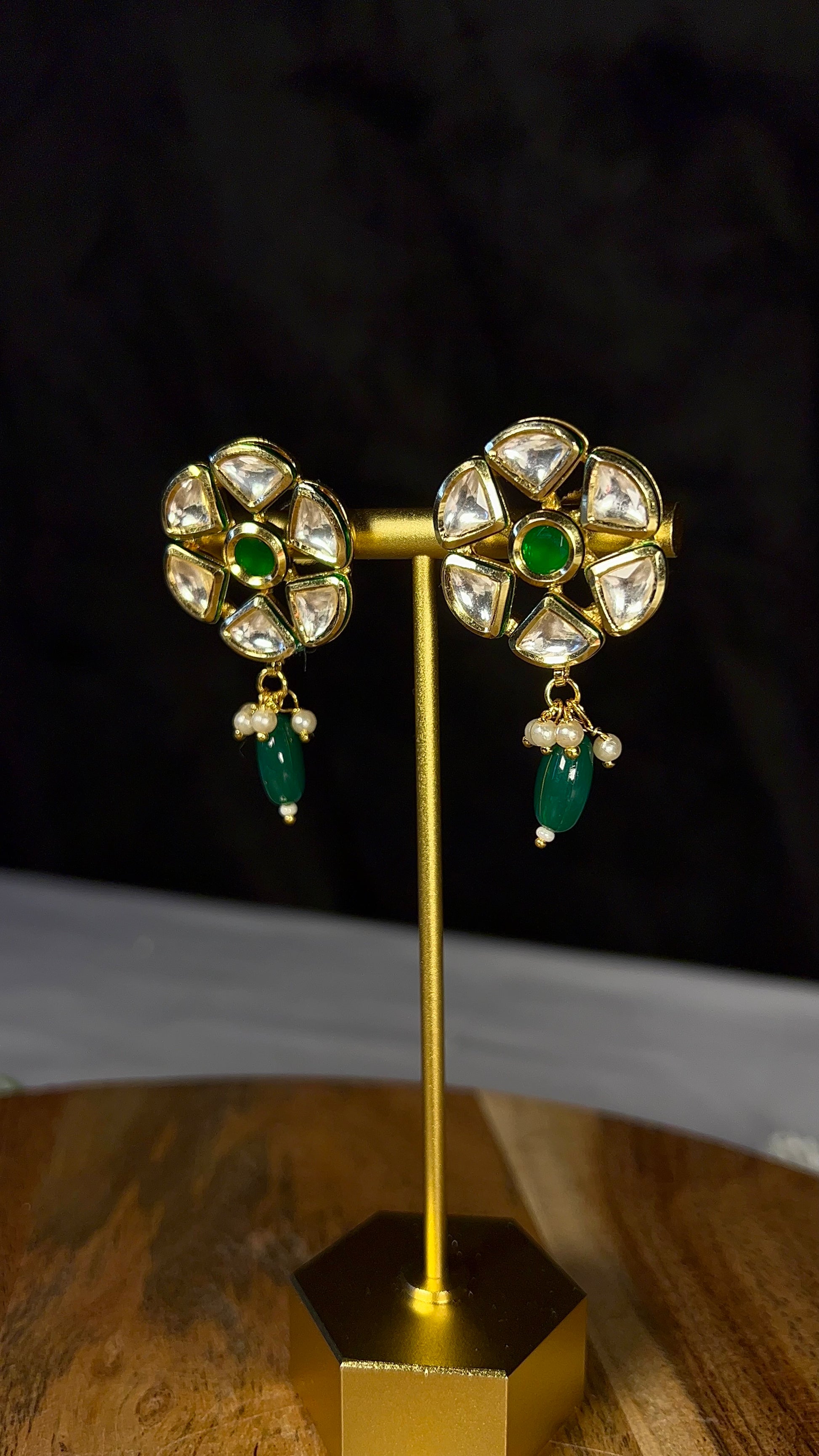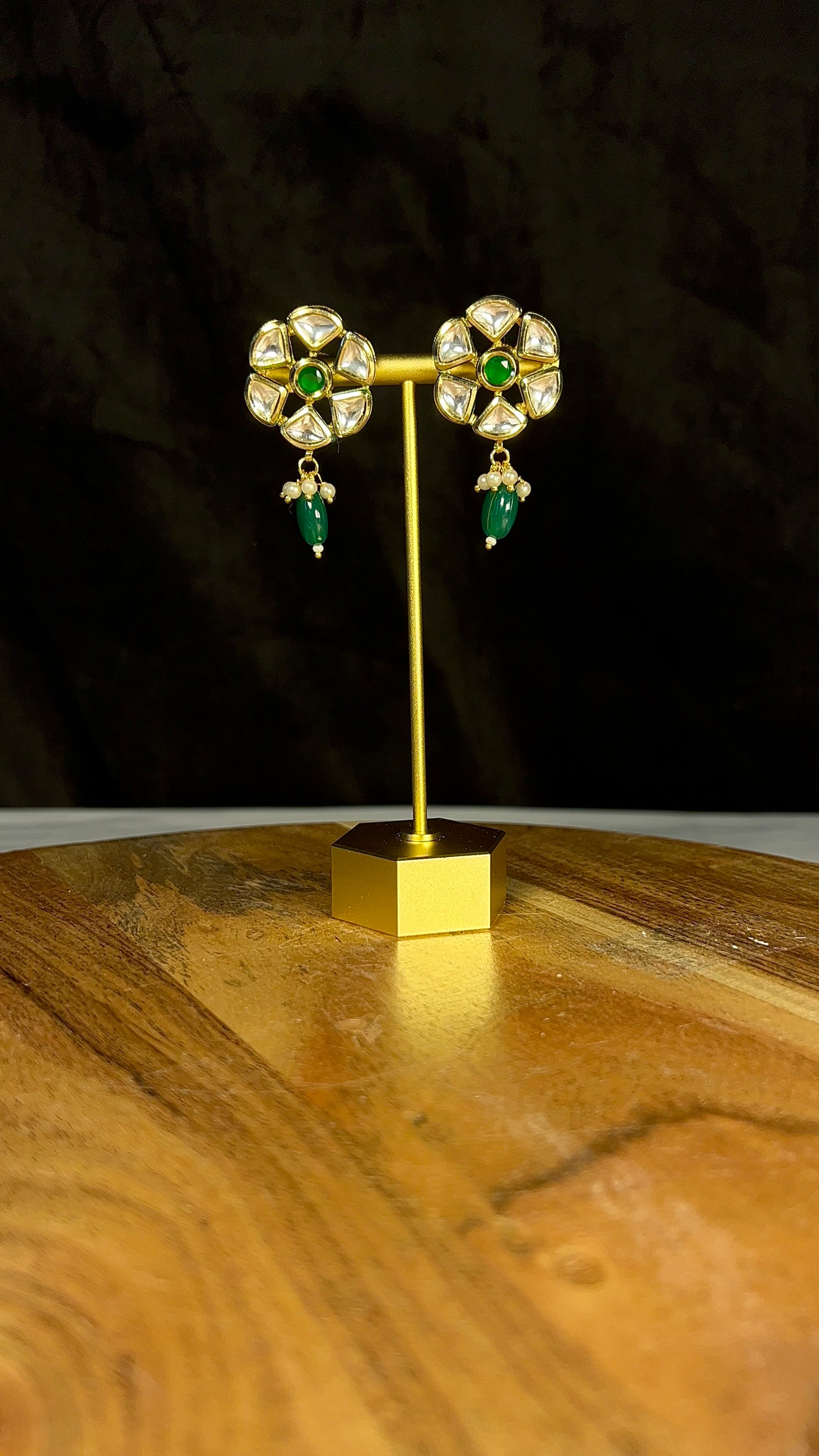 These graceful flower-shaped kundan studs are neutral and will go with any outfit. Made of brass to increase product lifetime.