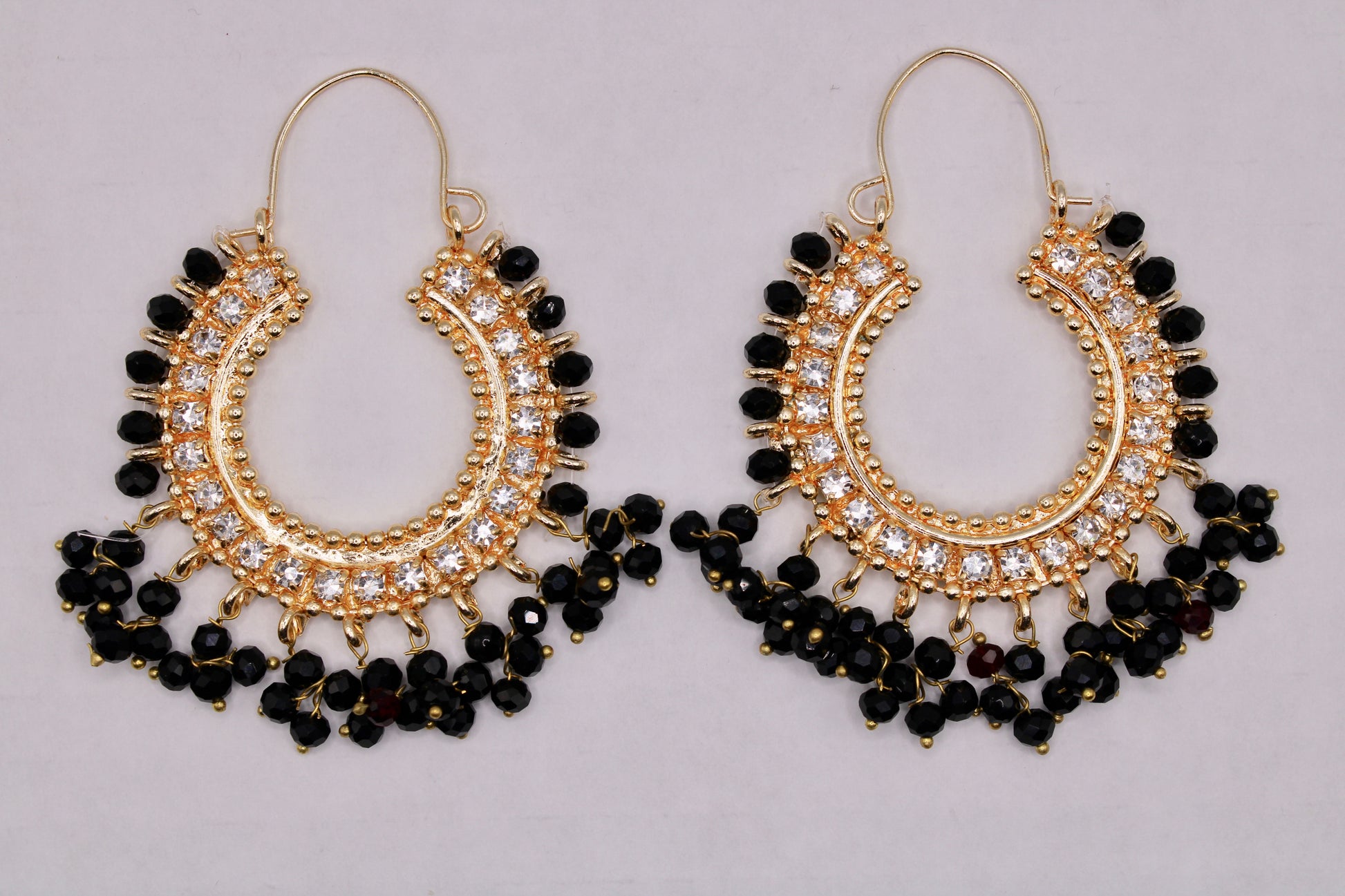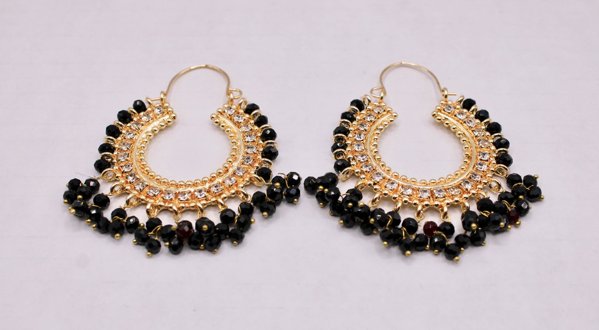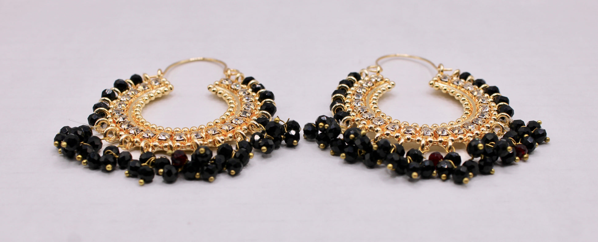 These traditional manjoos latkan balis are hand made with pearl and crystal and rhinestone detailing.