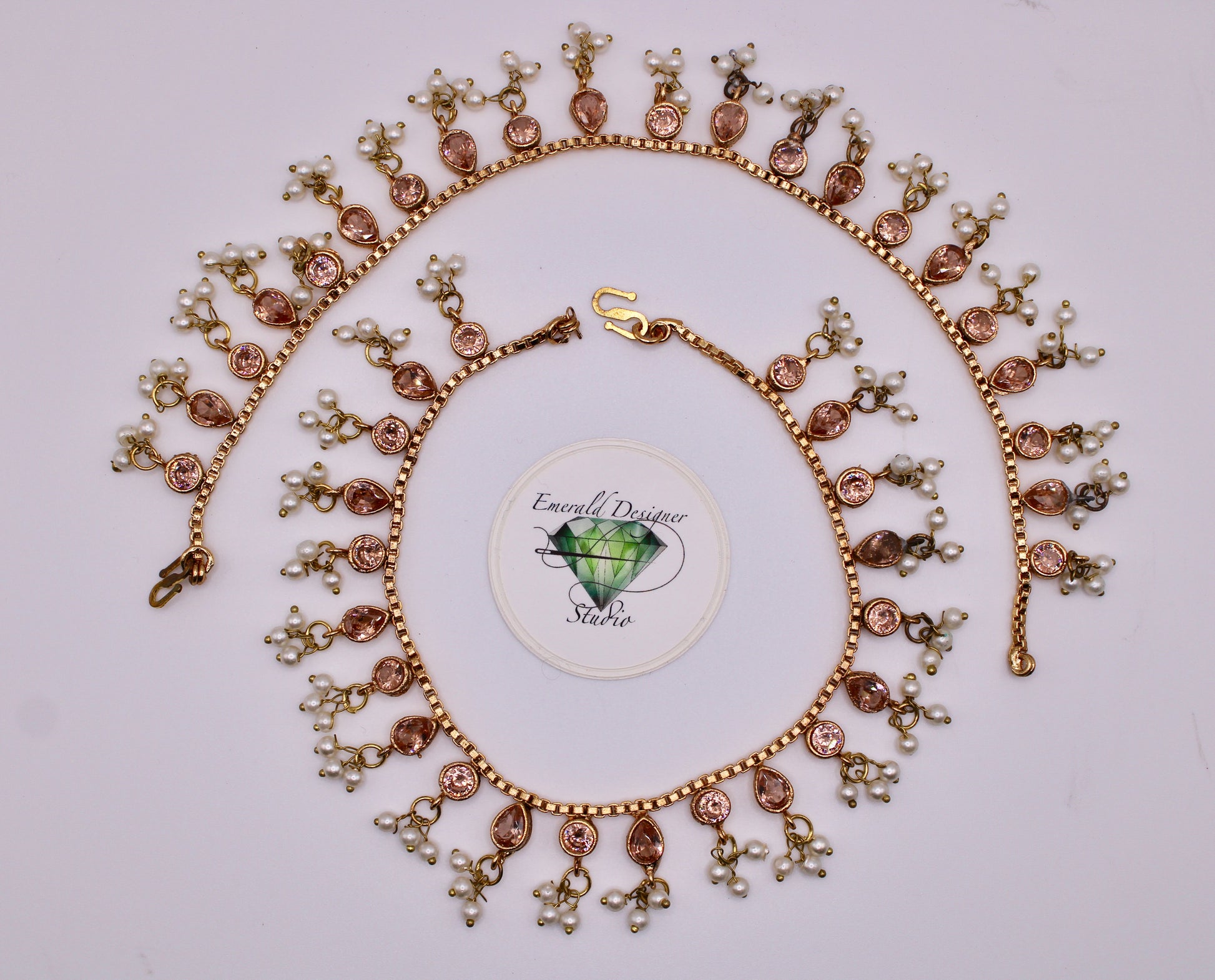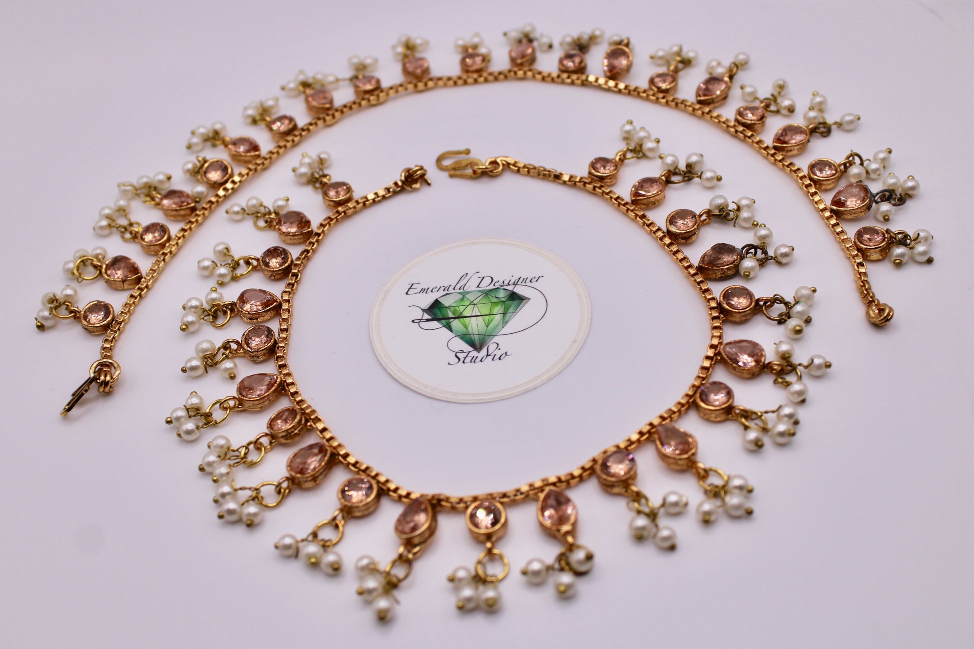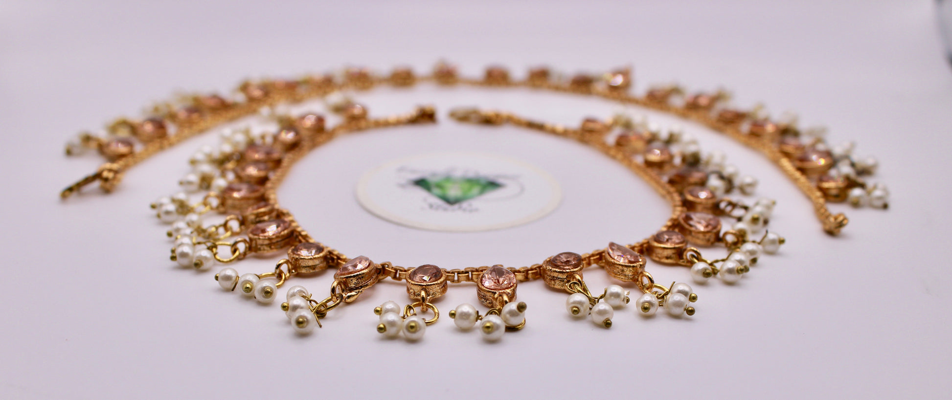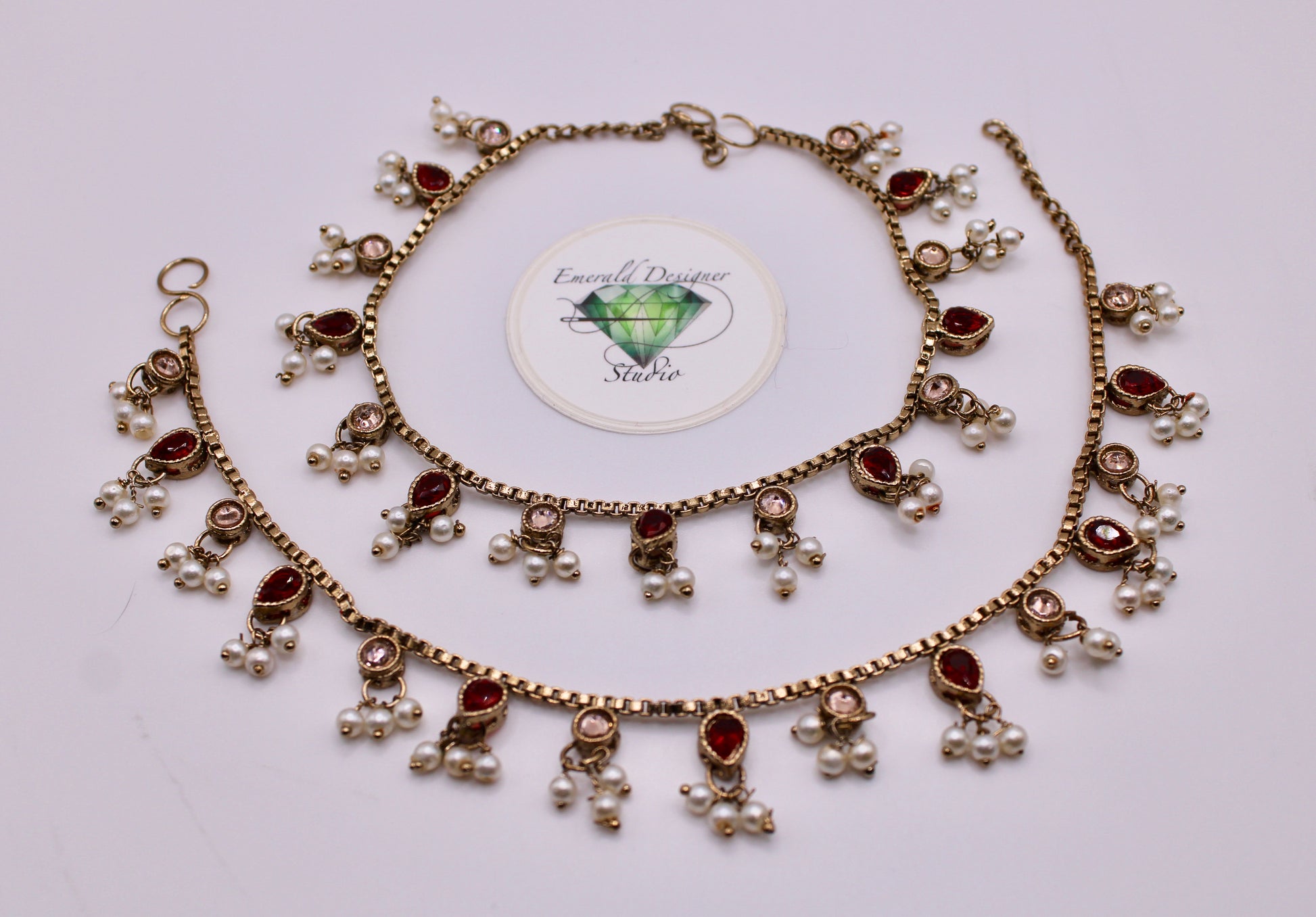 These anklets are complete with cubic zirconia detailing and faux pearl appliqués. They are sold in pairs, and can be styled with both Eastern and Western outfits.