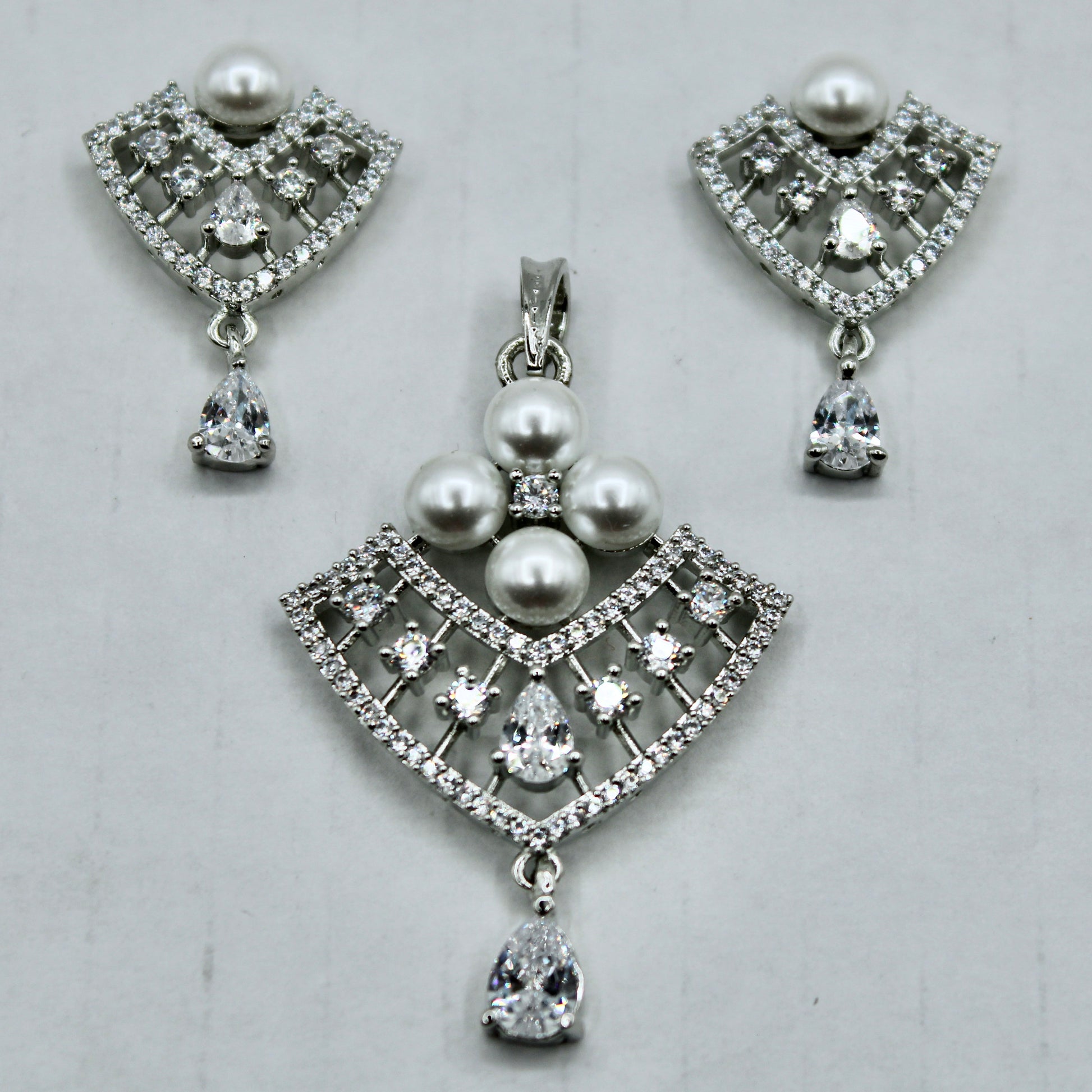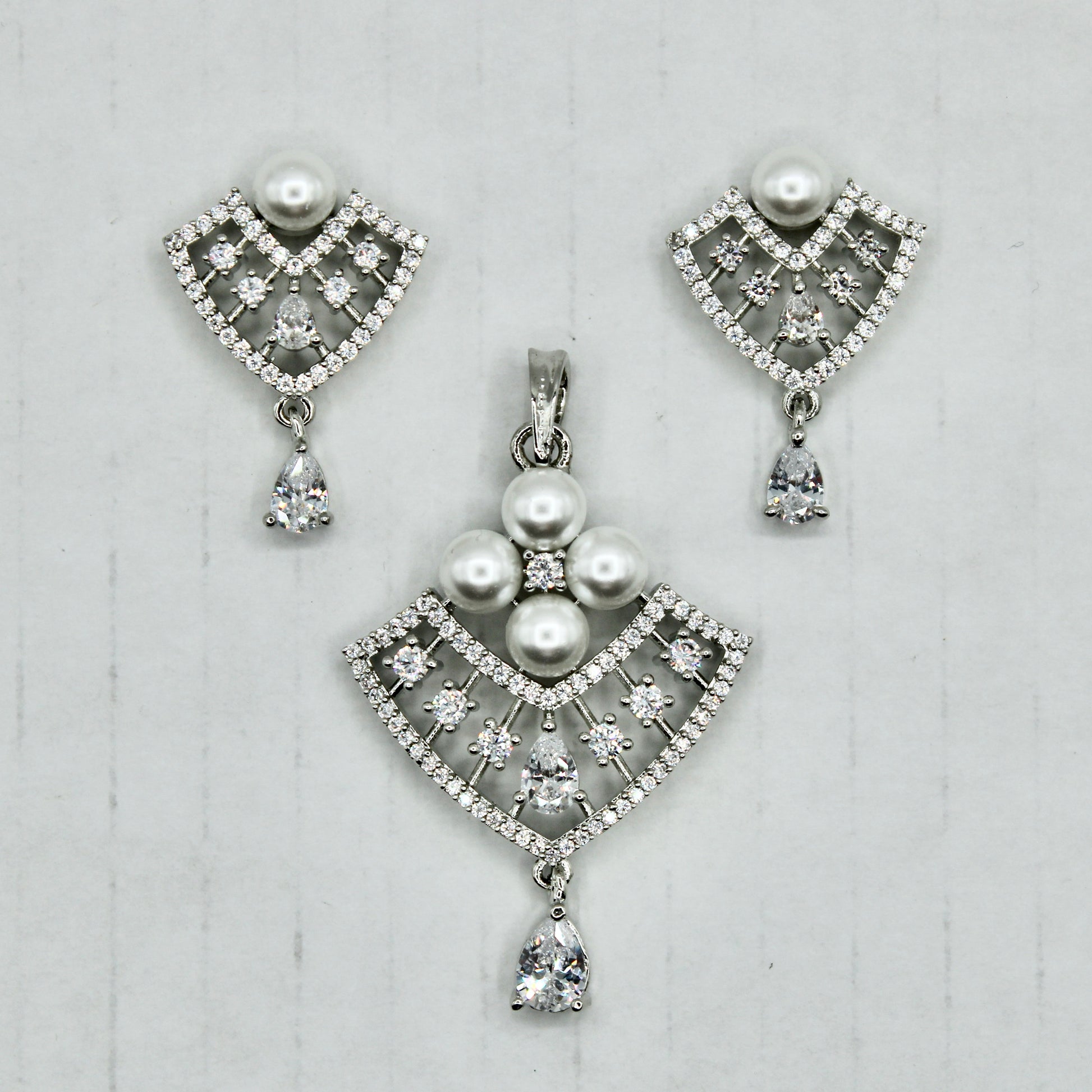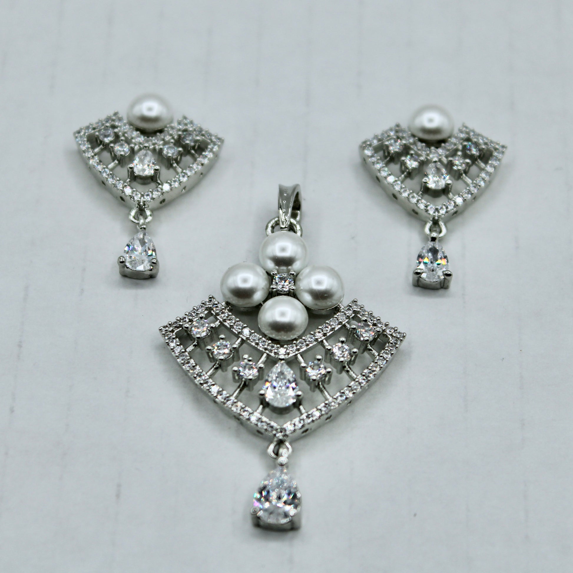 Cubic Zirconia and Faux Pearl Pendant Set - E2279