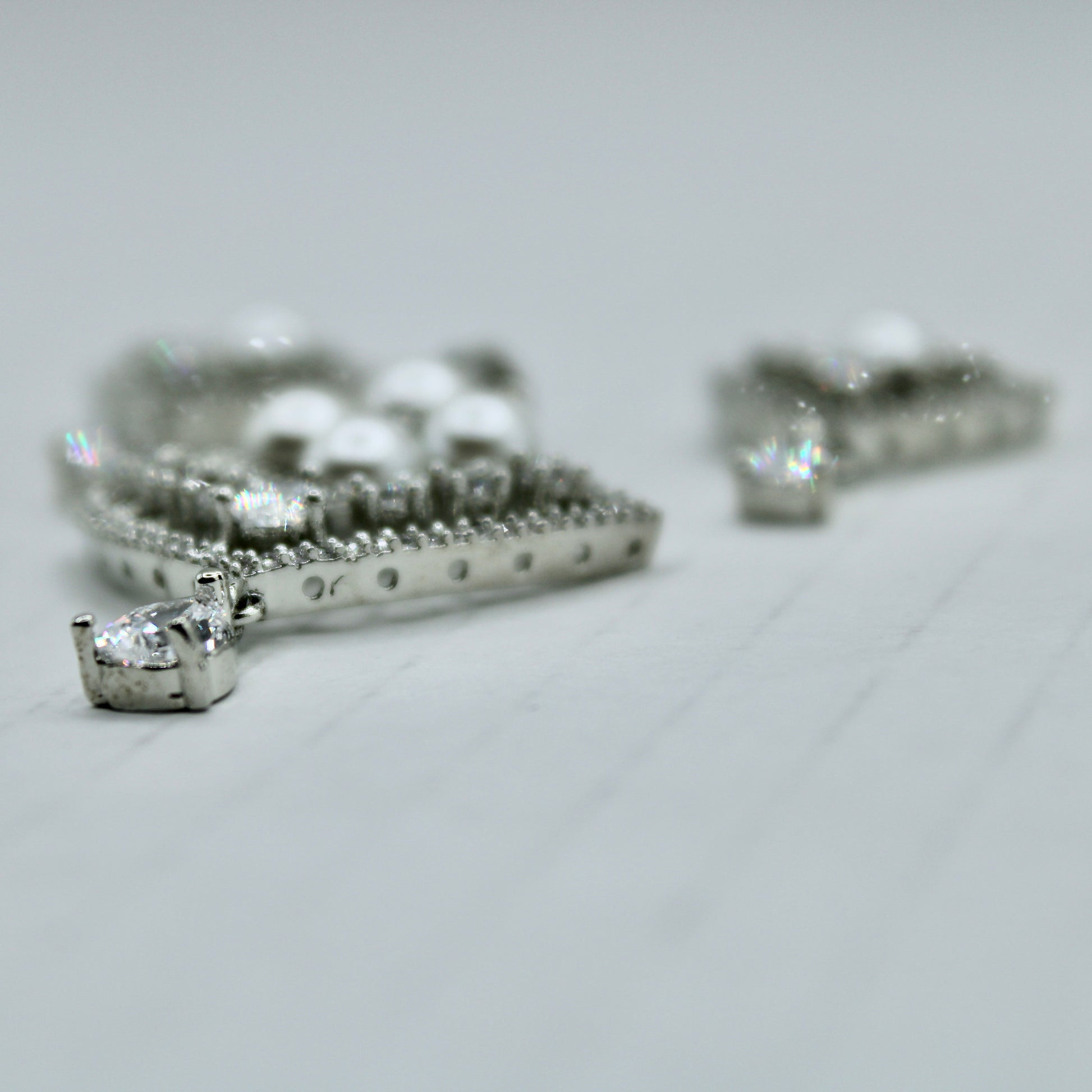 This unique pendant set is complete with cubic zirconia and faux pearl detailing. This design can easily be paired with any outfit and is suitable for all ages. It is complete with matching studs and a chain.
