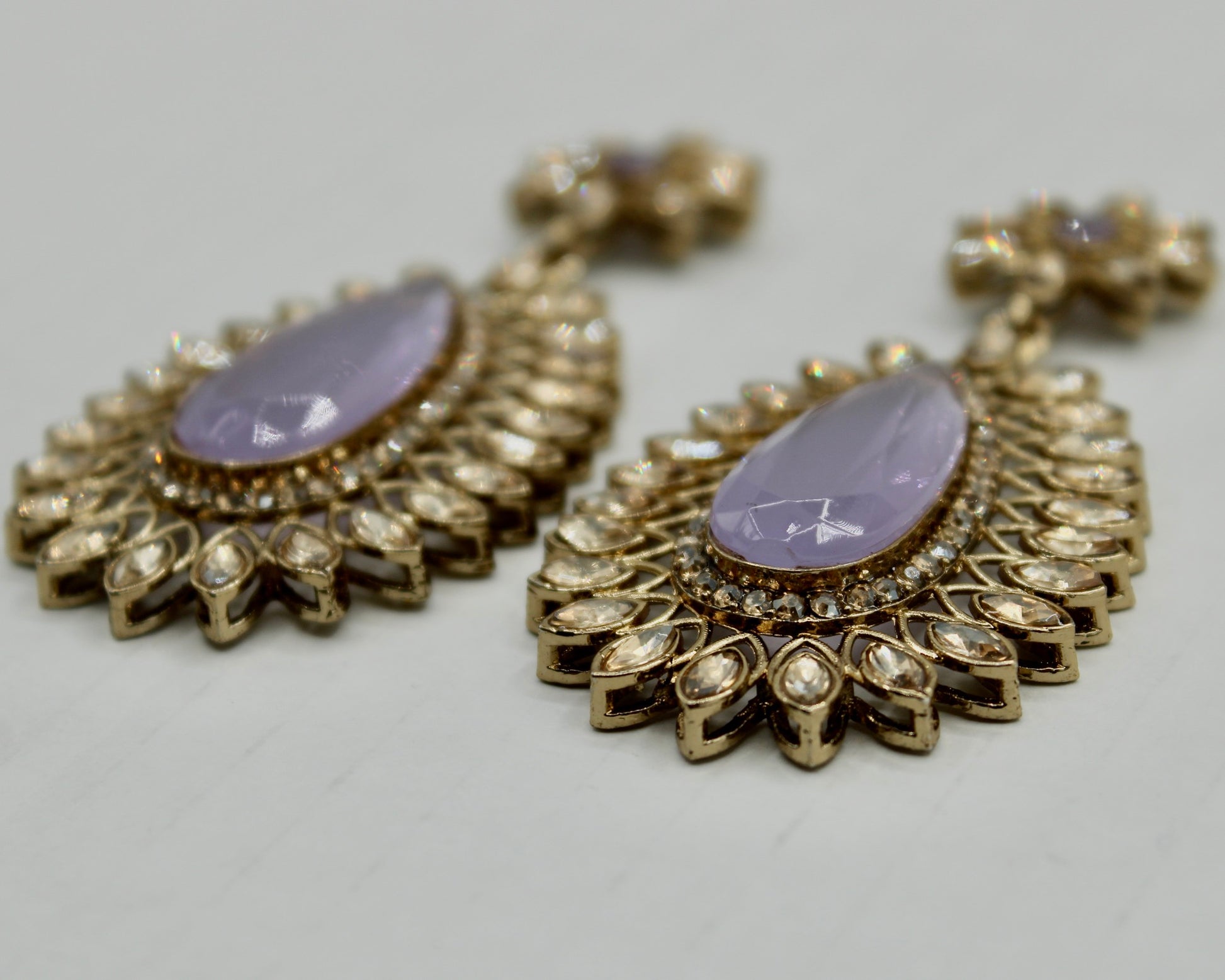 Traditional faux kundan fashion earrings, complete with cubic zirconia detailing, available in three colours. These earrings can easily be styled up or down and are suitable for all occasions.