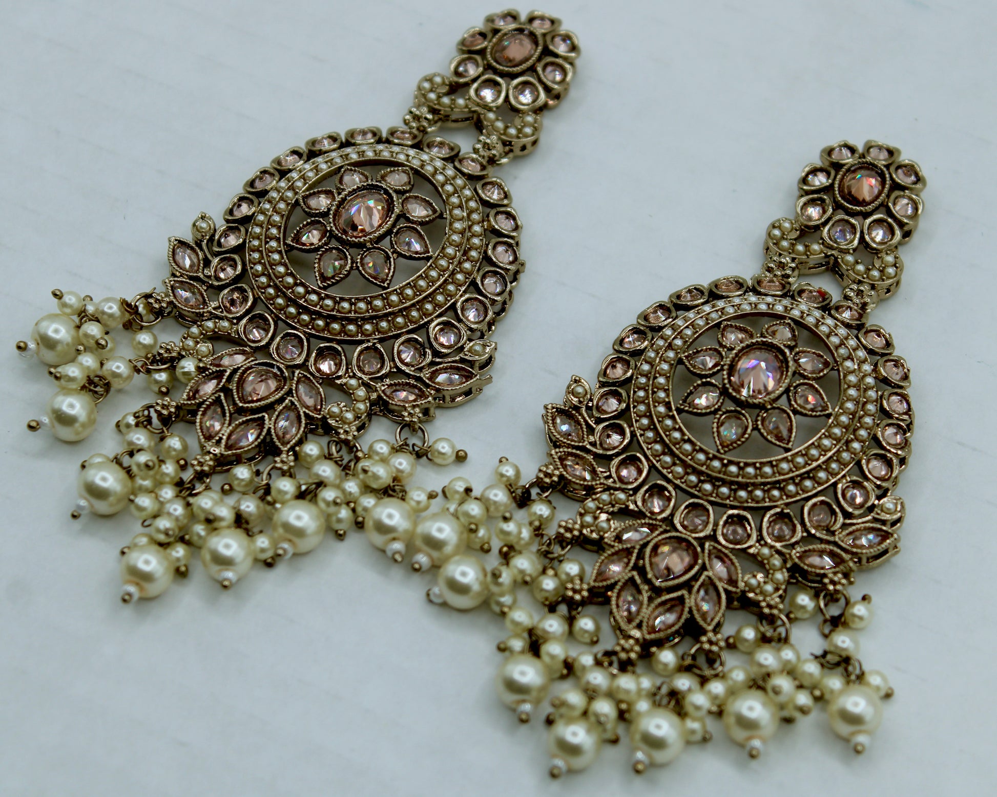 Traditional gajra faux-pearl earrings with faux kundan details throughout. These earrings can easily be styled up or down and are suitable for all ages and occasions