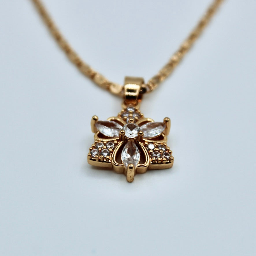 This classy floral pendant necklace is complete with studded cubic zirconia throughout and can be easily paired with both Eastern and Western looks.