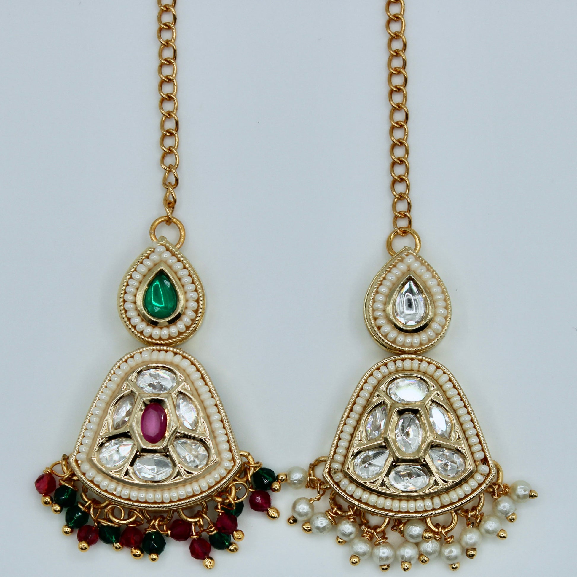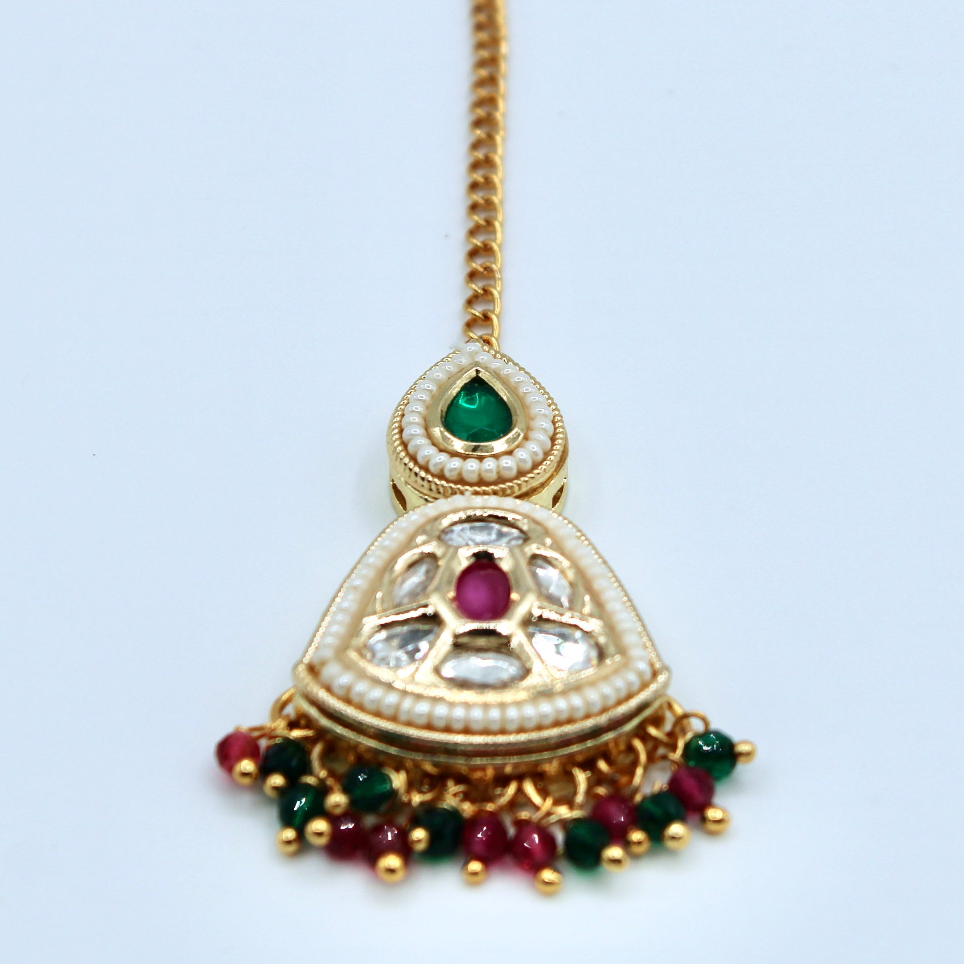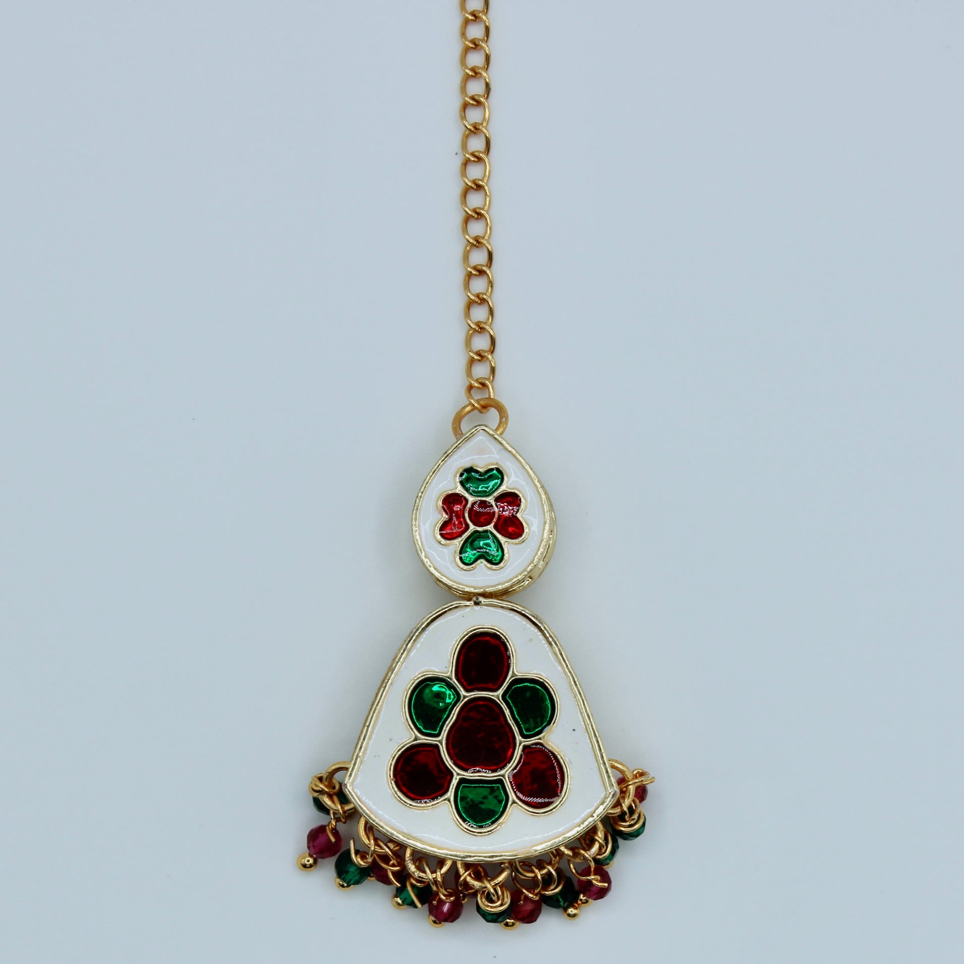 These traditional meena-kari teekas are complete with crystal beads or faux pearls and are the perfect way to accessorize any look. They can easily be paired with a variety of looks and are suitable for all ages.