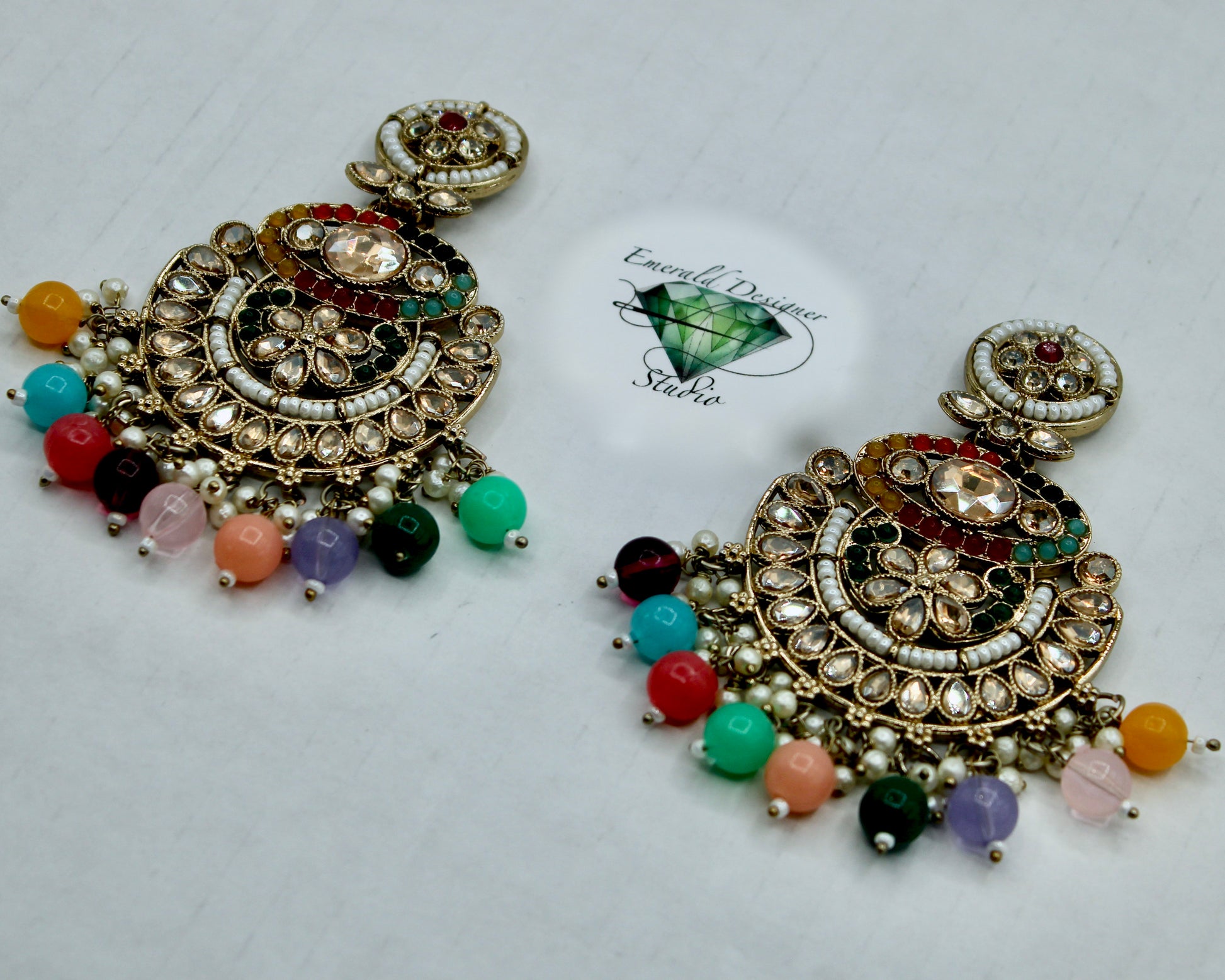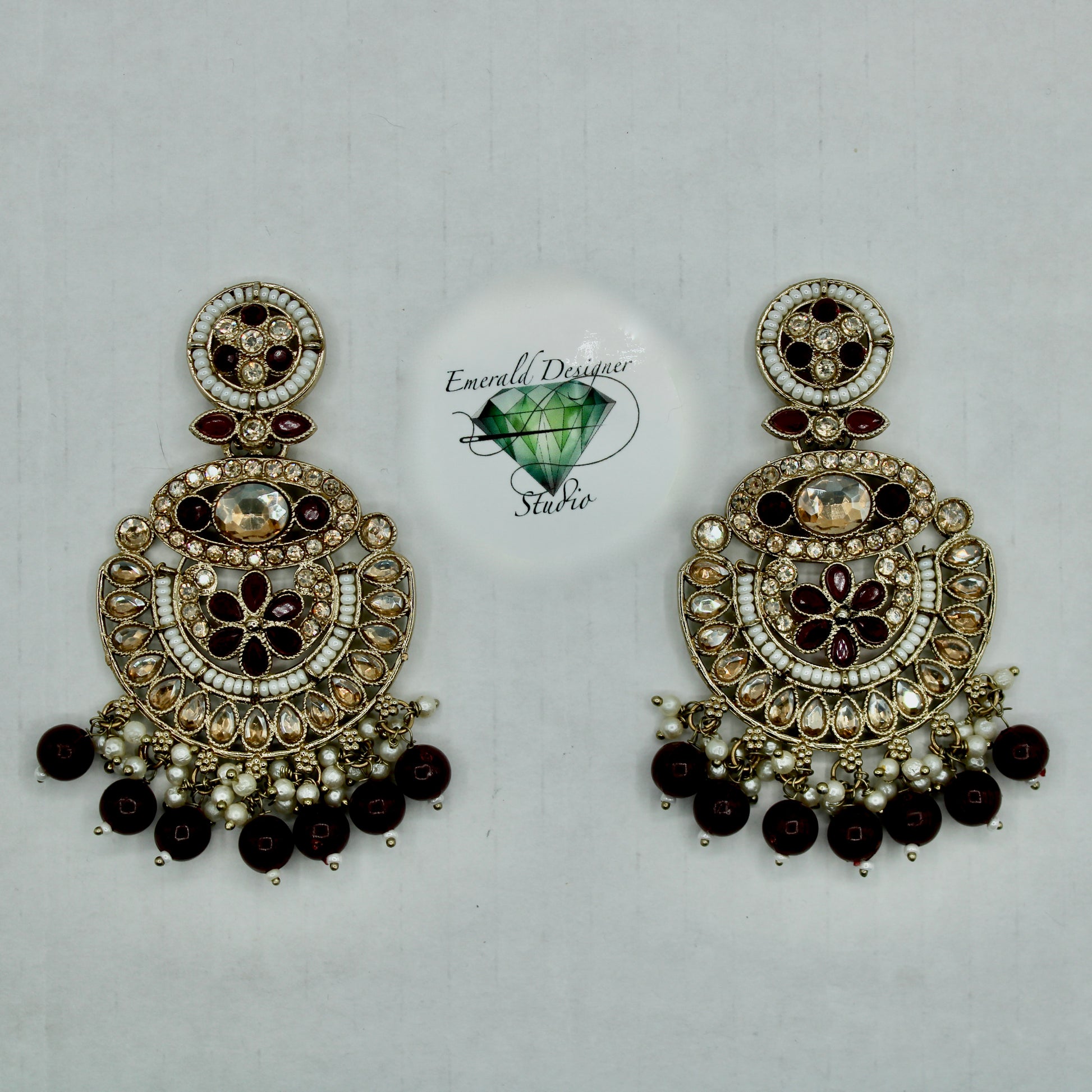 These traditional earrings are intricately made and complete with beads available in a classic, deep maroon or multicolour variation, making them easy to match with any outfit. They can also be paired with both Eastern and Western looks, and are suitable for all ages.
