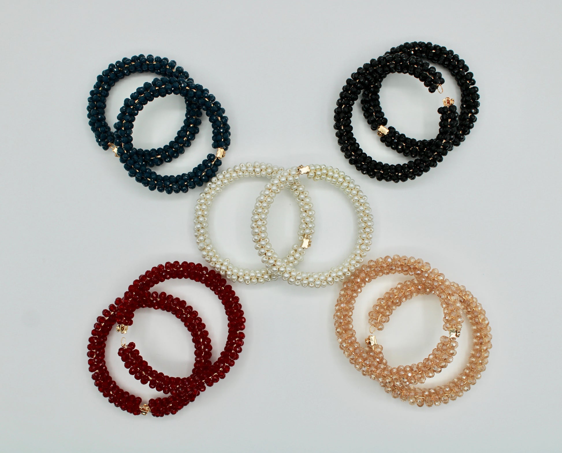 These chic hydro bead kadas bring a touch of class to any ensemble. They are a versatile choice for all ages and can be styled for any occasion. For your convenience, these kadas are hinged with high quality clasps and sold in pairs.