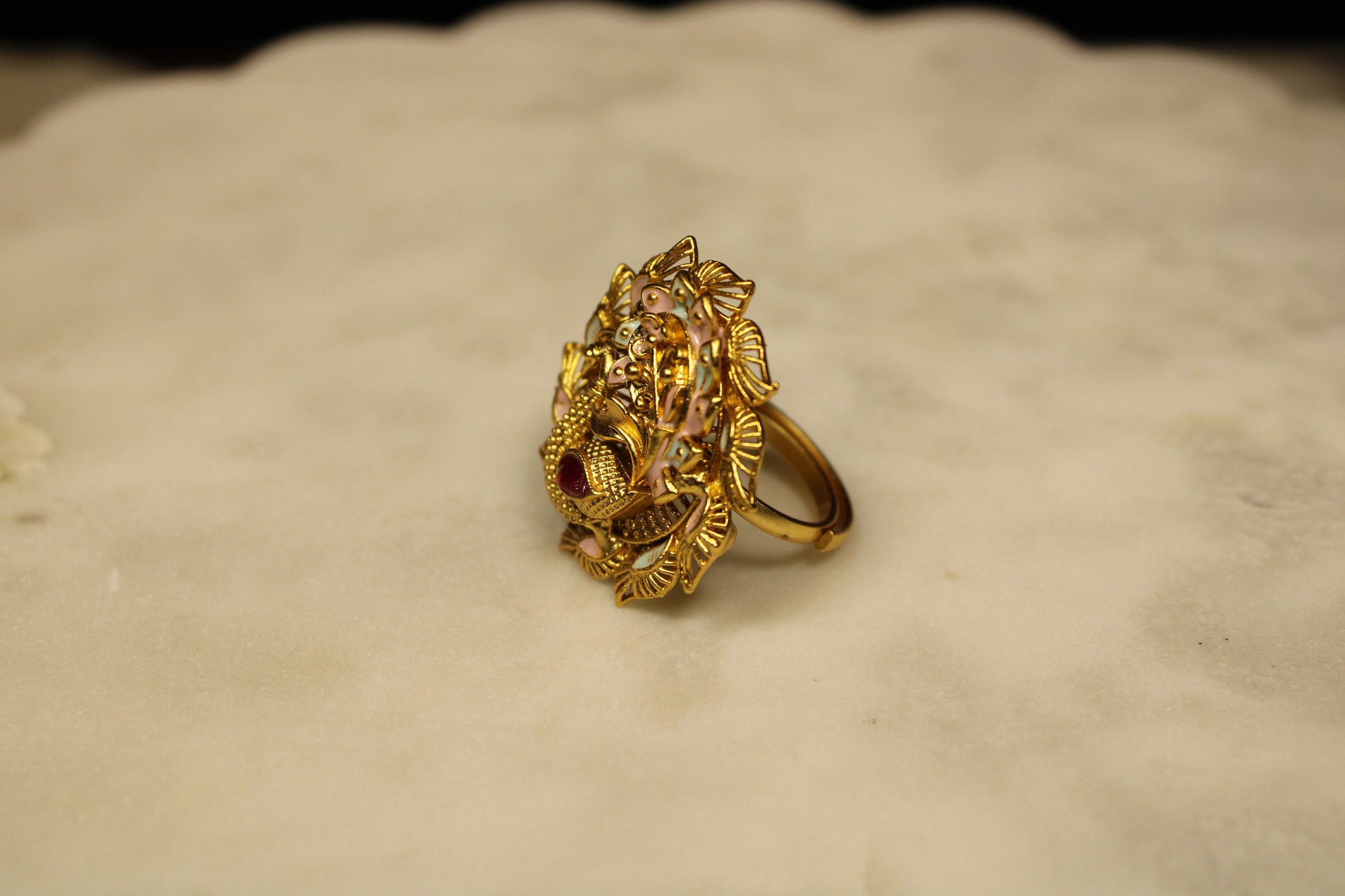 Traditionally created in rajwadi style this meena kari ring is unique and can be a perfect addition for your ring collection.