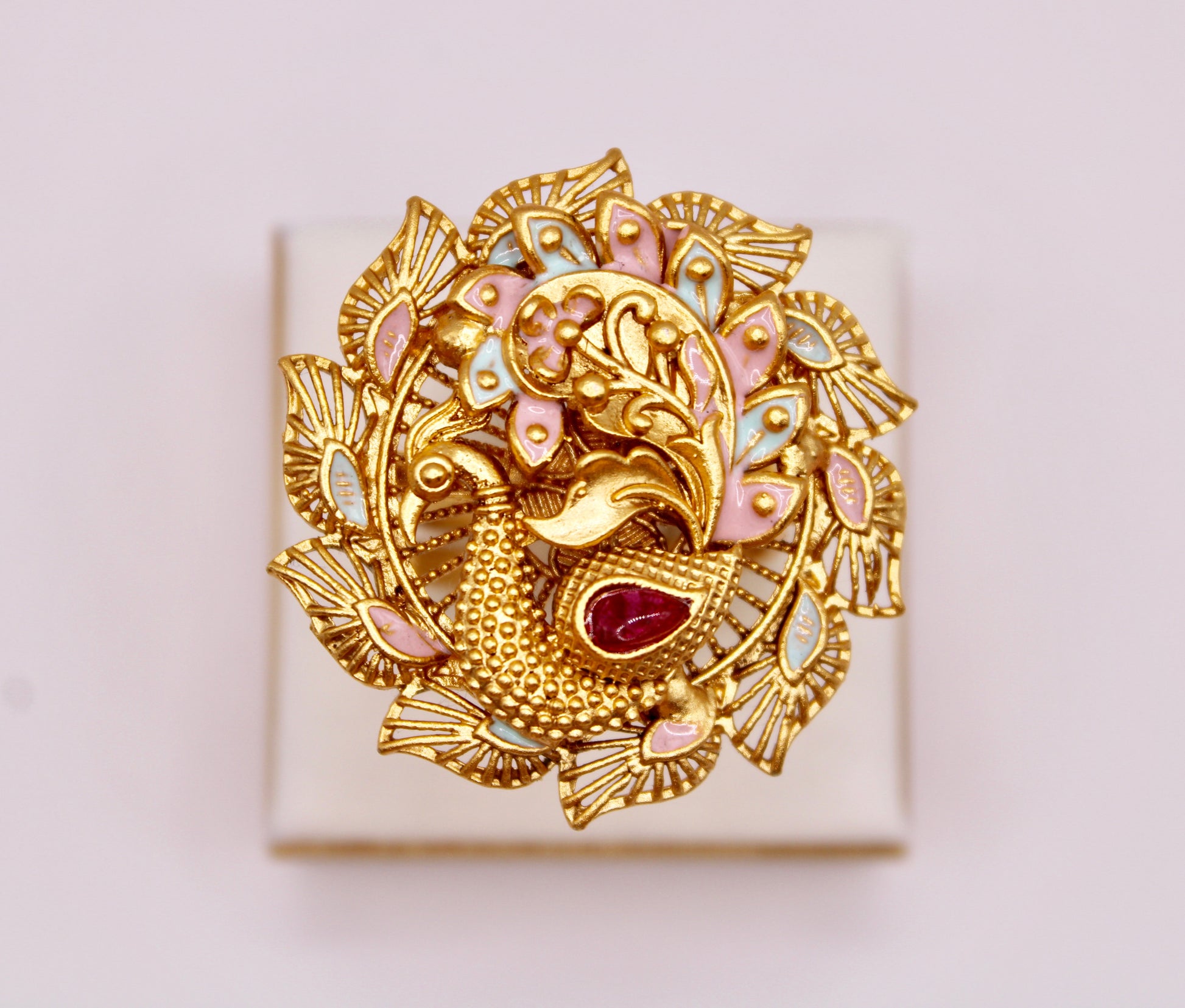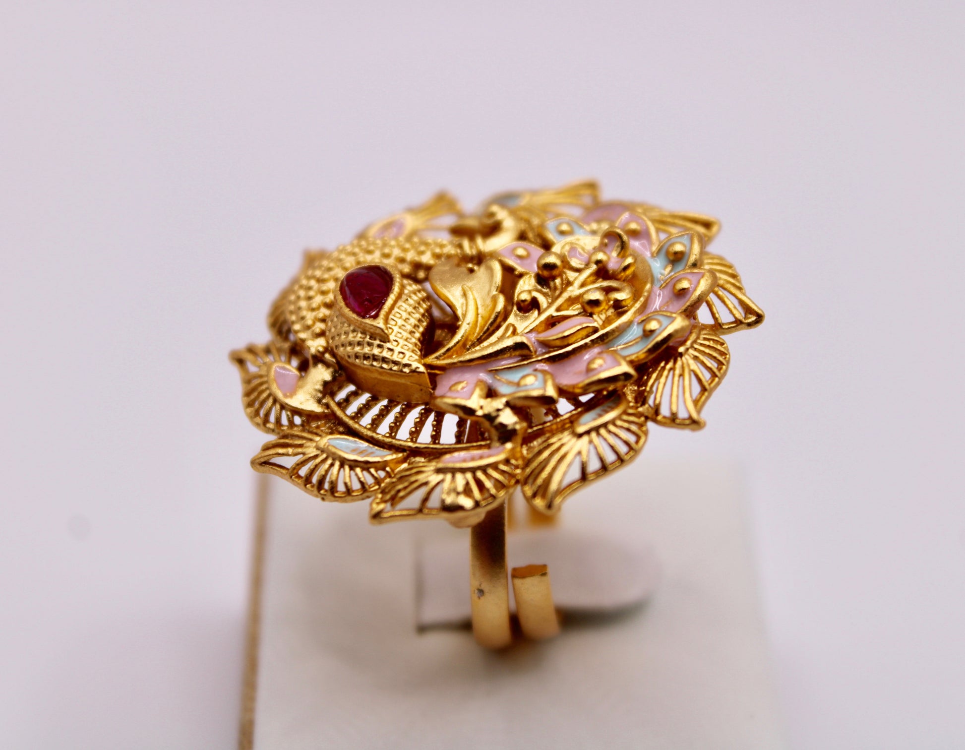 This traditional Rajwadi ring features a beautiful meena and kundan design. This ring is adjustable and sure to elevate any outfit.