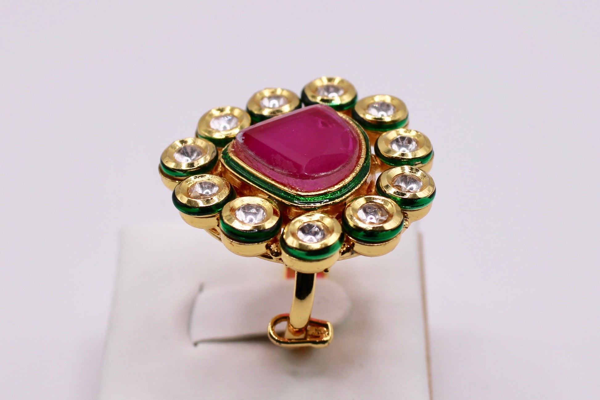 These beautiful hand-crafted kundan cocktail rings are perfect for kundan lovers. Adjustable, made of brass to increase product lifetime.