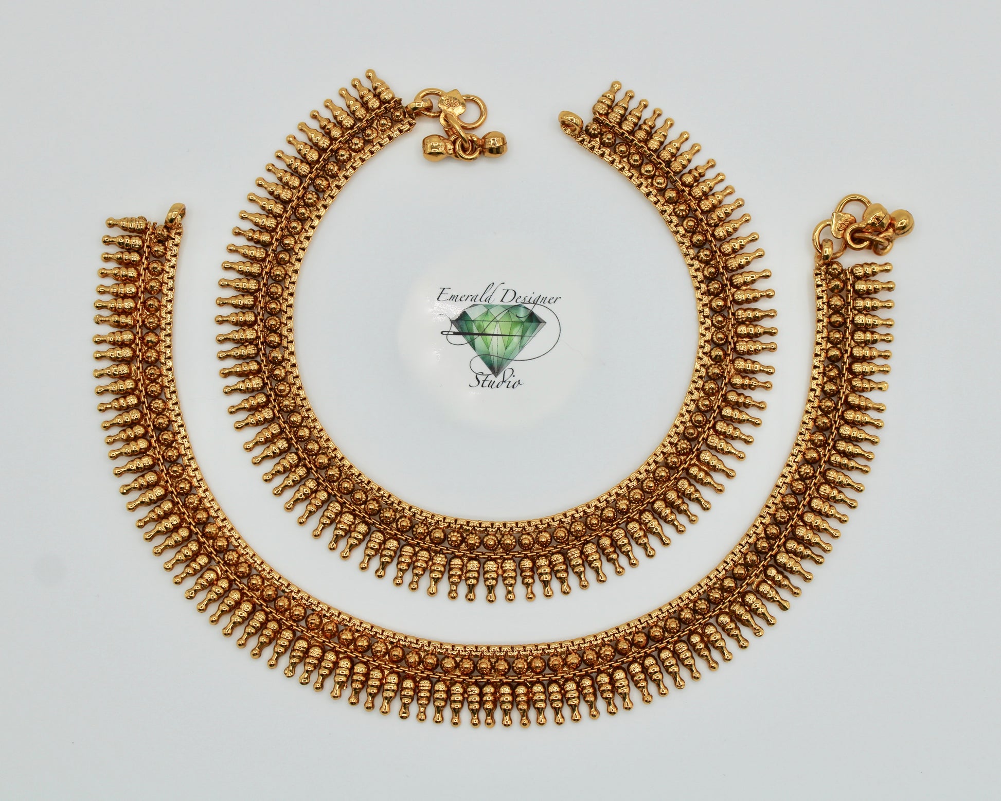 These beautiful anklets are fully detailed and intricately designed, complete with delicate spikes. These anklets are truly a work of art. Made of brass to increase product lifetime.