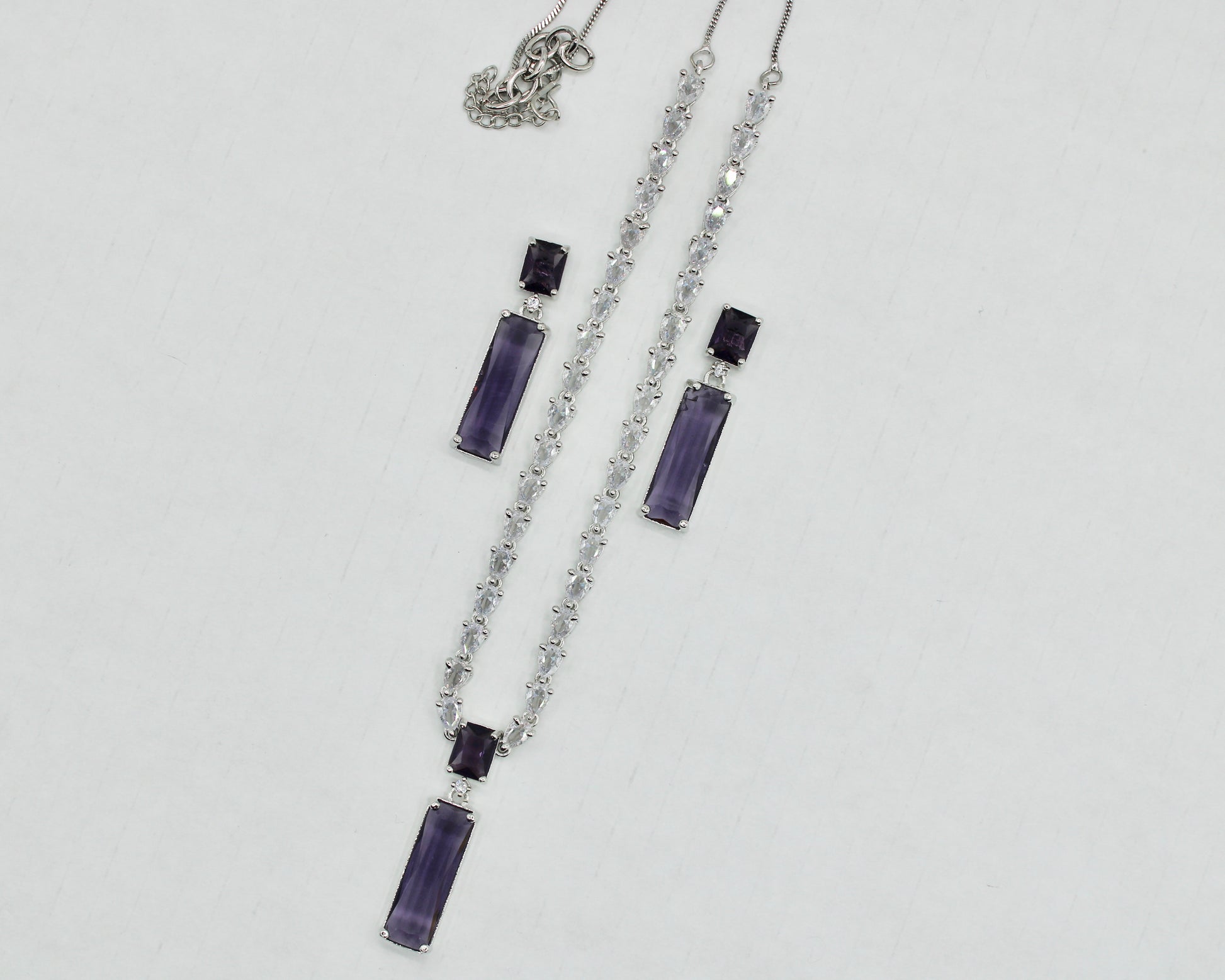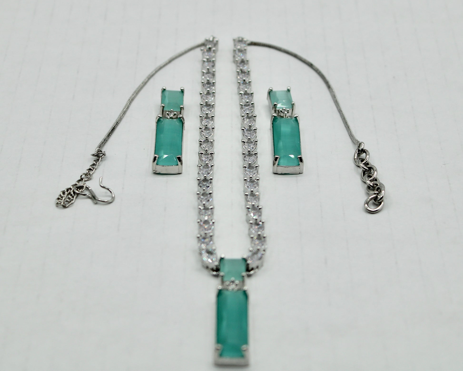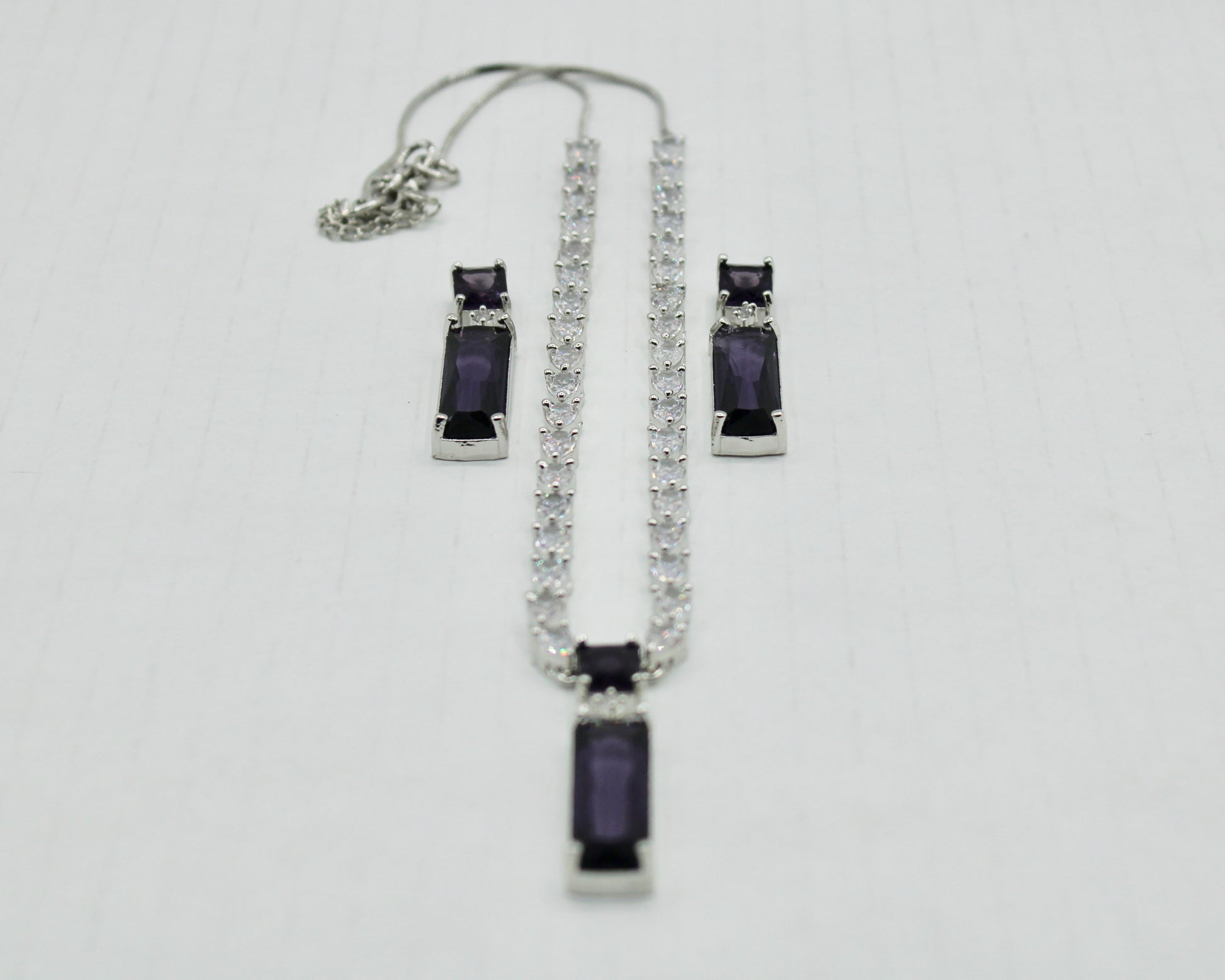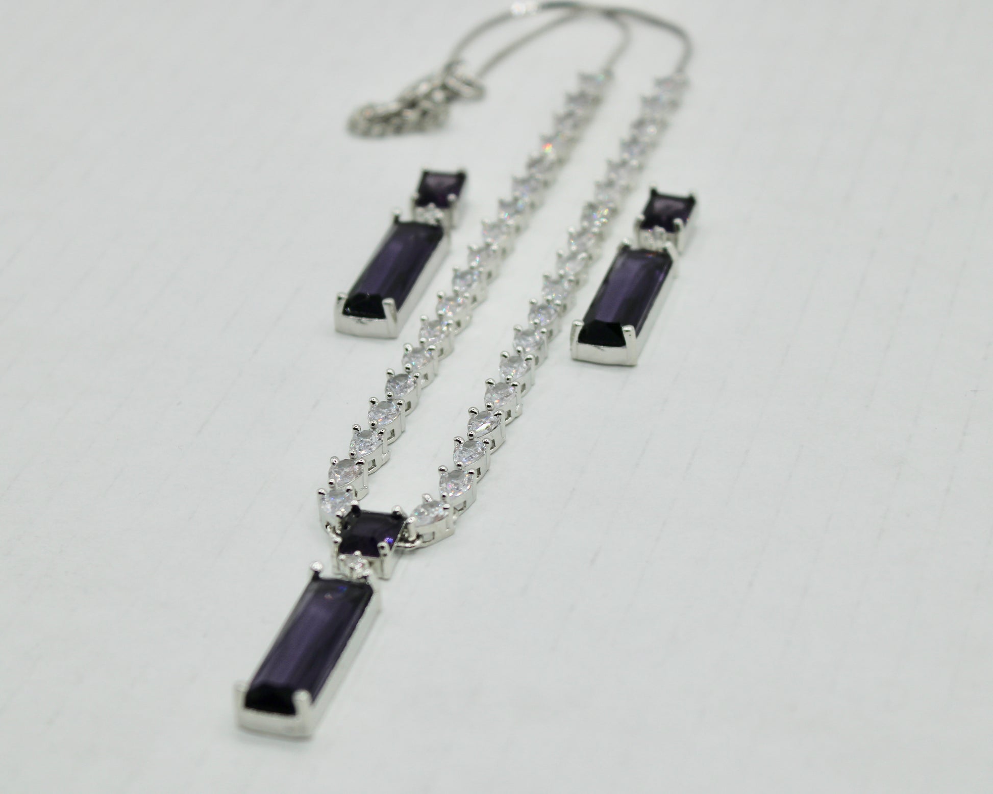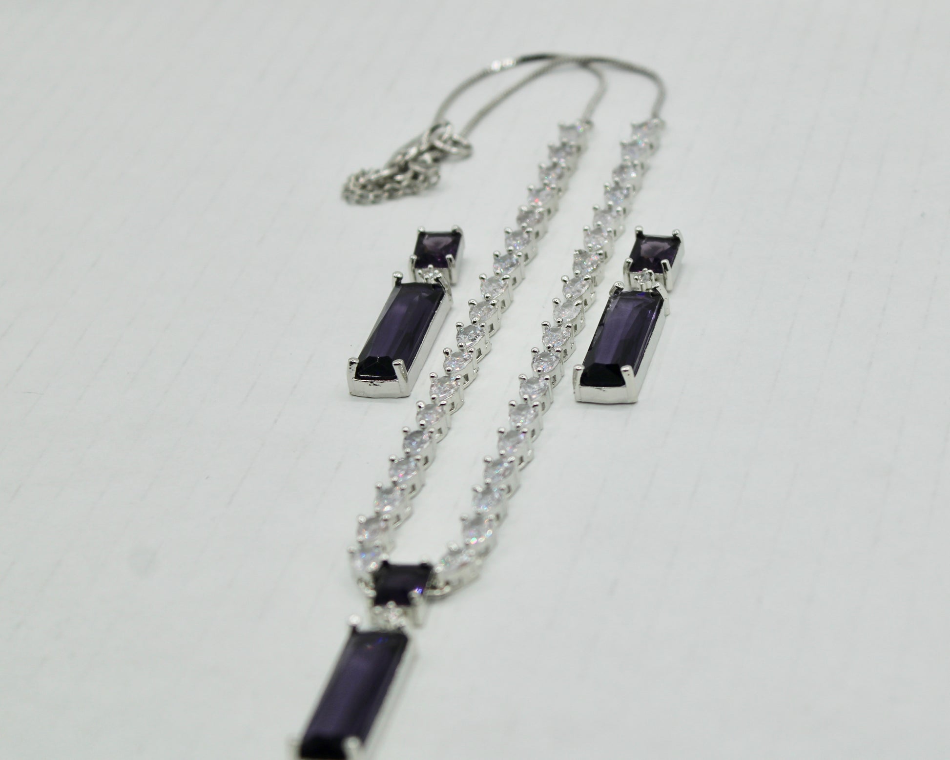 Baguette-Cut Cubic Zirconia Necklace Set - E849