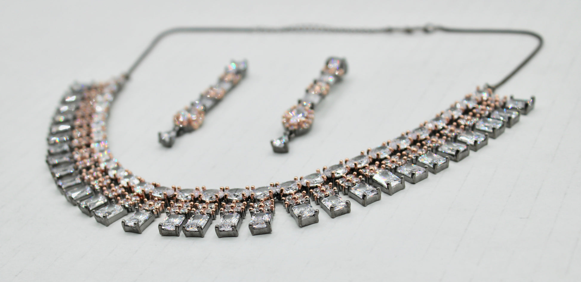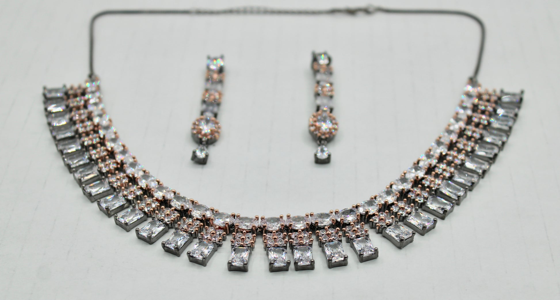 Princess-Cut Cubic Zirconia Necklace Set - E852