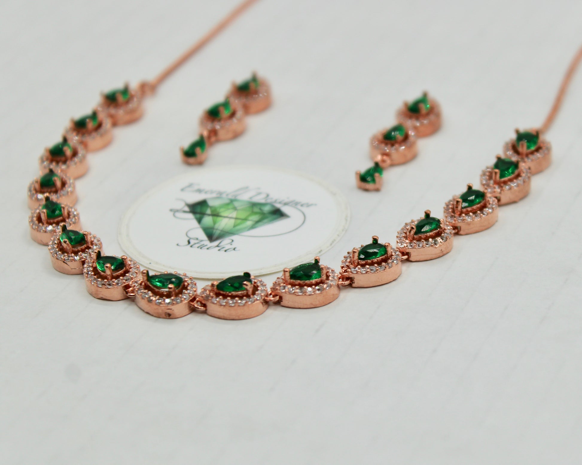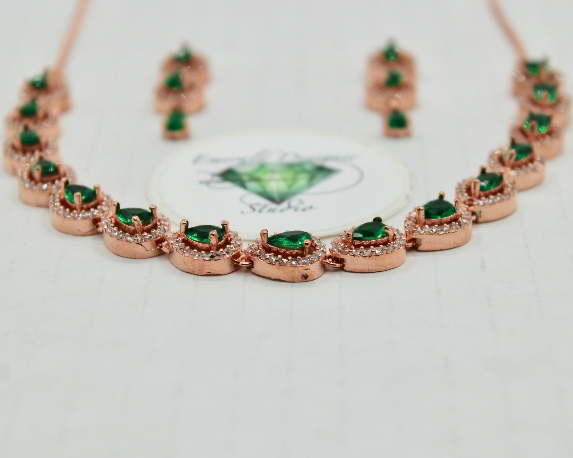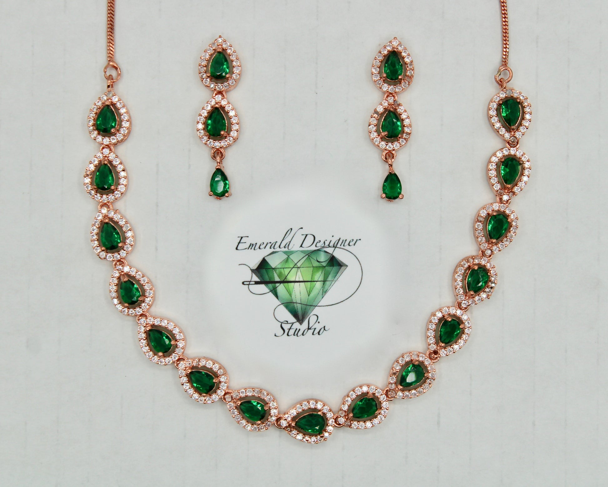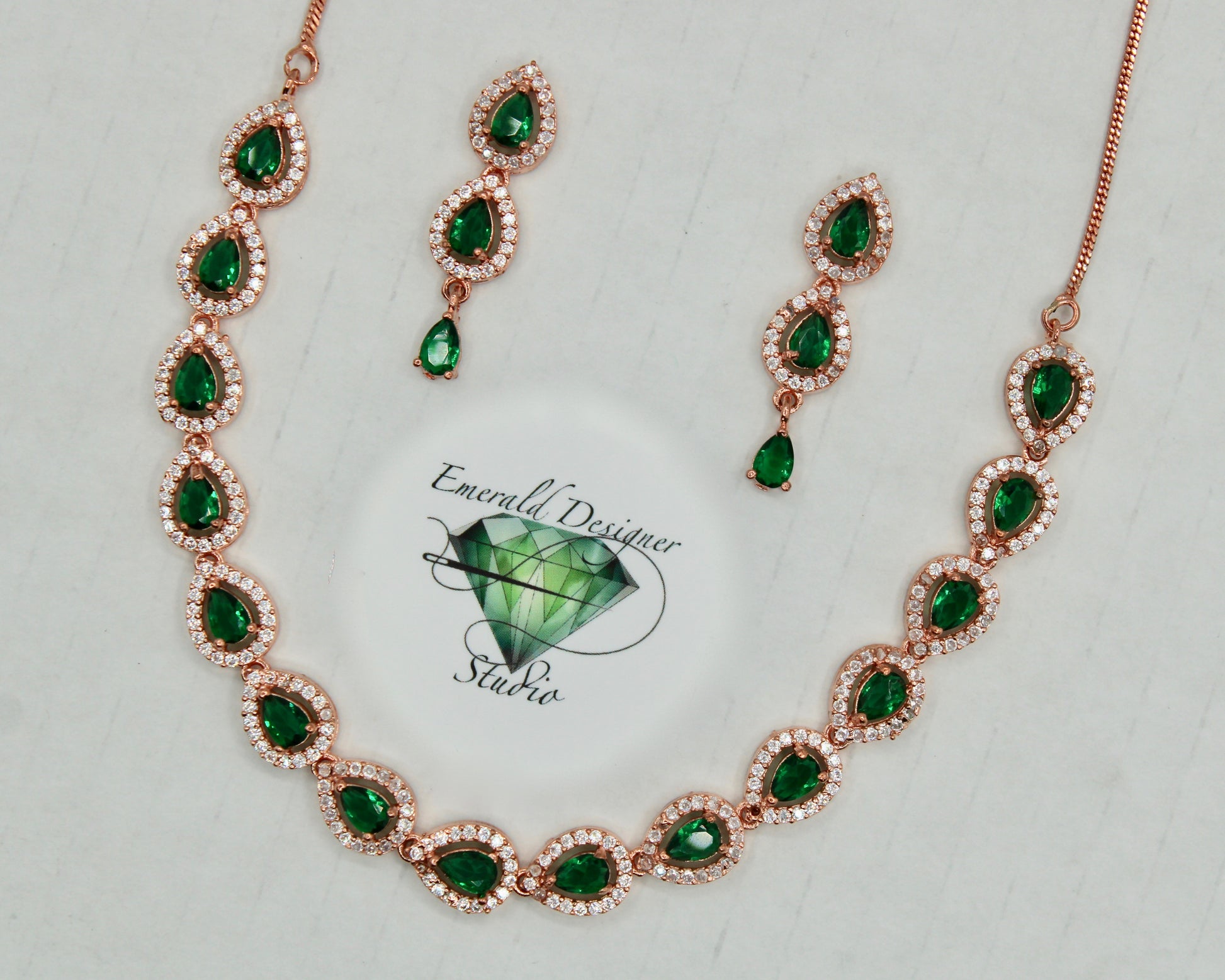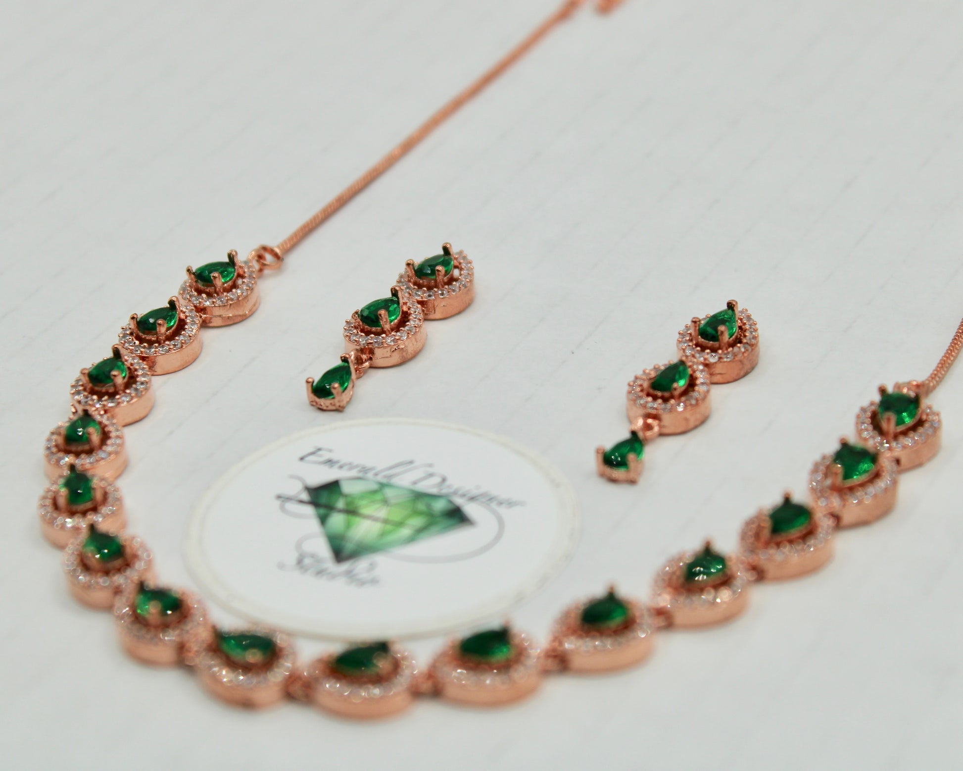 This breathtaking necklace set is complete with pear-cut cubic zirconia detailing throughout, and matching earrings. It is the perfect addition to both western and eastern outfits.