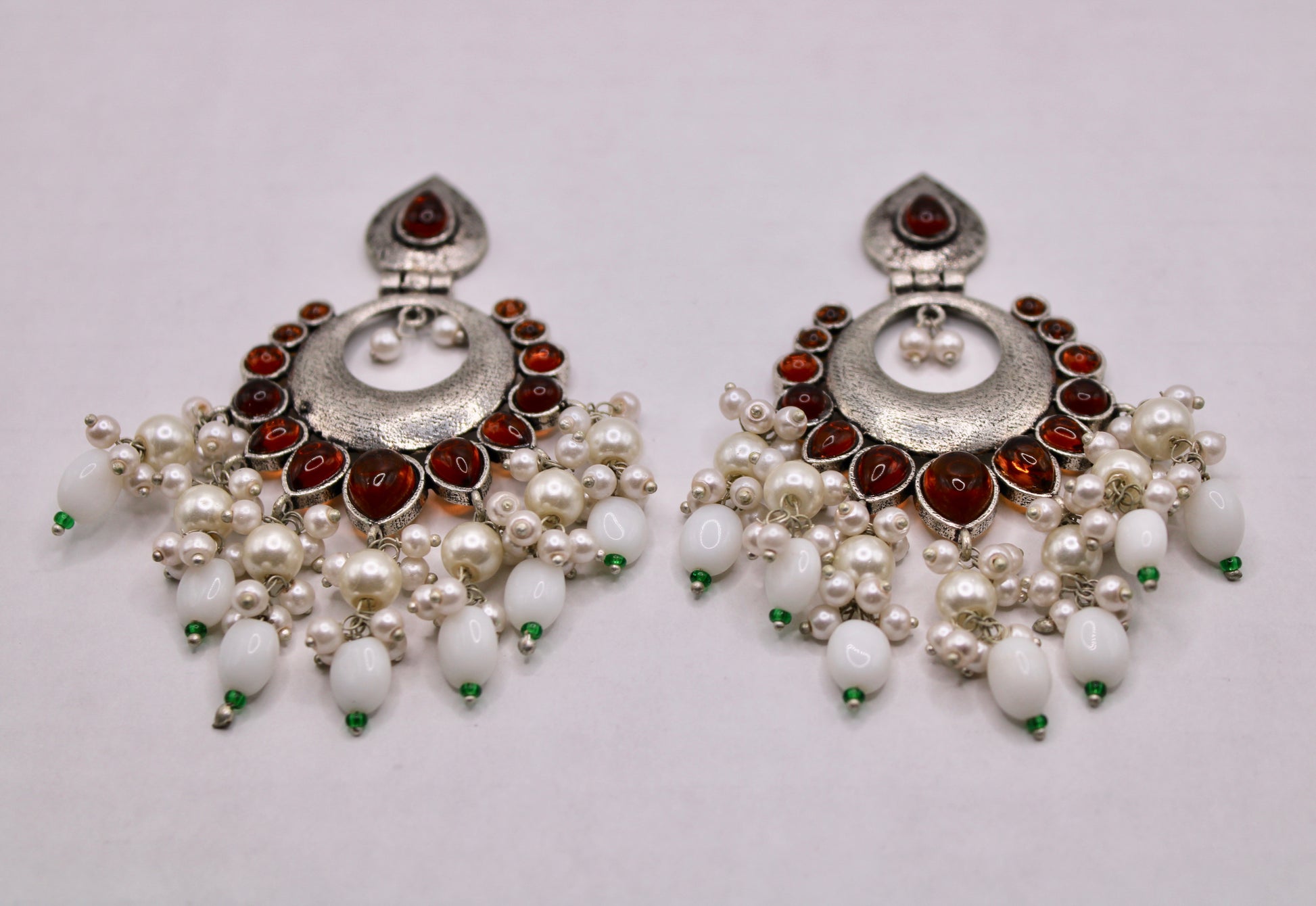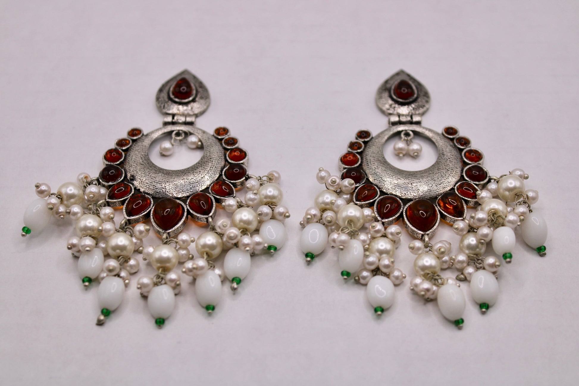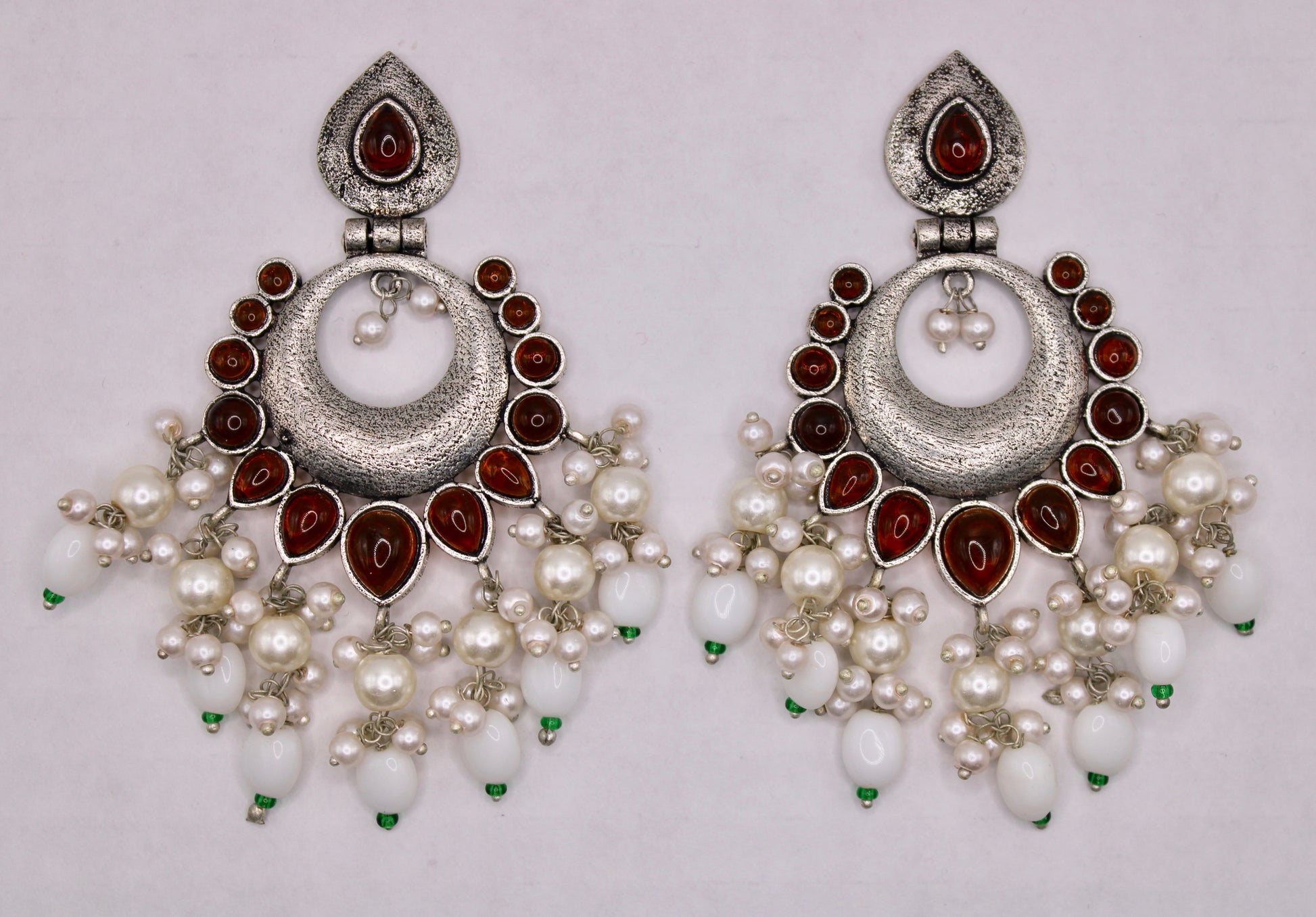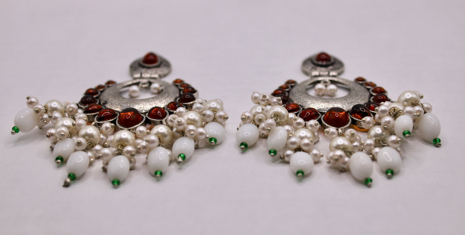 Oxidized Chaand Bali With Mona Lisa - E1213