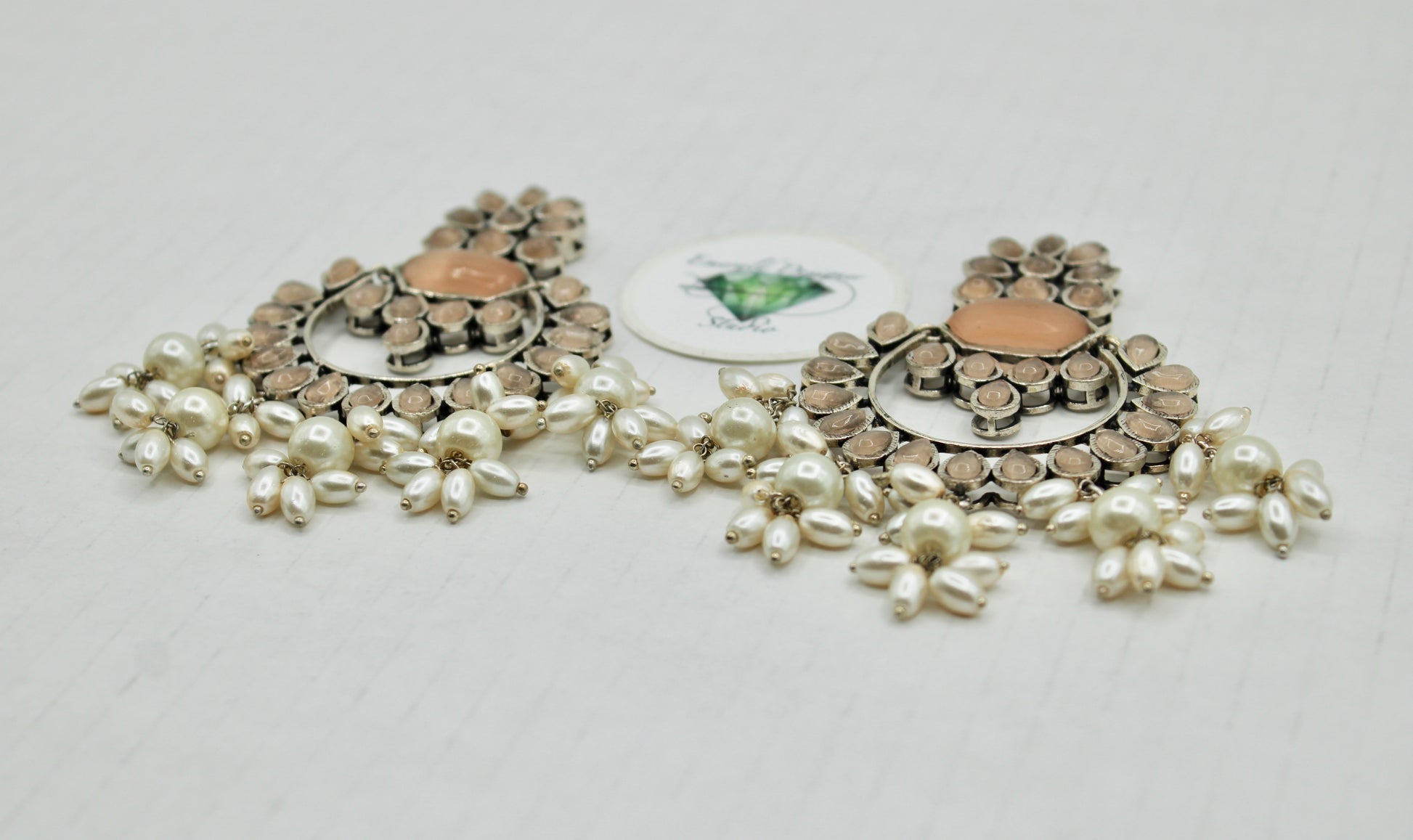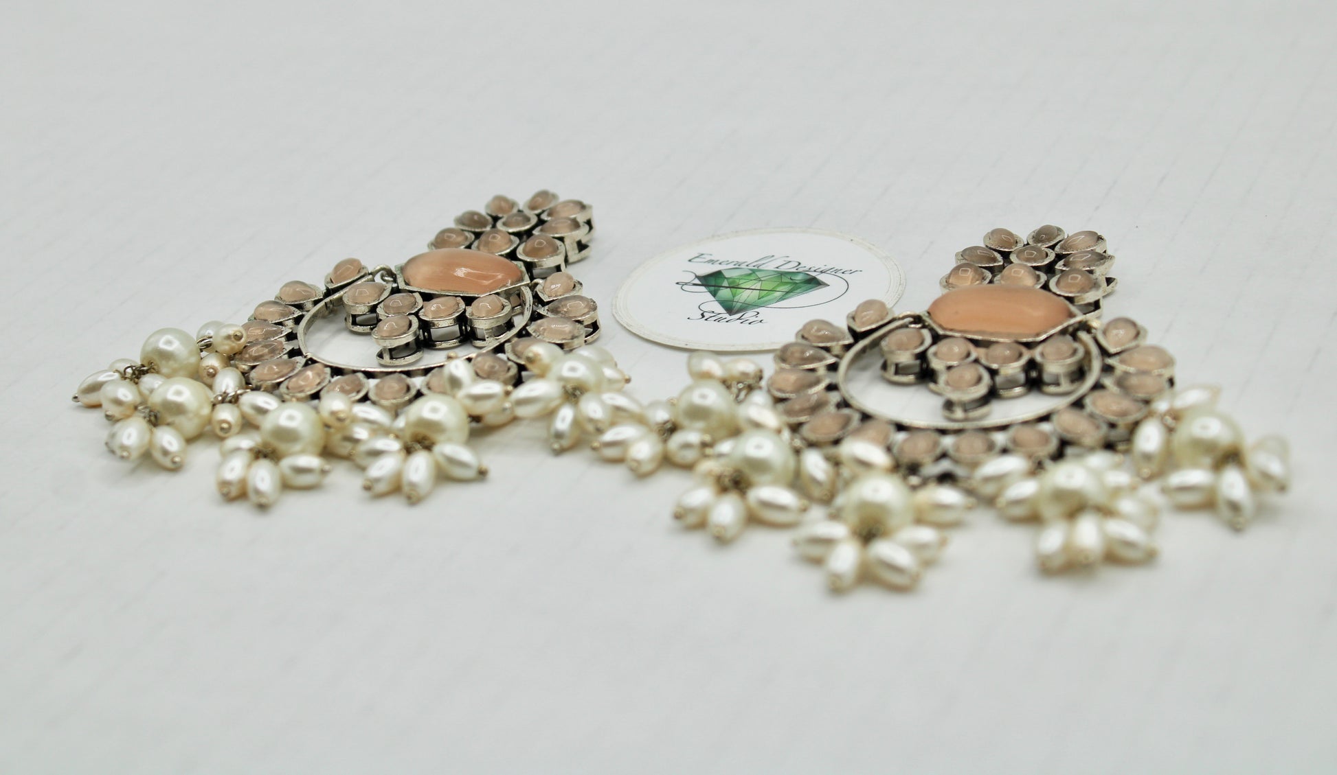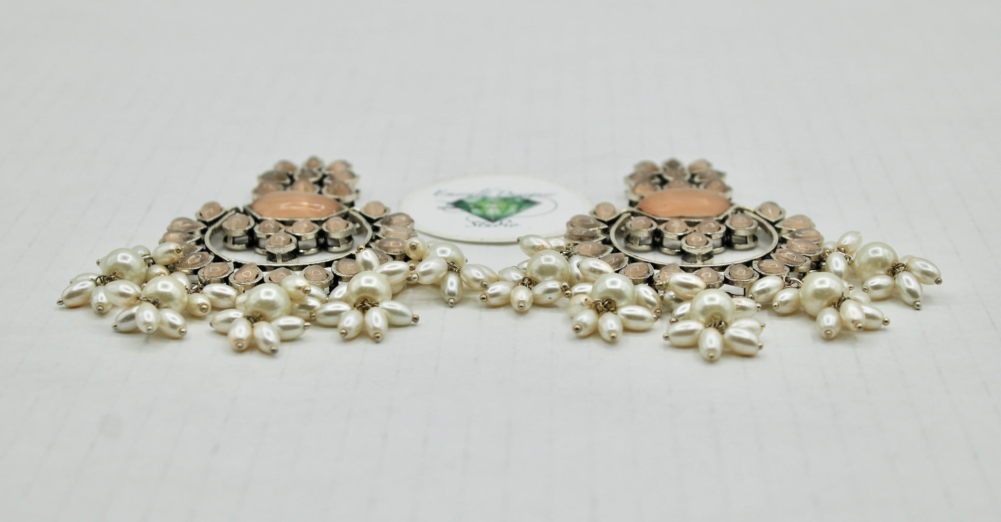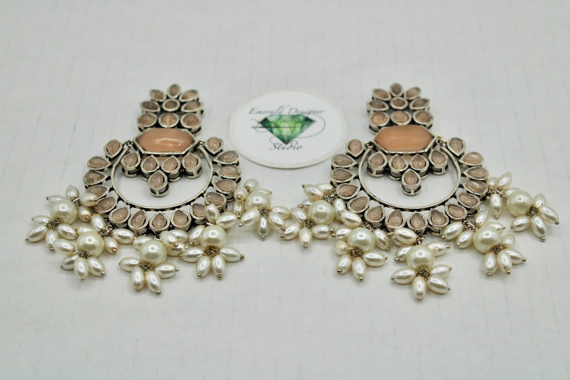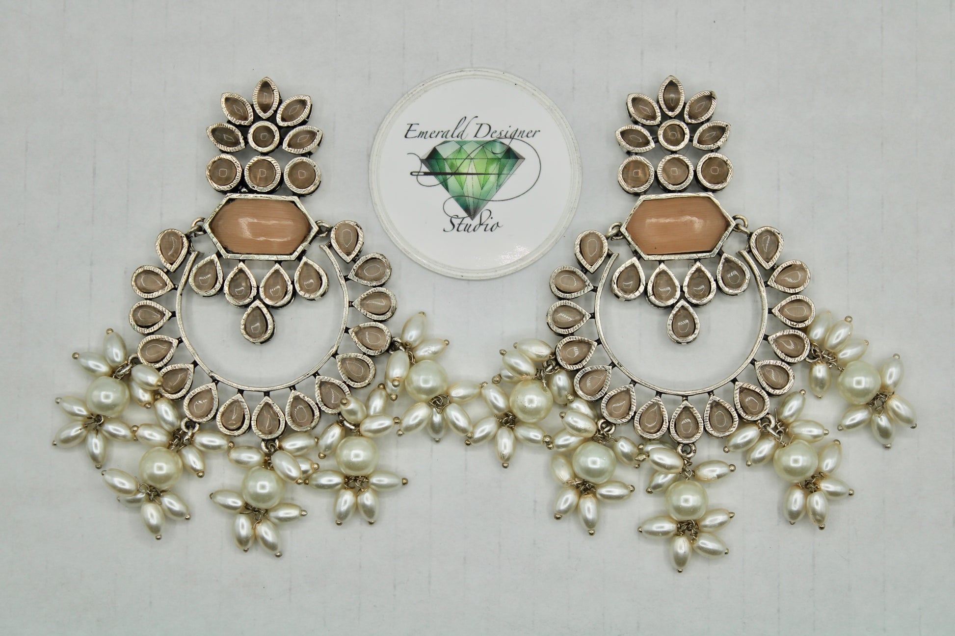 These oxidized chaand bali are the perfect mix between traditional and contemporary. They are complete with faux pearls and monalisa detailing throughout.