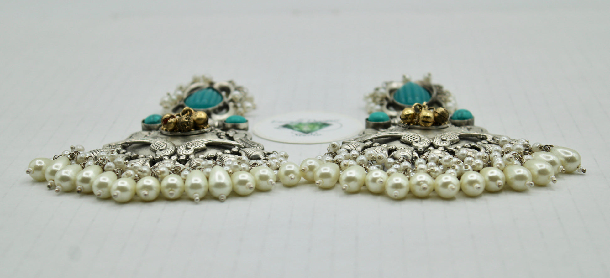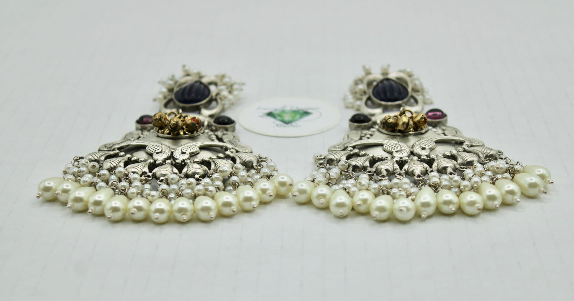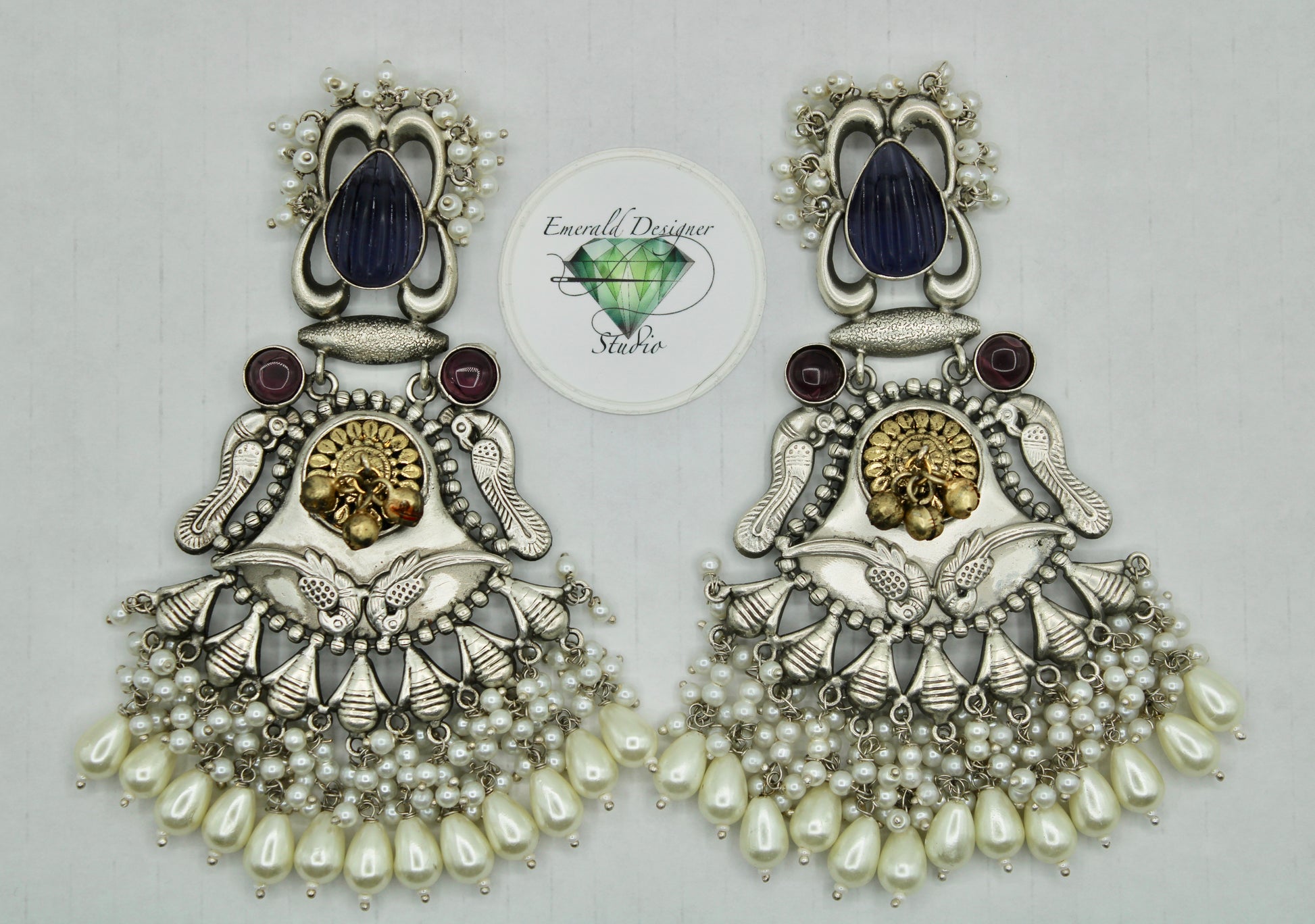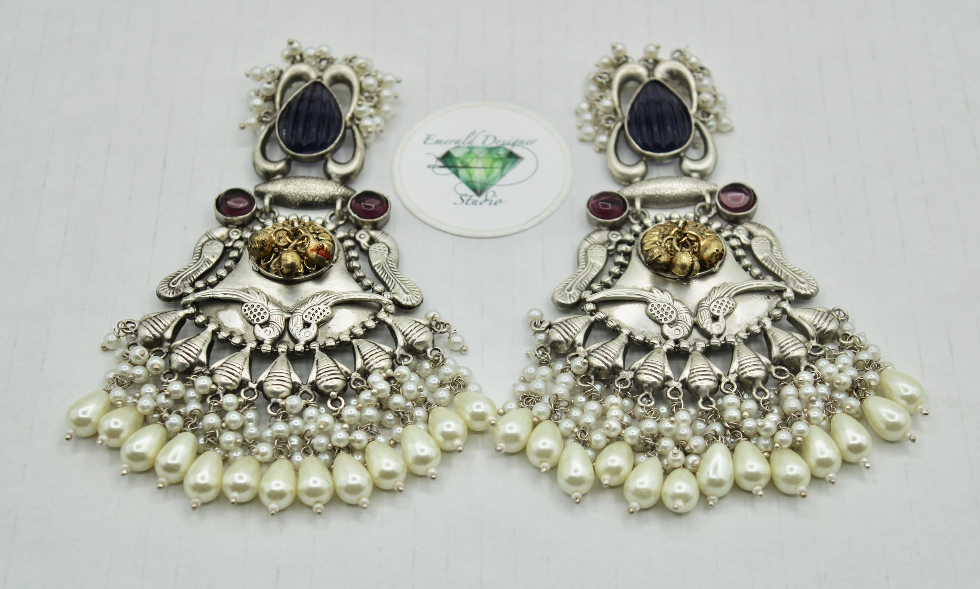 These sublime oxidized earrings are complete with faux pearl detailing throughout. They are the perfect accessory to pair with both Eastern and Western outfits.