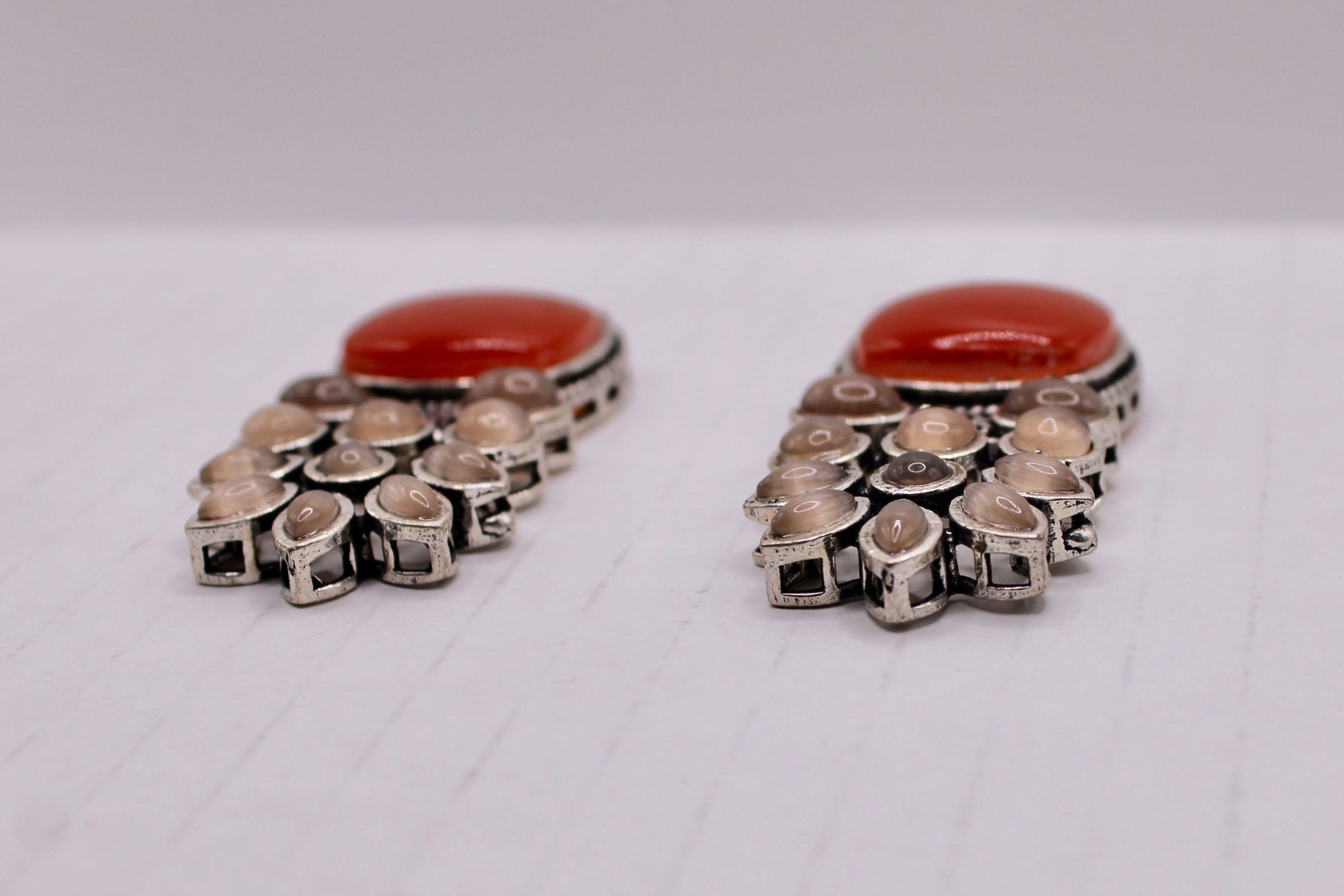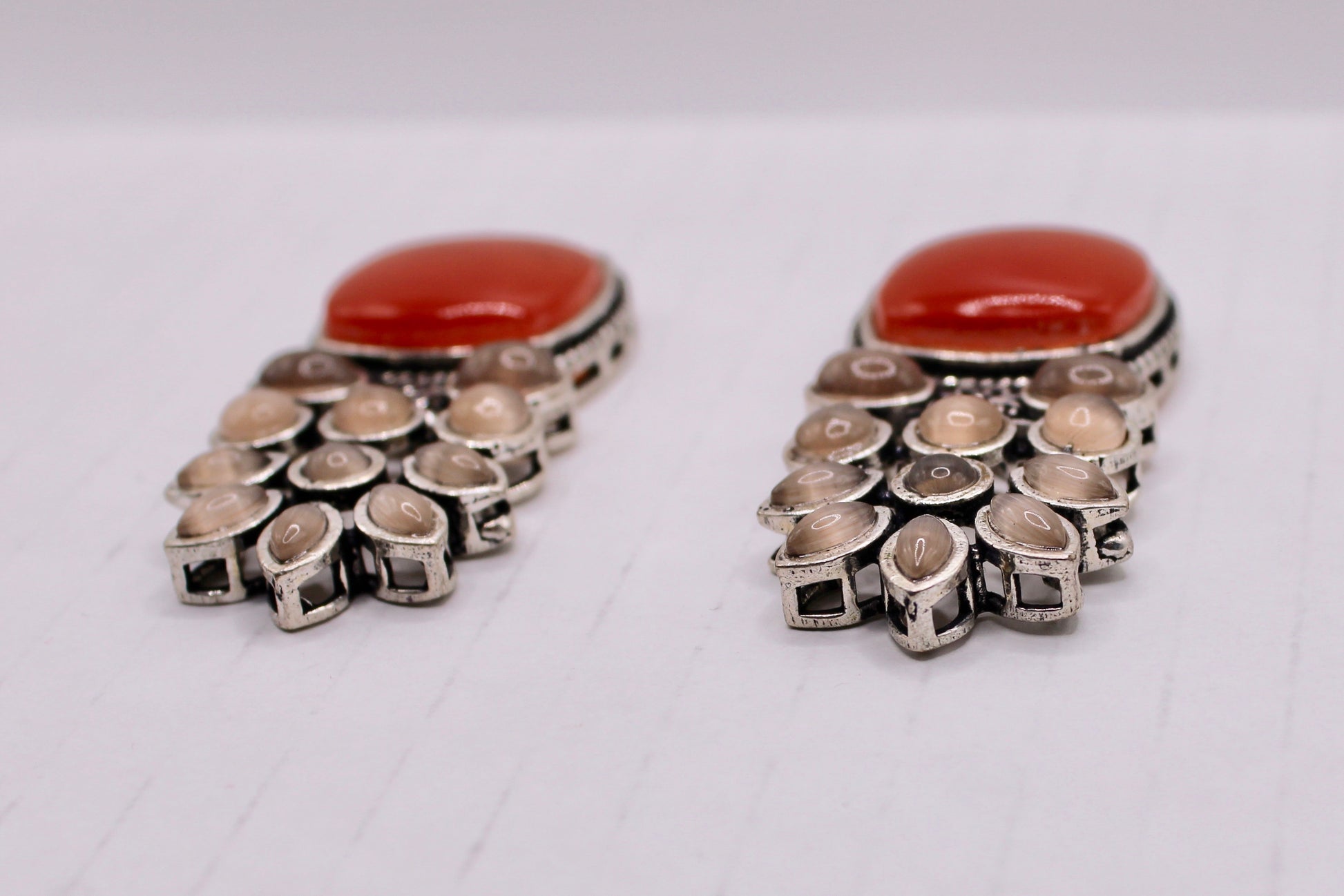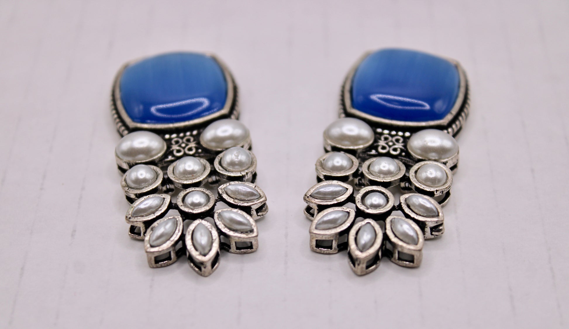 These oxidized earrings complete with mona lisa are a trendy addition to any outfit, and their high quality makes them a long-lasting choice. Their oxidized finish adds a touch of uniqueness, and they can effortlessly enhance both eastern and western outfits. Make a statement with these versatile earrings. Available in two colours.