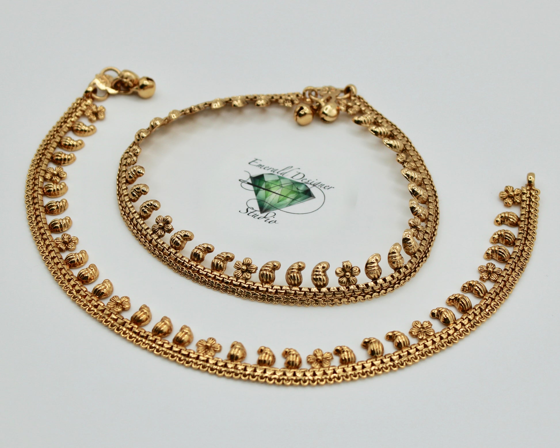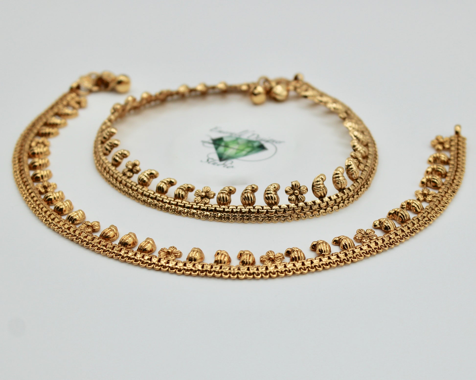 These unique vintage anklets are complete with paisley detailing and small bells.