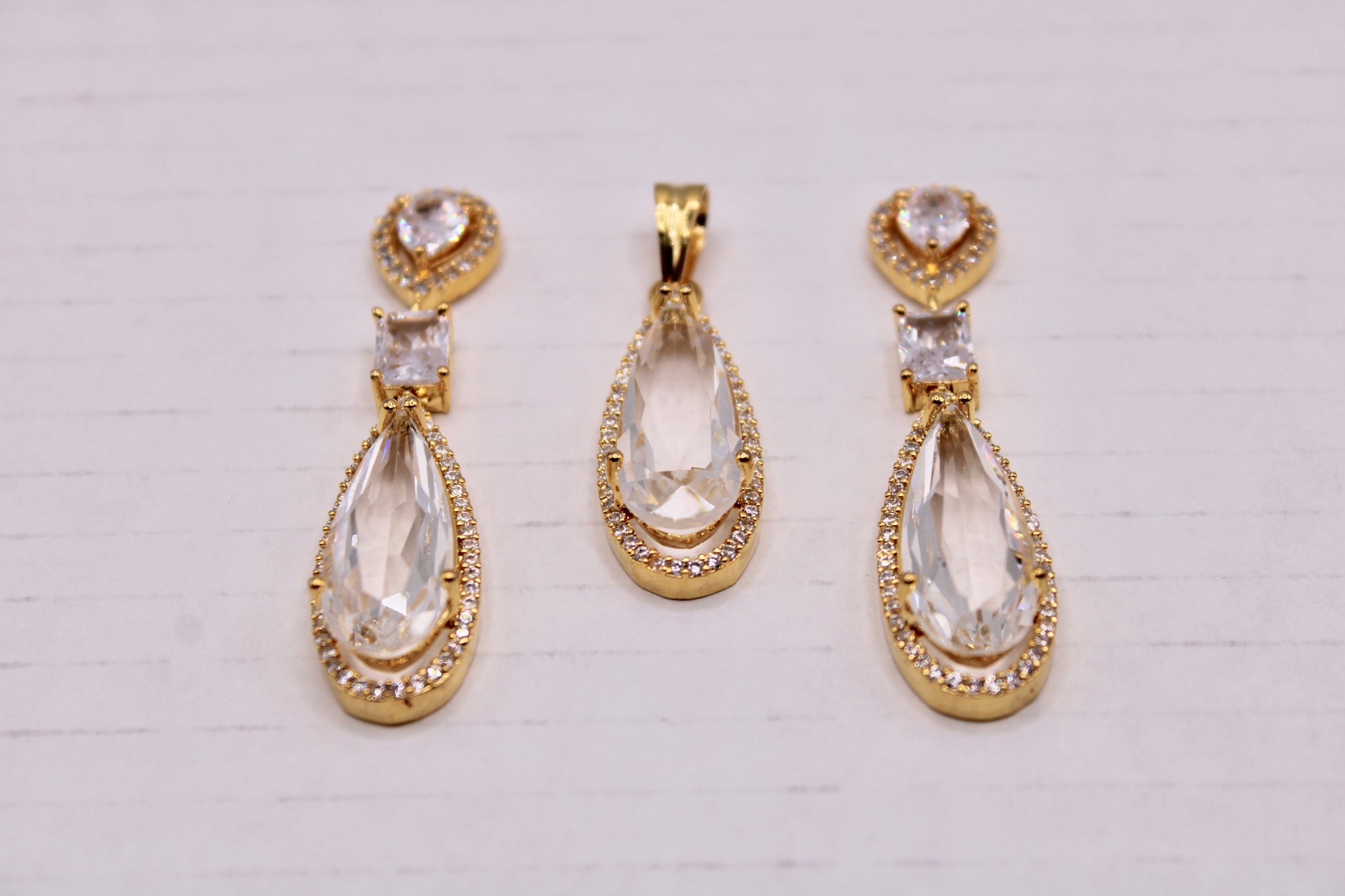Pear-Cut Cubic Zirconia Pendant Set - E685