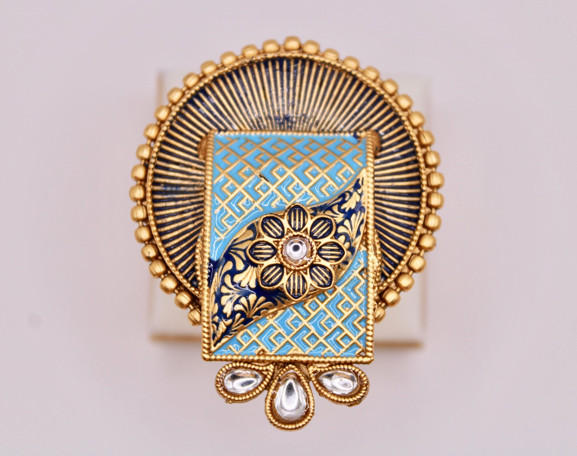 Rajwadi Meena And Kundan Cocktail Ring - E1271