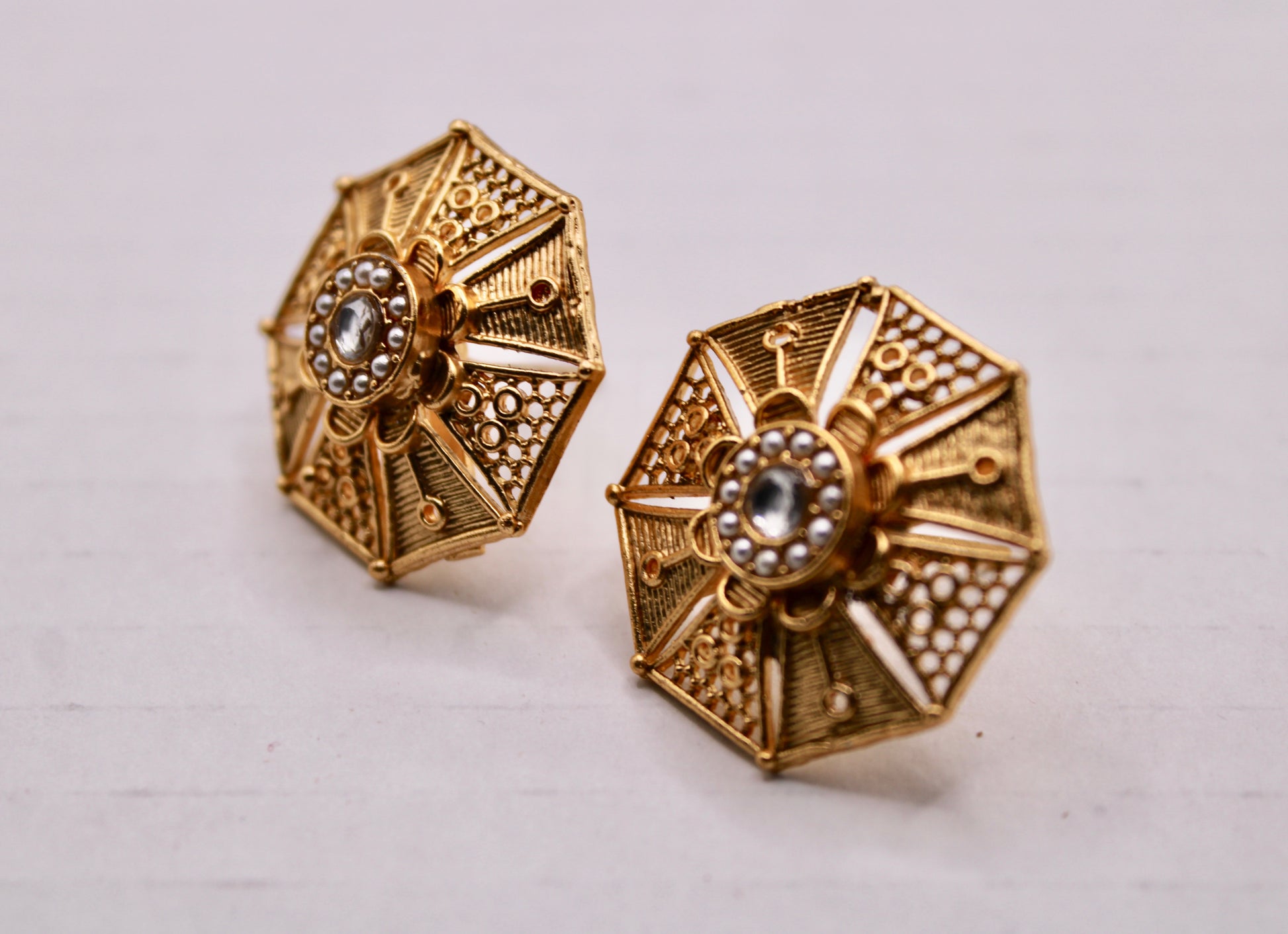 These stunning Rajwadi studs are complete with faux gem detailing, available in 4 colours.