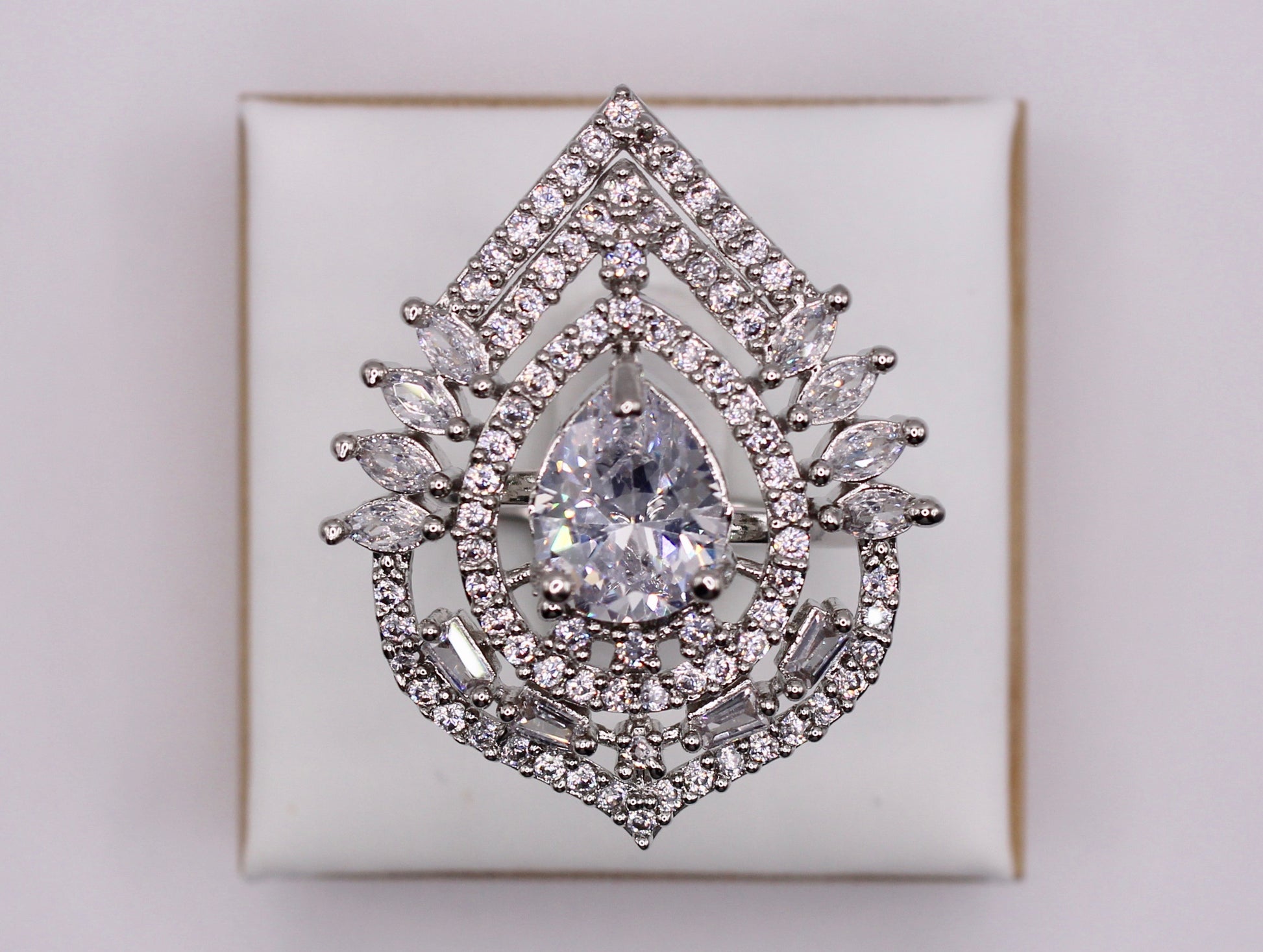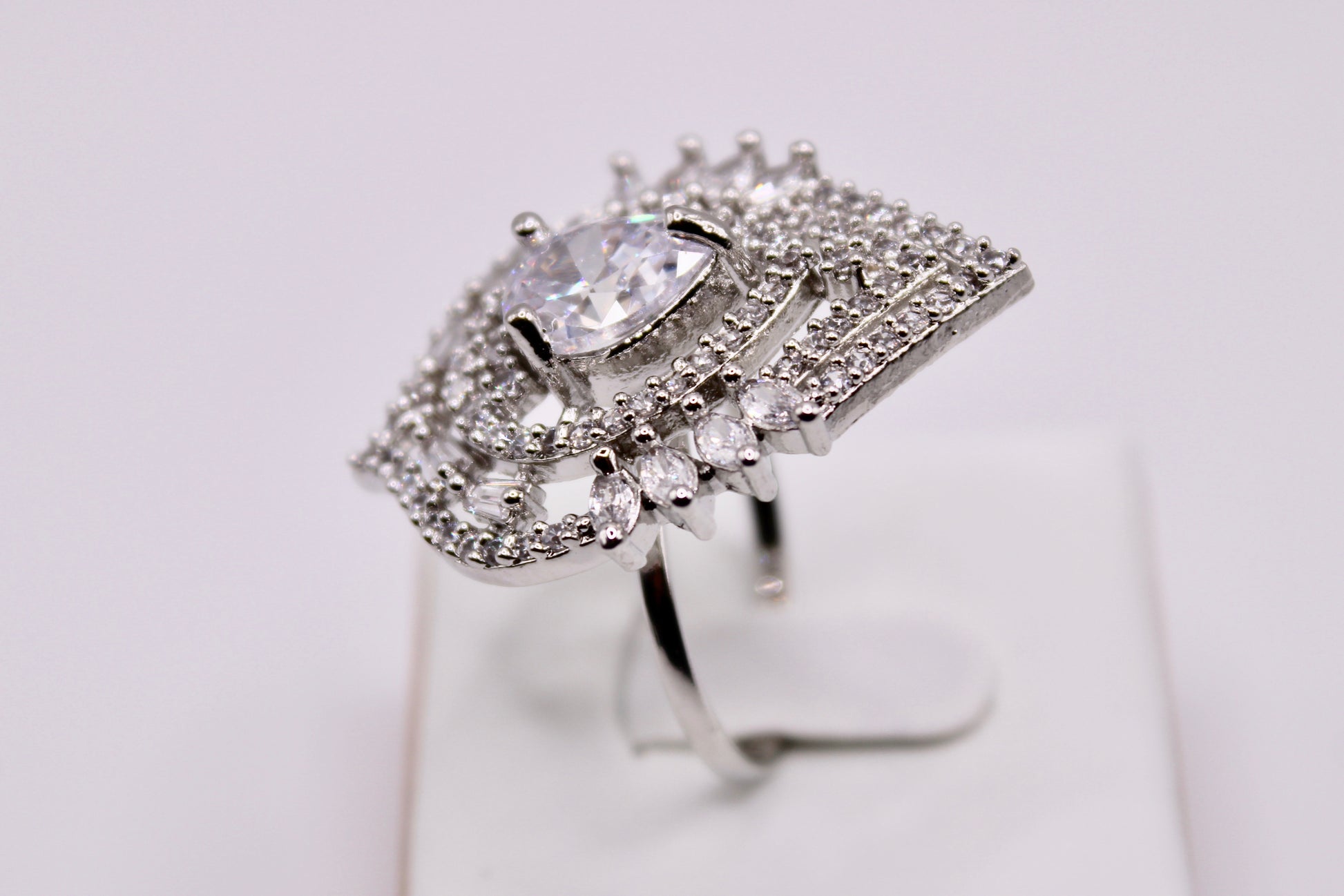 This remarkable cocktail ring can be a statement piece, made with jadao cubic zirconia.