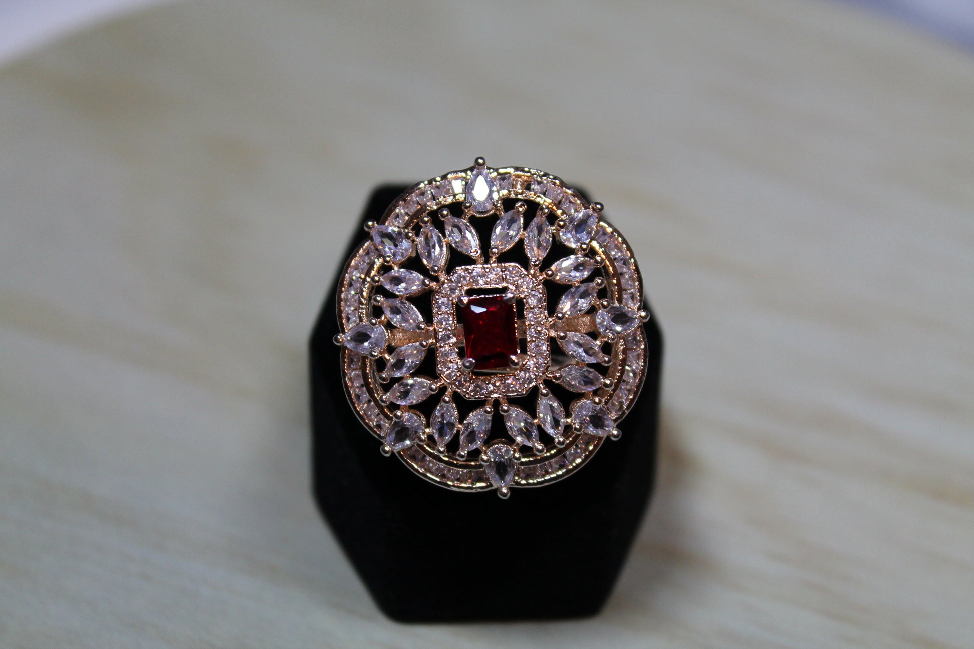 This Magnificent and stylish cocktail ring is artfully created cubic zirconia. Made of brass to increase product lifetime.