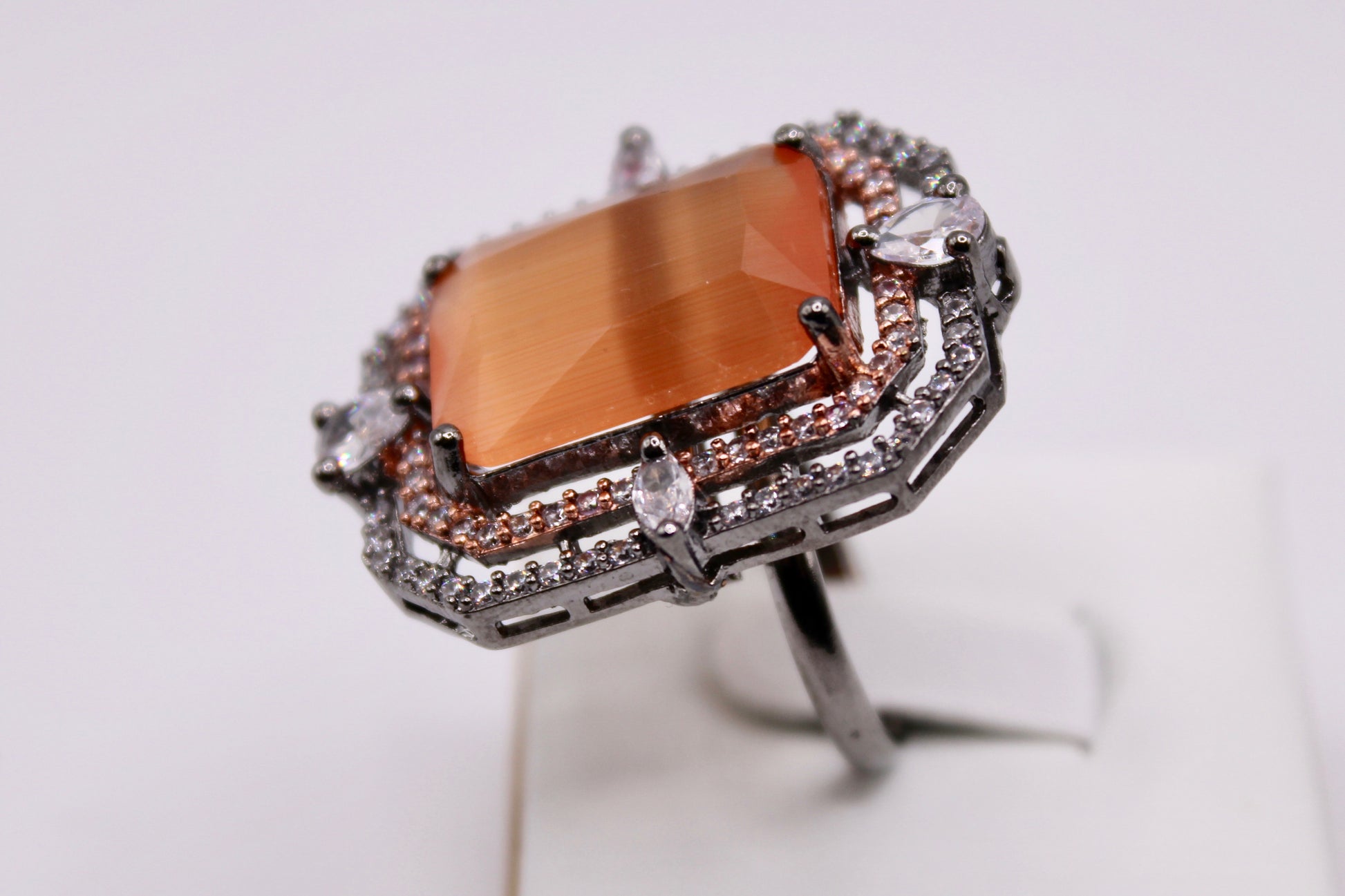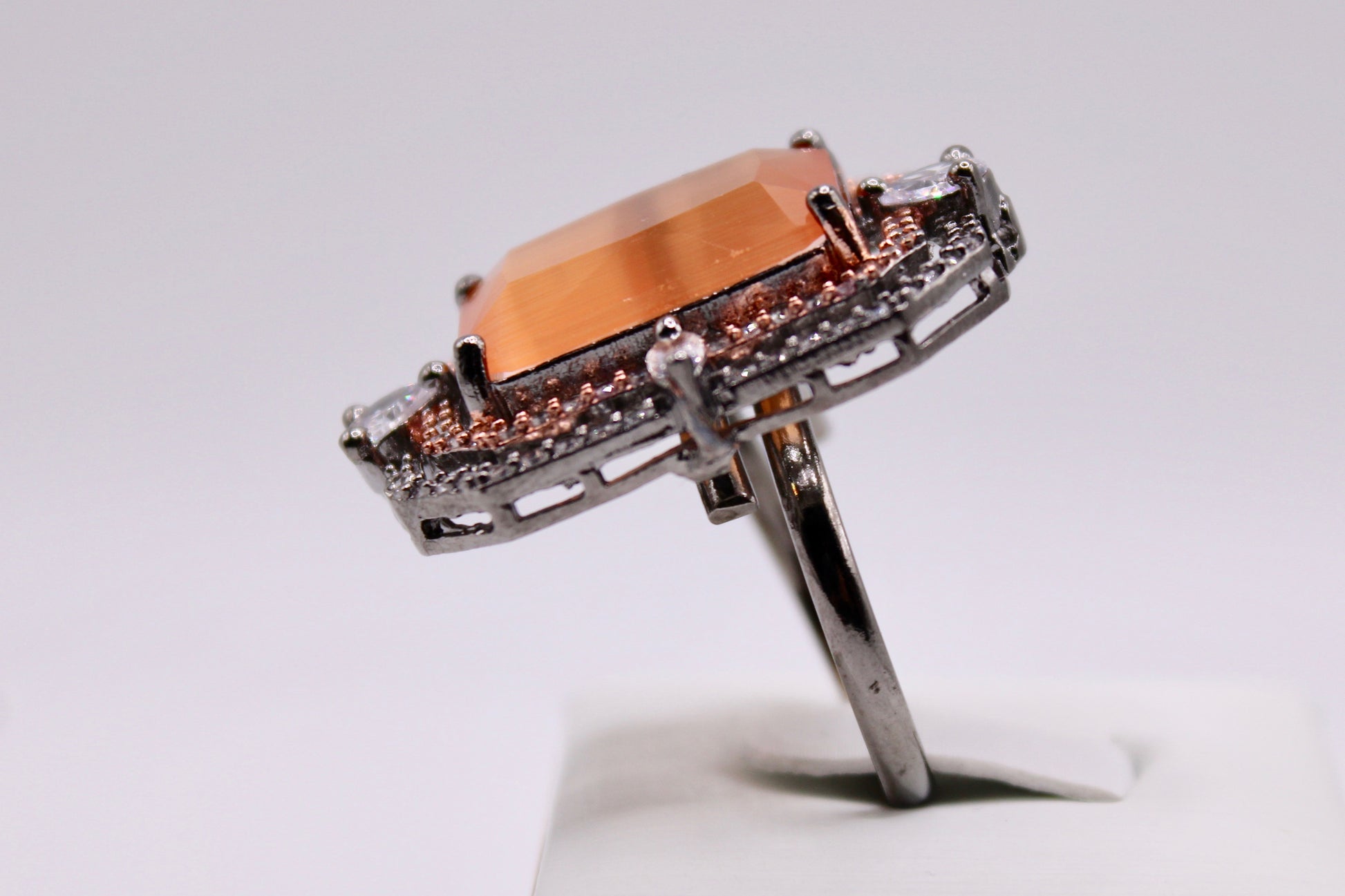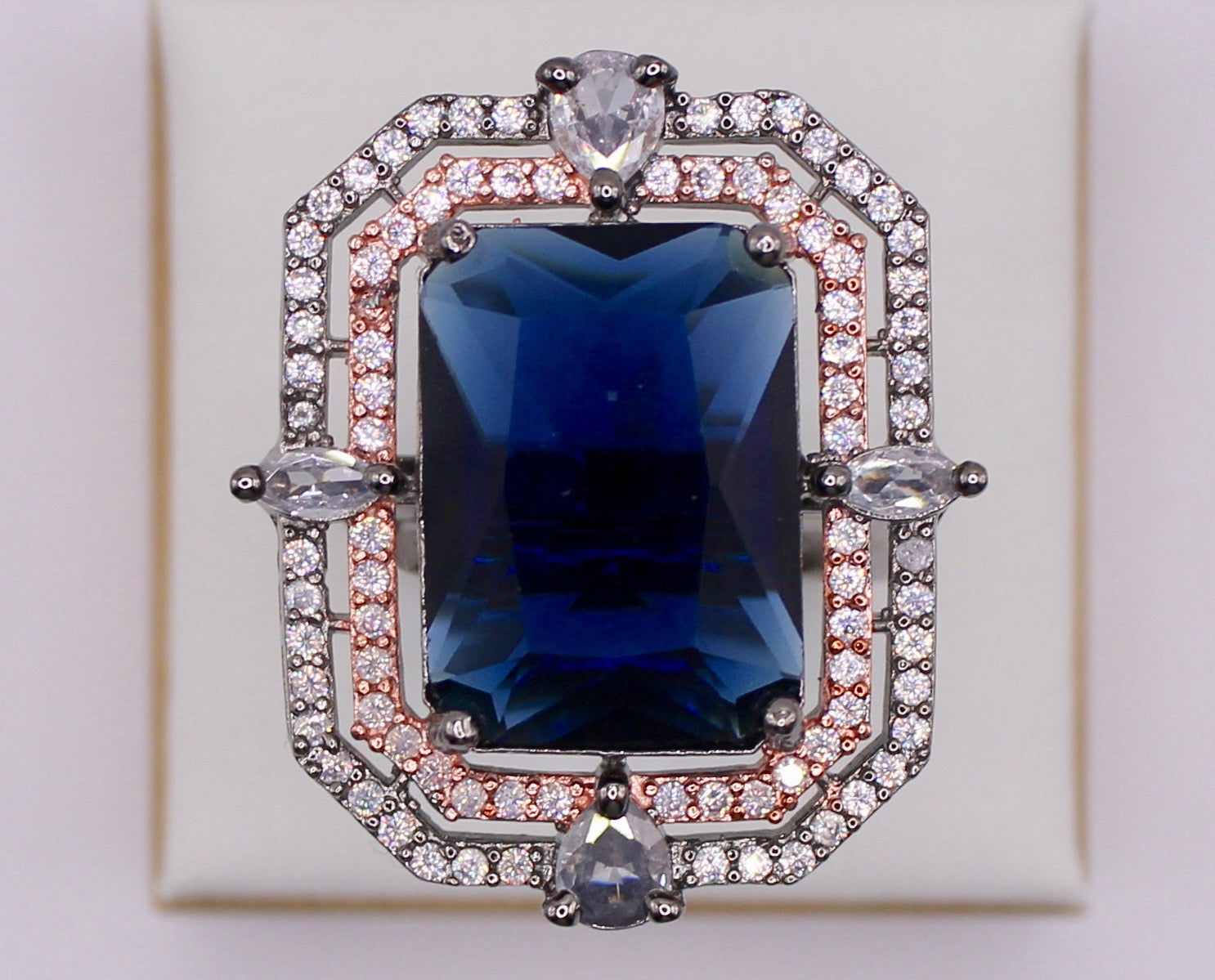 This beautiful statement ring is complete with a centred Emerald-cut cubic zirconia. It is available in 3 colours.