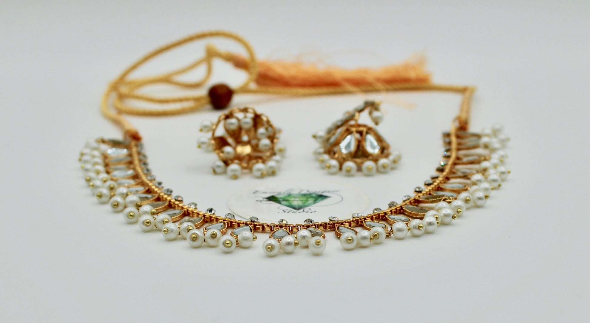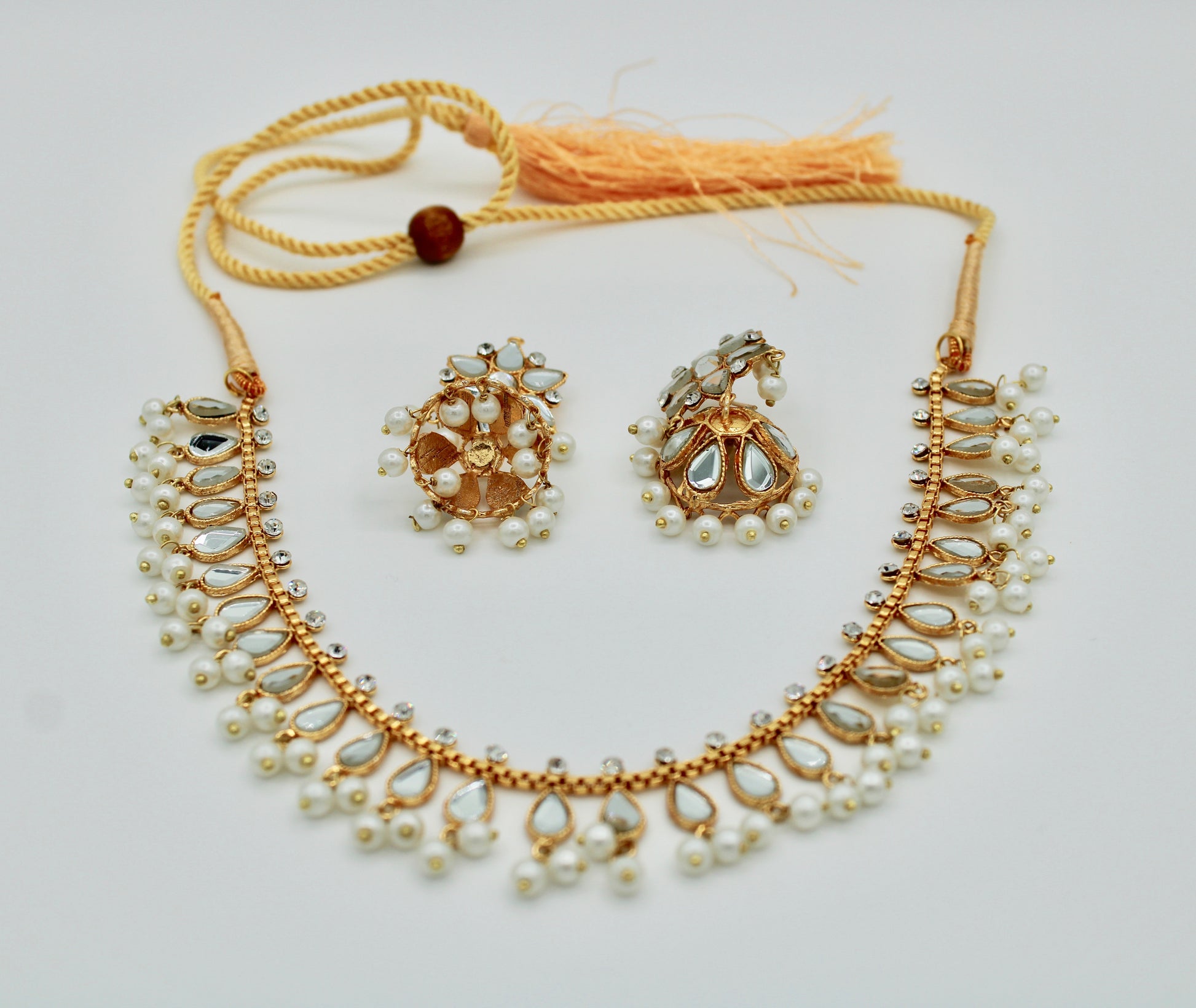 Sheesha Kundan and Faux Pearl Jhumki Set - E1172
