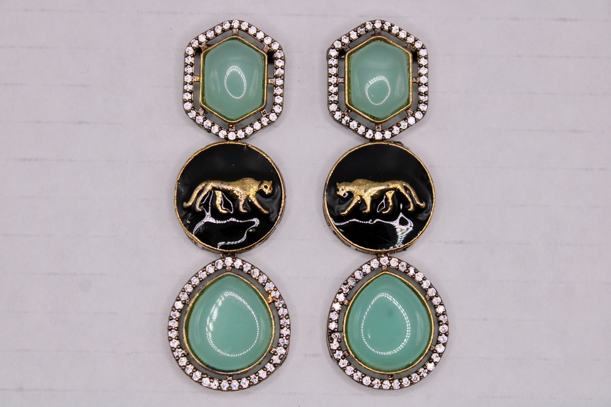 These stunning earrings are made of mona lisa stones and cubic zirconia. This style is extremely hard to find and is available in two colours.