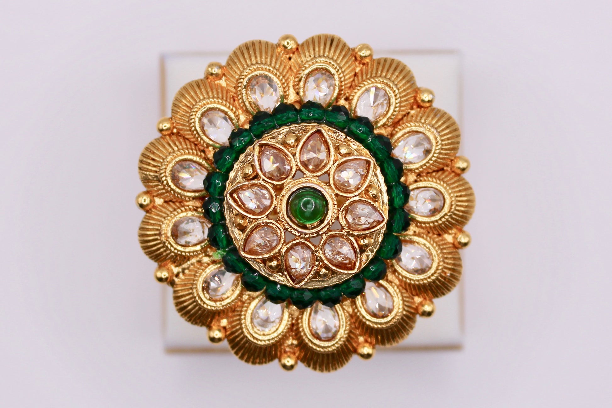 This rajwadi ring is complete with faux gem detailing, the perfect statement piece.