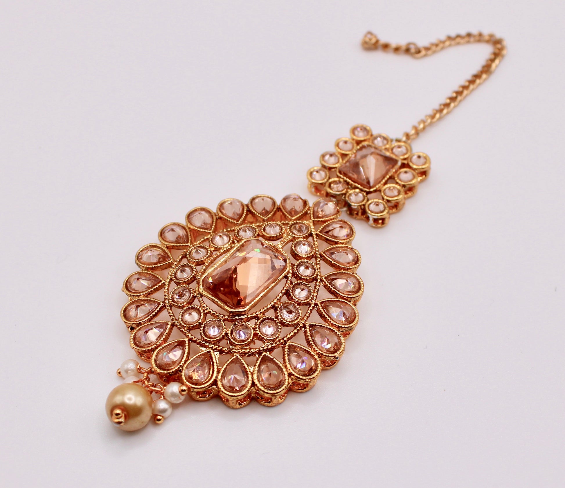 This gorgeous polki teeka is complete with cubic zirconia detailing throughout.