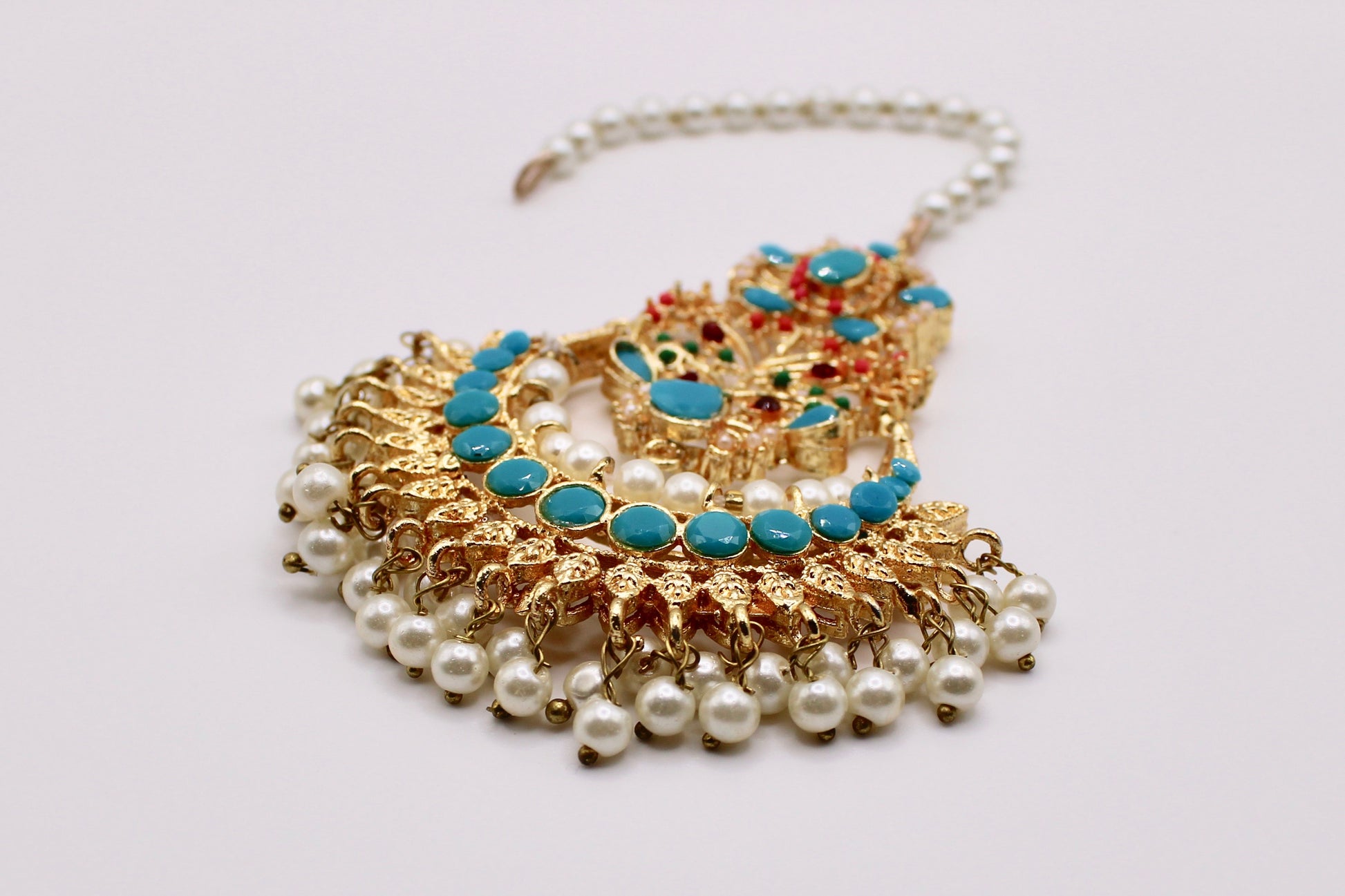This beautiful teeka is complete with faux pearl and gem detailing, and is available in 4 variations.