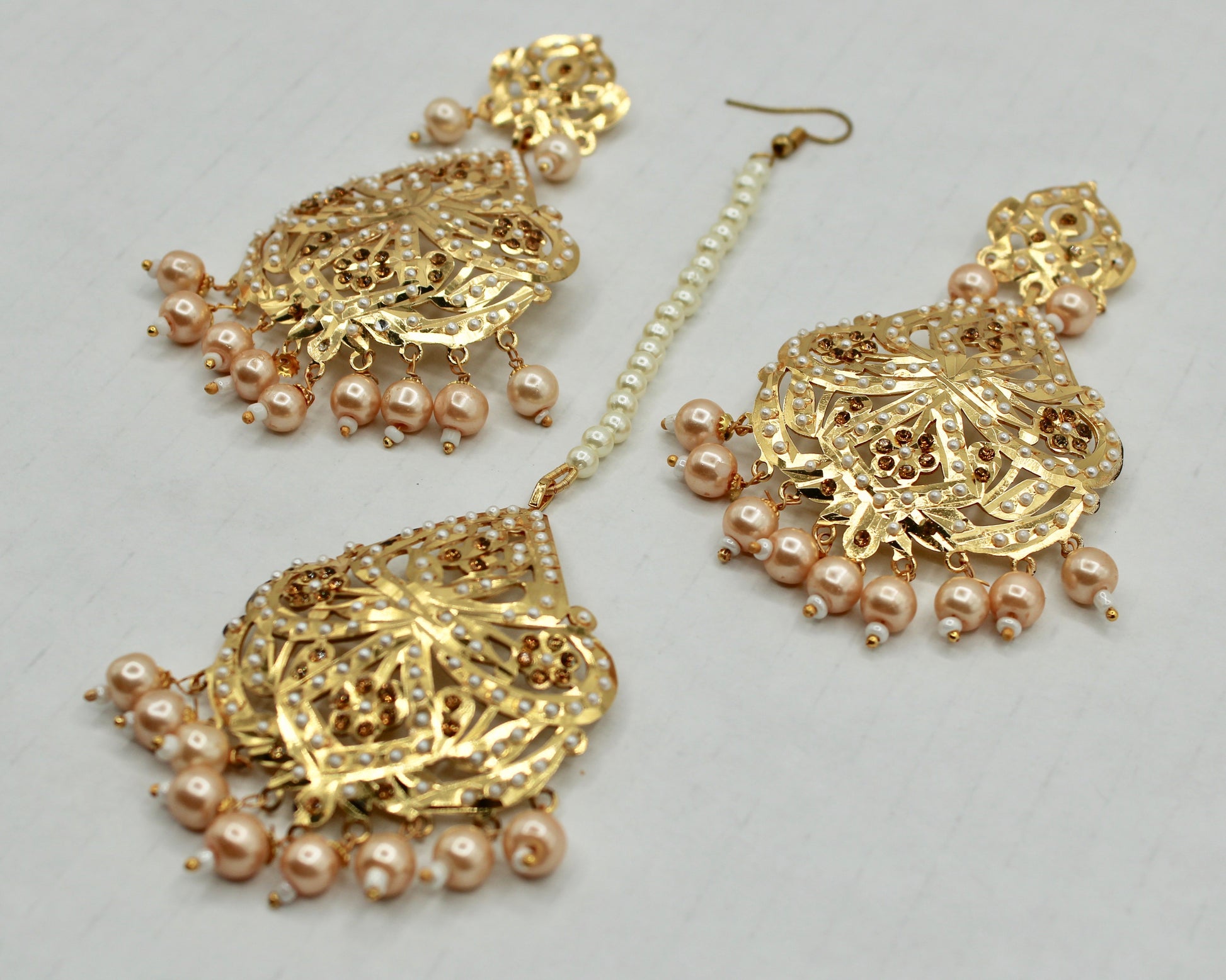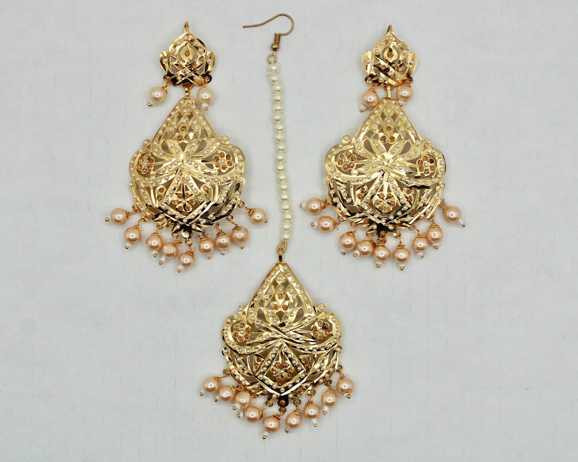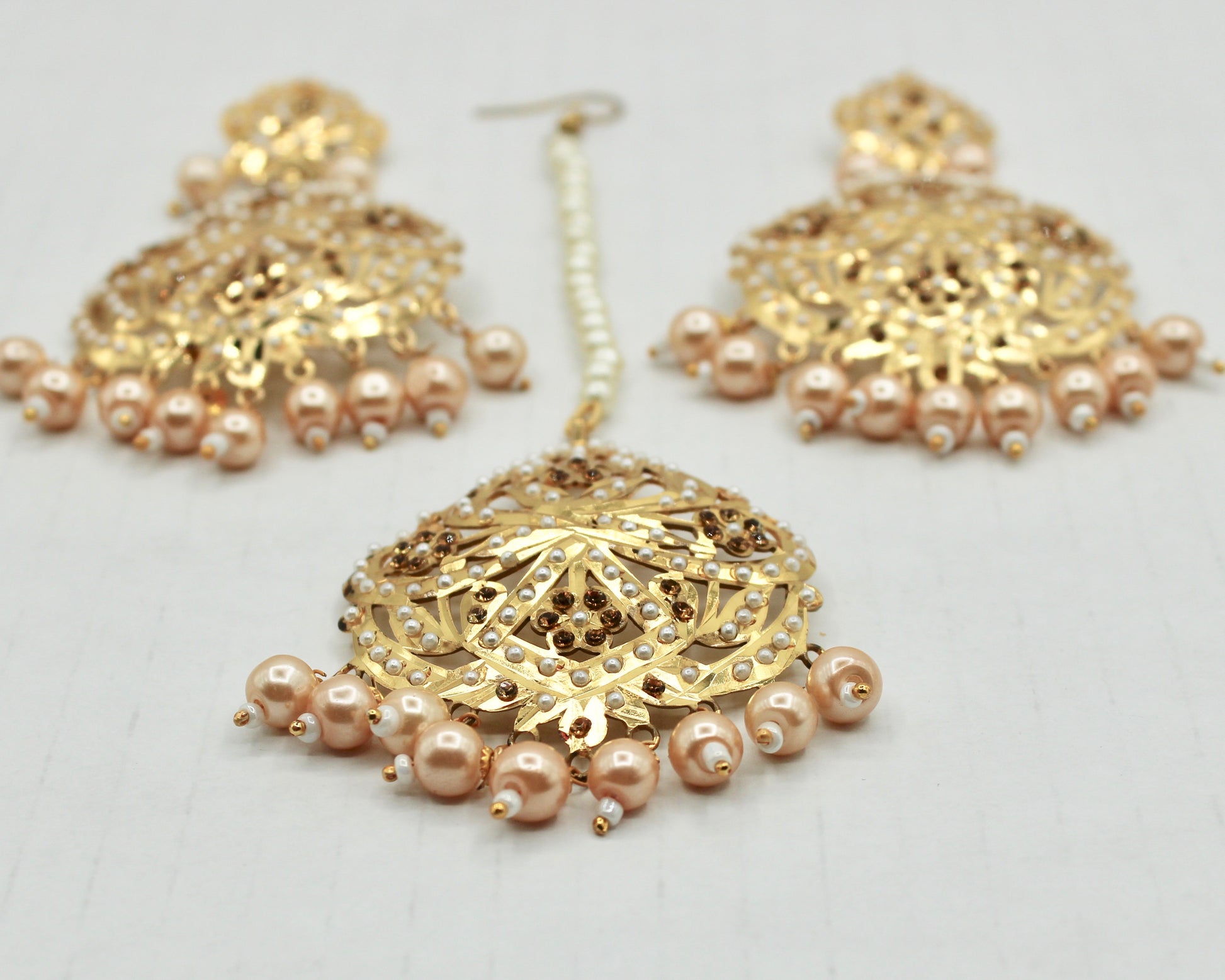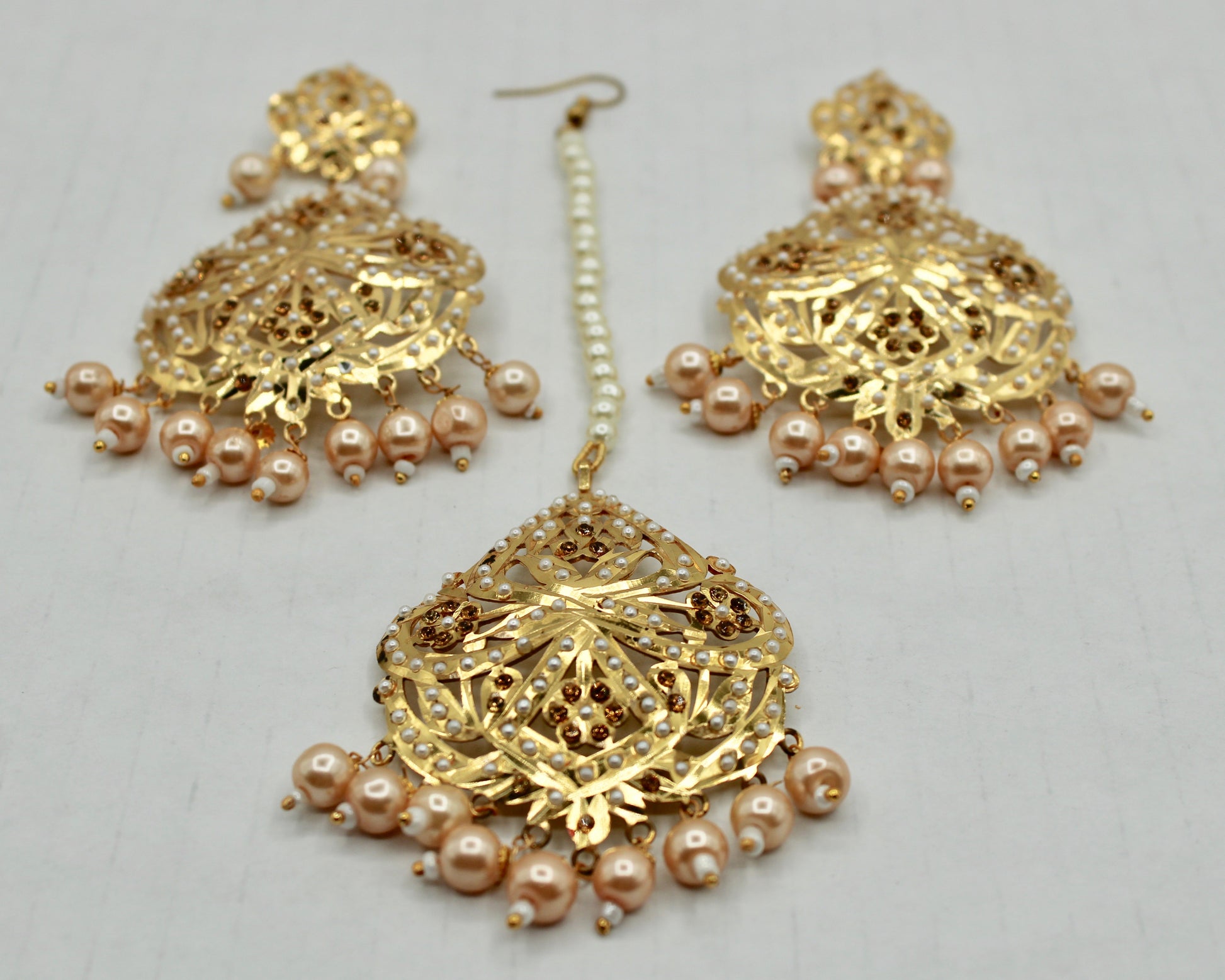 This traditional punjabi teeka set is complete with faux pearl detailing, and is the perfect accessory for all outfits and ages! It is complete with earrings and a matching teeka, available in two colours.