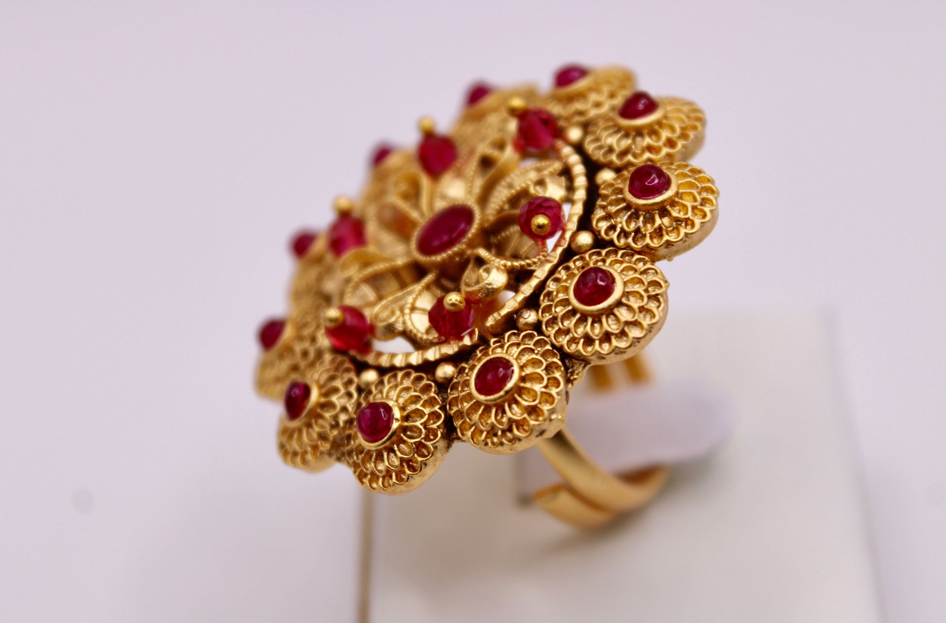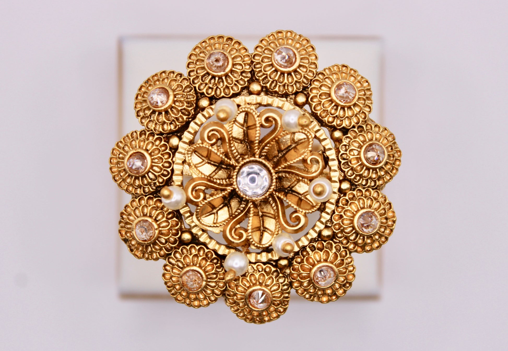 This gorgeous ring is made in traditional Rajwadi style with faux gem detailing, and is available in two colours.