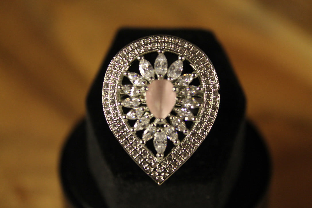یہ شاندار ناشپاتی کے سائز کا جاداو رنگ گلابی کیوبک زرکونیا کے ساتھ مکمل ہے، یہ آپ کے مجموعہ کے لیے بہترین ہے! مصنوعات کی زندگی بھر میں اضافہ کرنے کے لیے پیتل سے بنا ہے۔