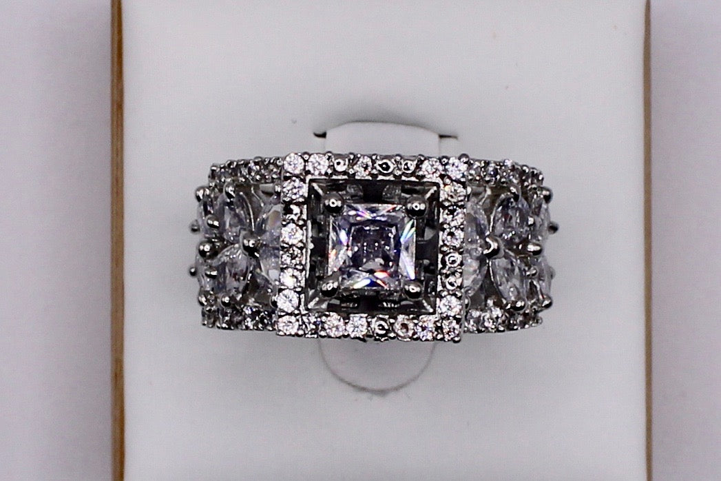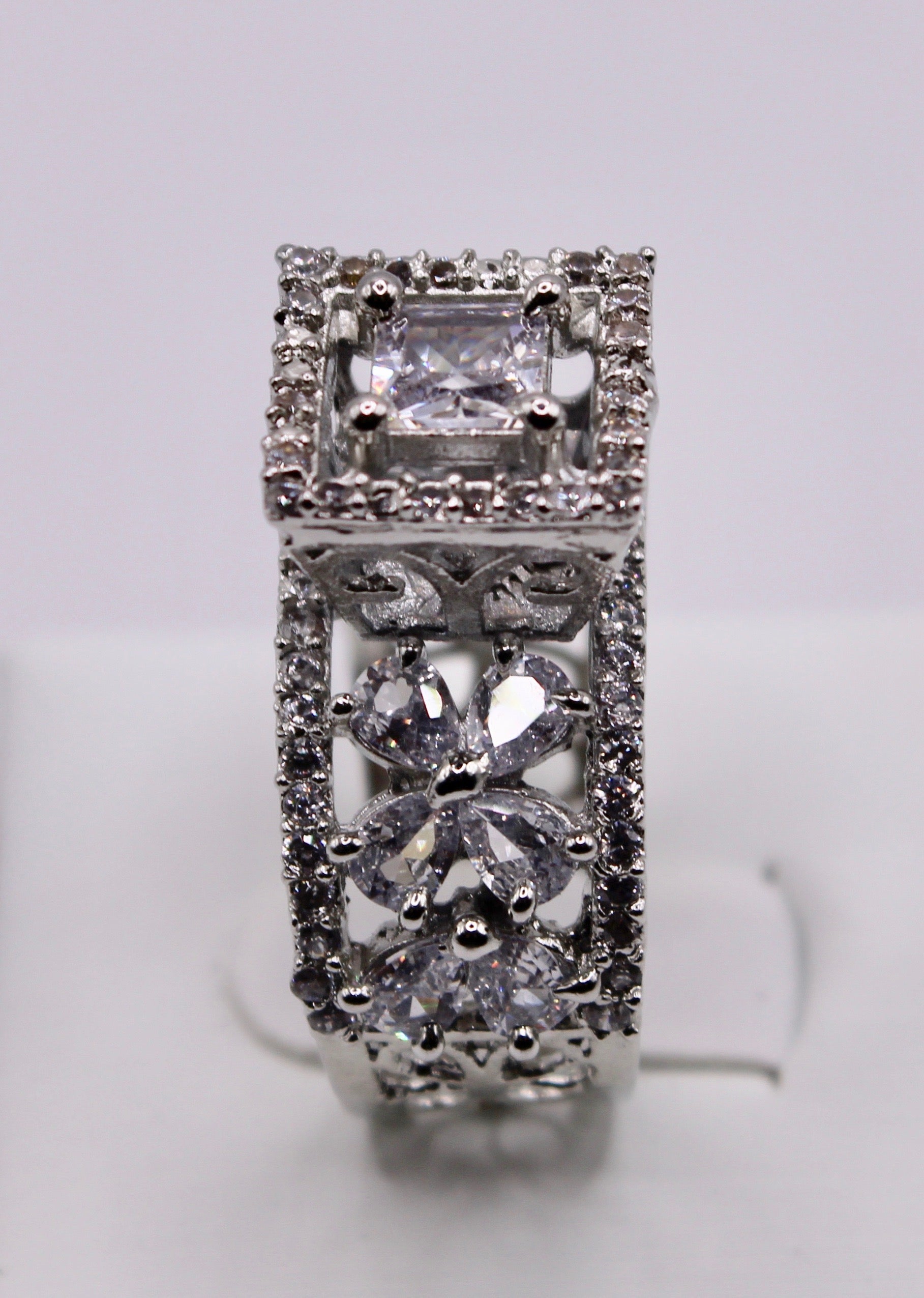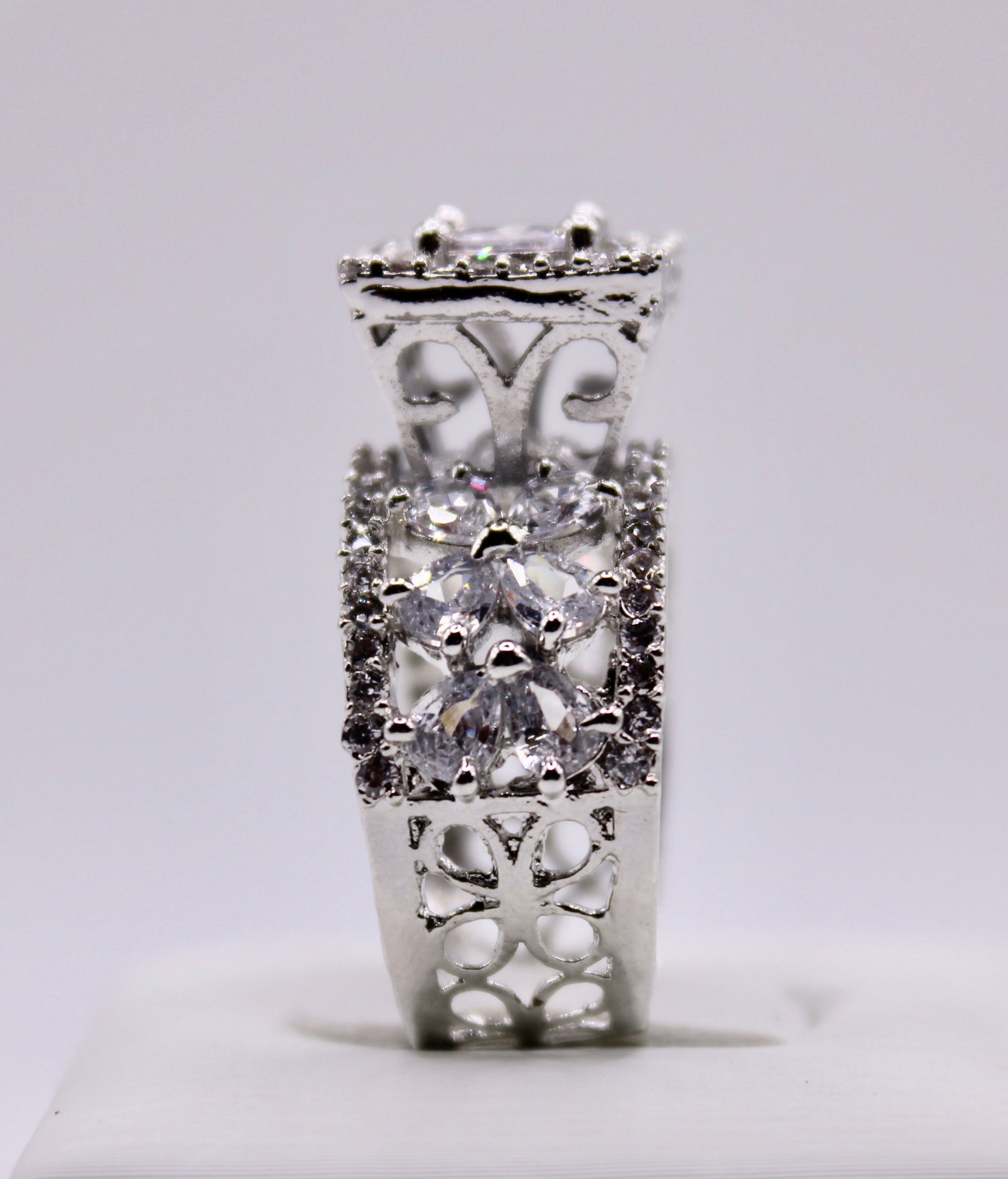 This unique cathedral ring is complete with cubic zirconia throughout. It is the perfect ring to pair with both Eastern and Western outfits.