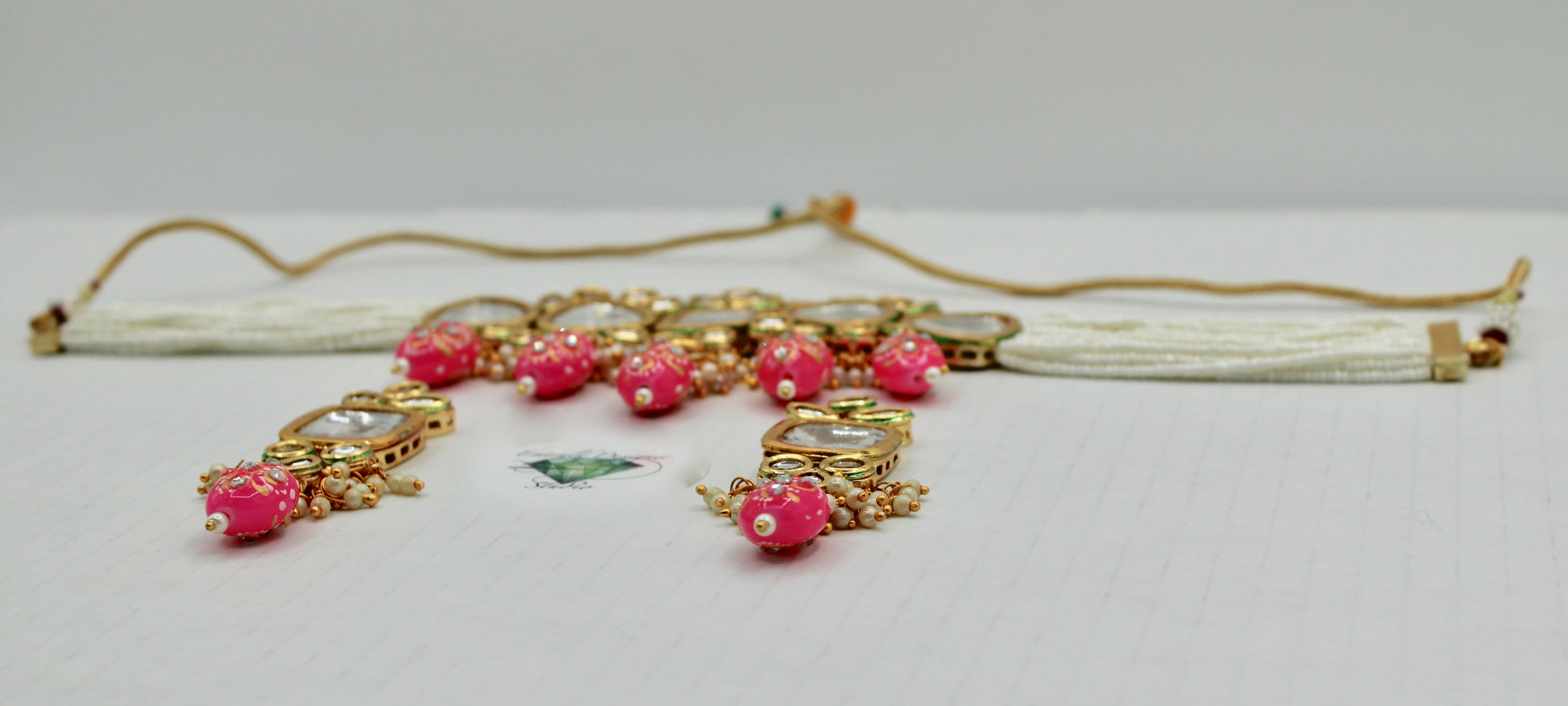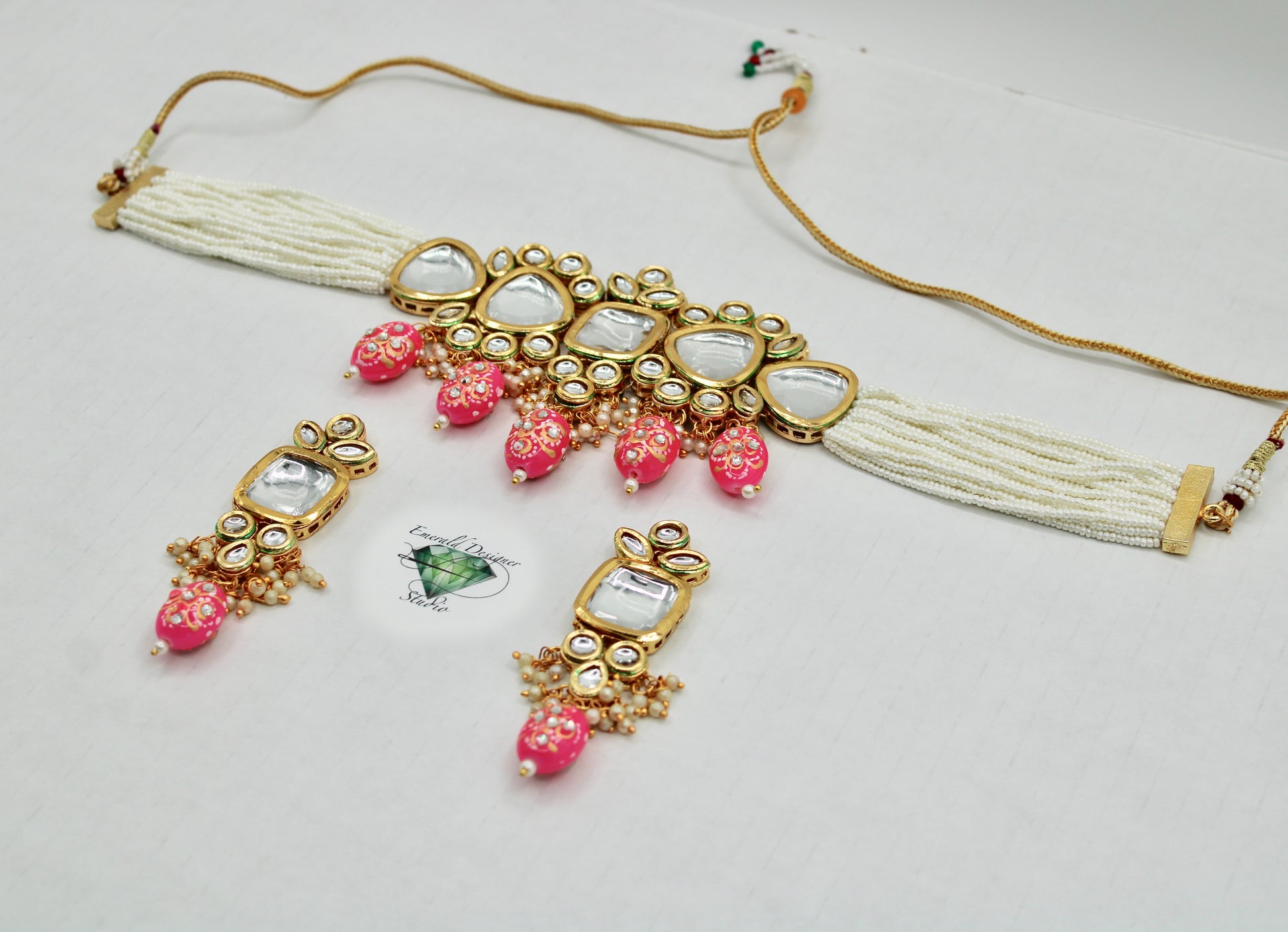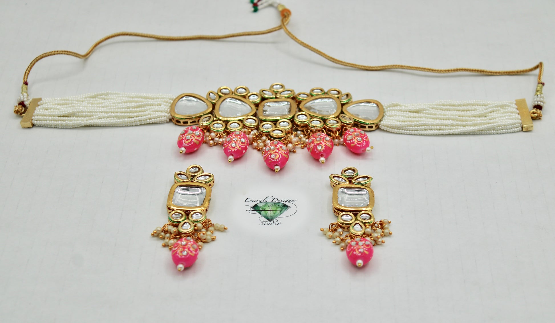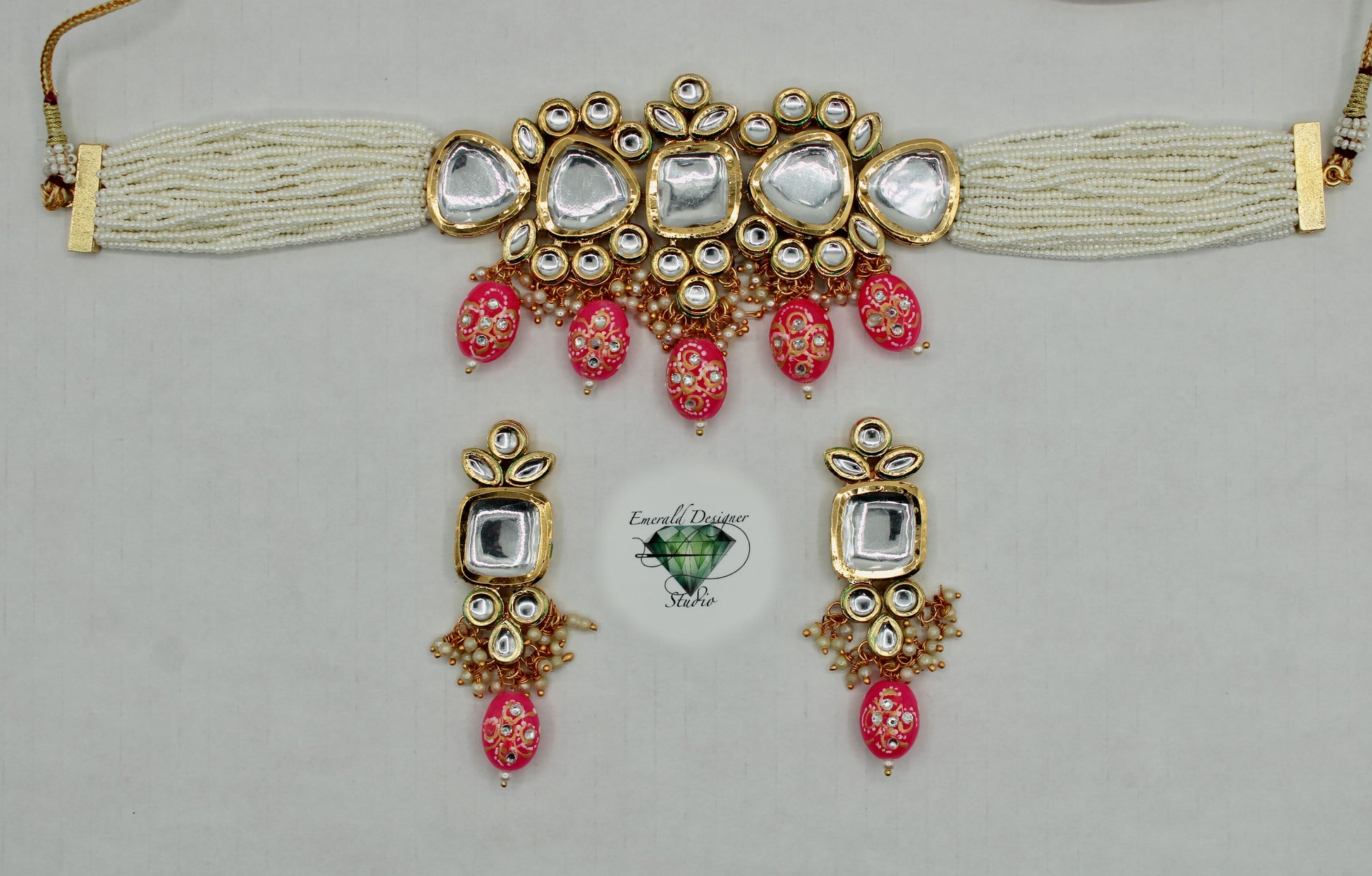 یہ ہاتھ سے بنا ہوا ونٹیج کندن چوکر موتیوں کی متعدد تہوں کے ساتھ ہاتھ سے بُنا ہے اور مینا کے ساتھ ختم ہوتا ہے۔ مصنوعات کی زندگی بھر میں اضافہ کرنے کے لیے پیتل سے بنا ہے۔