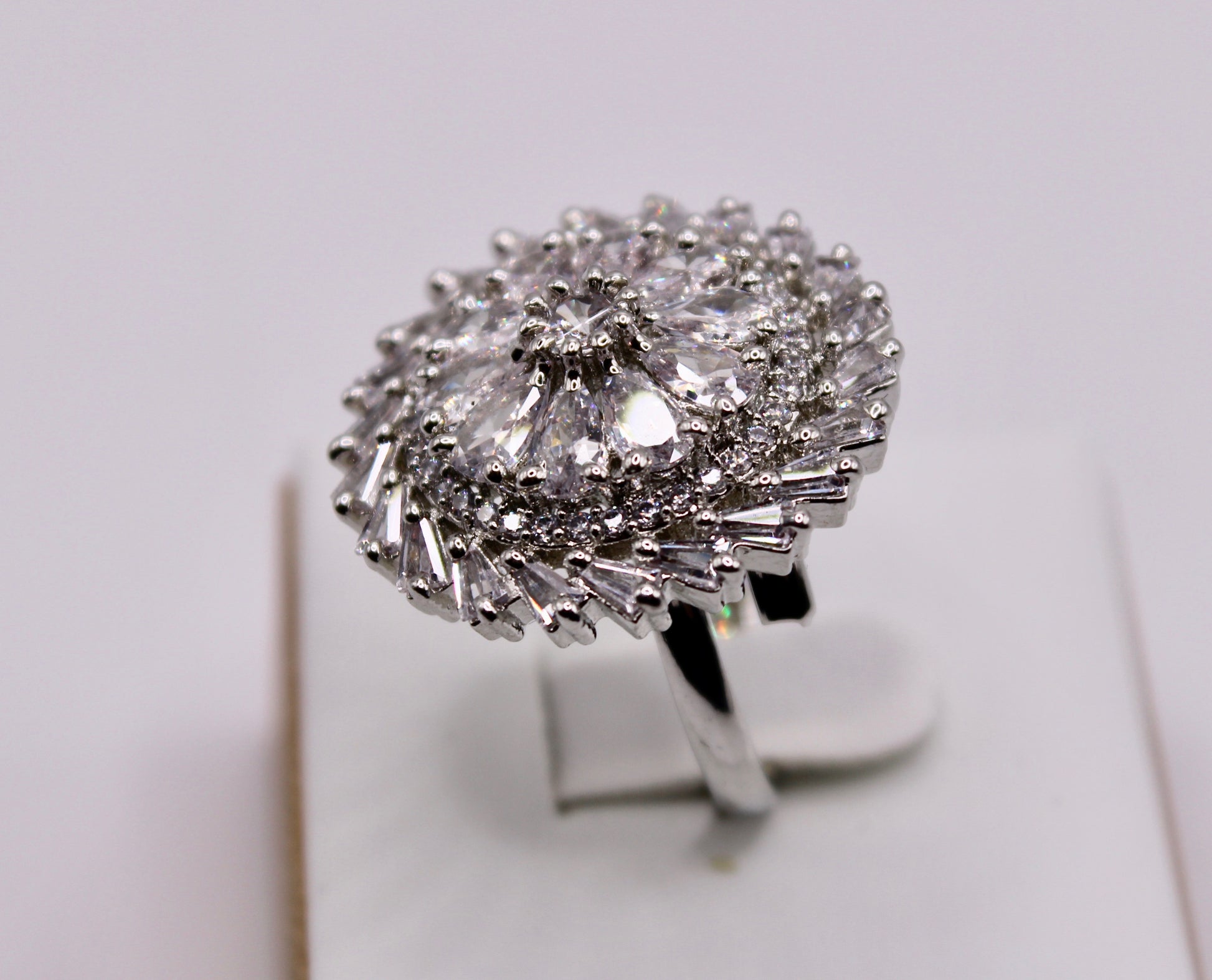 یہ شاندار انگوٹھی کیوبک زرکونیا پھولوں کی تفصیل کے ساتھ مکمل ہے۔ مصنوعات کی زندگی بھر میں اضافہ کرنے کے لیے پیتل سے بنا ہے۔