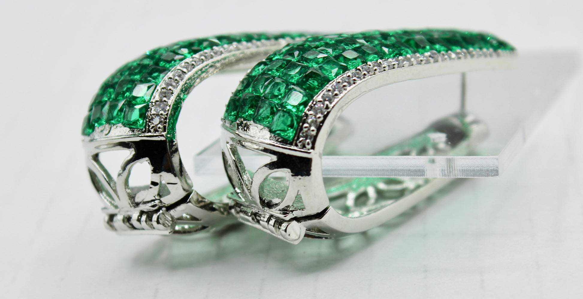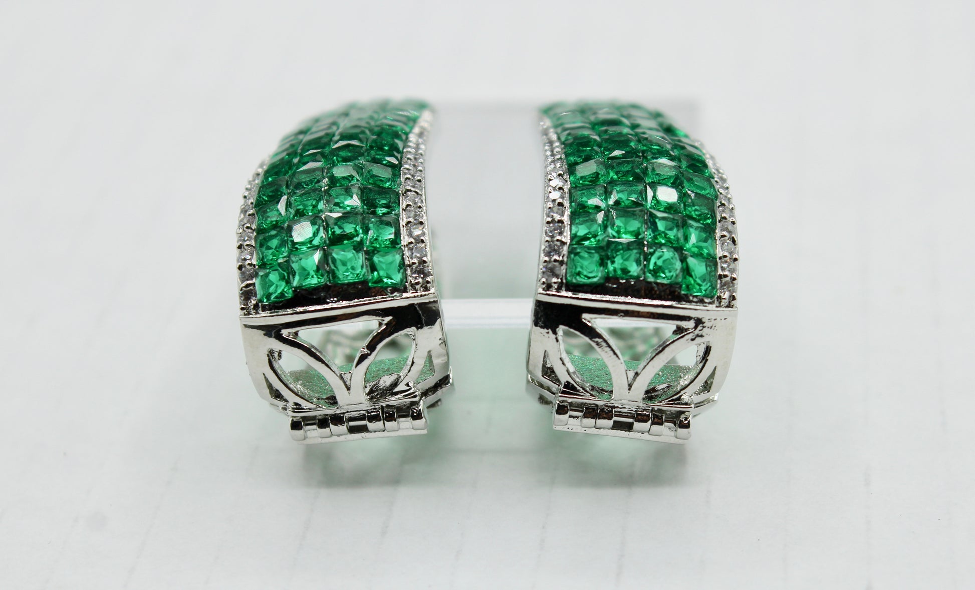 یہ شاندار ہوپ بالیاں پیچیدہ طریقے سے بنائی گئی ہیں اور کیوبک زرکونیا کی تفصیلات کے ساتھ مکمل ہیں۔ دو رنگوں میں دستیاب ہے۔