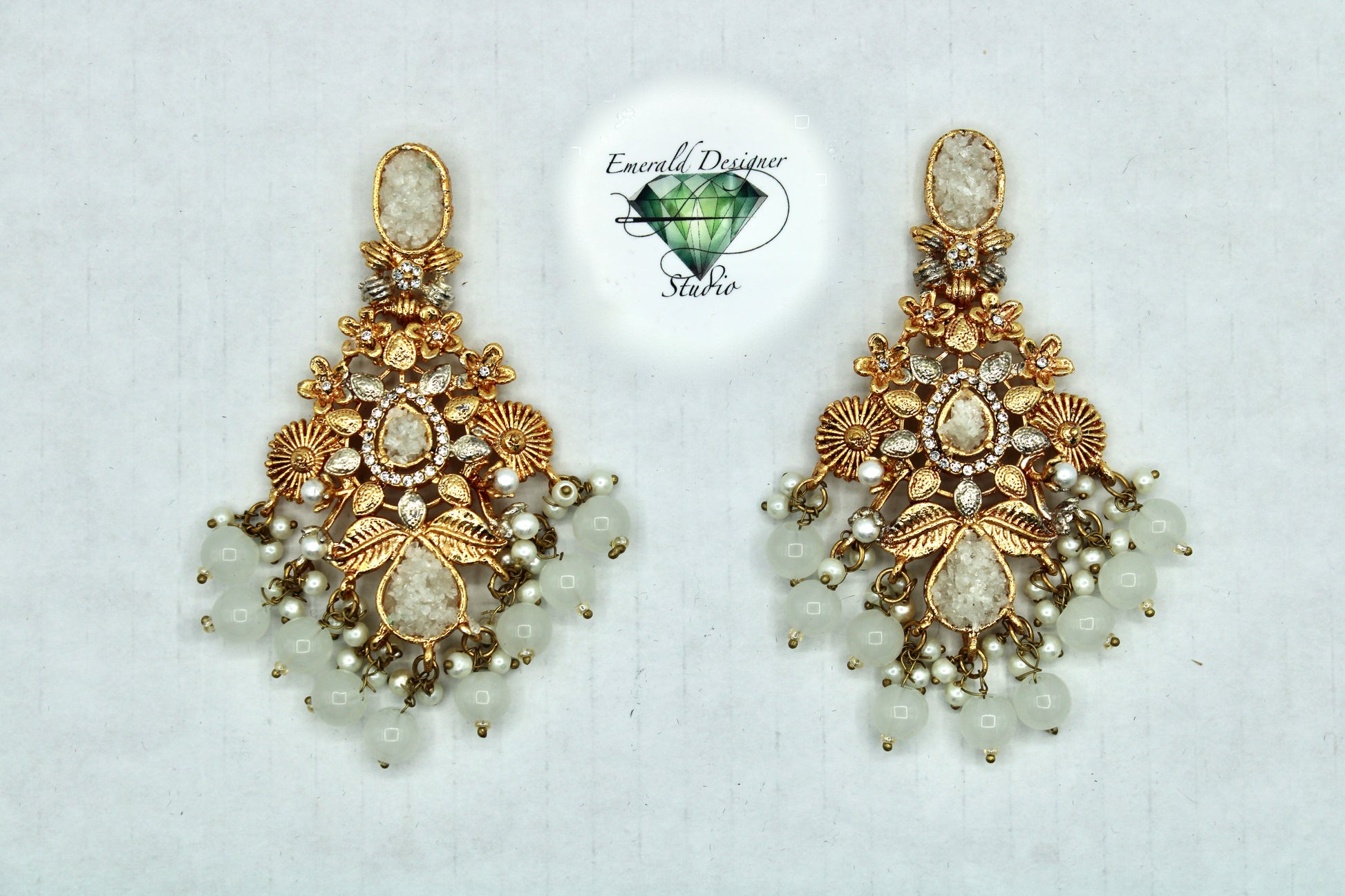 These earrings are beautifully crafted with crushed stone detailing, faux pearls, floral accents and dangling beads. They can be easily paired with and will compliment any look! These earrings are available in four colours with limited quanitities!