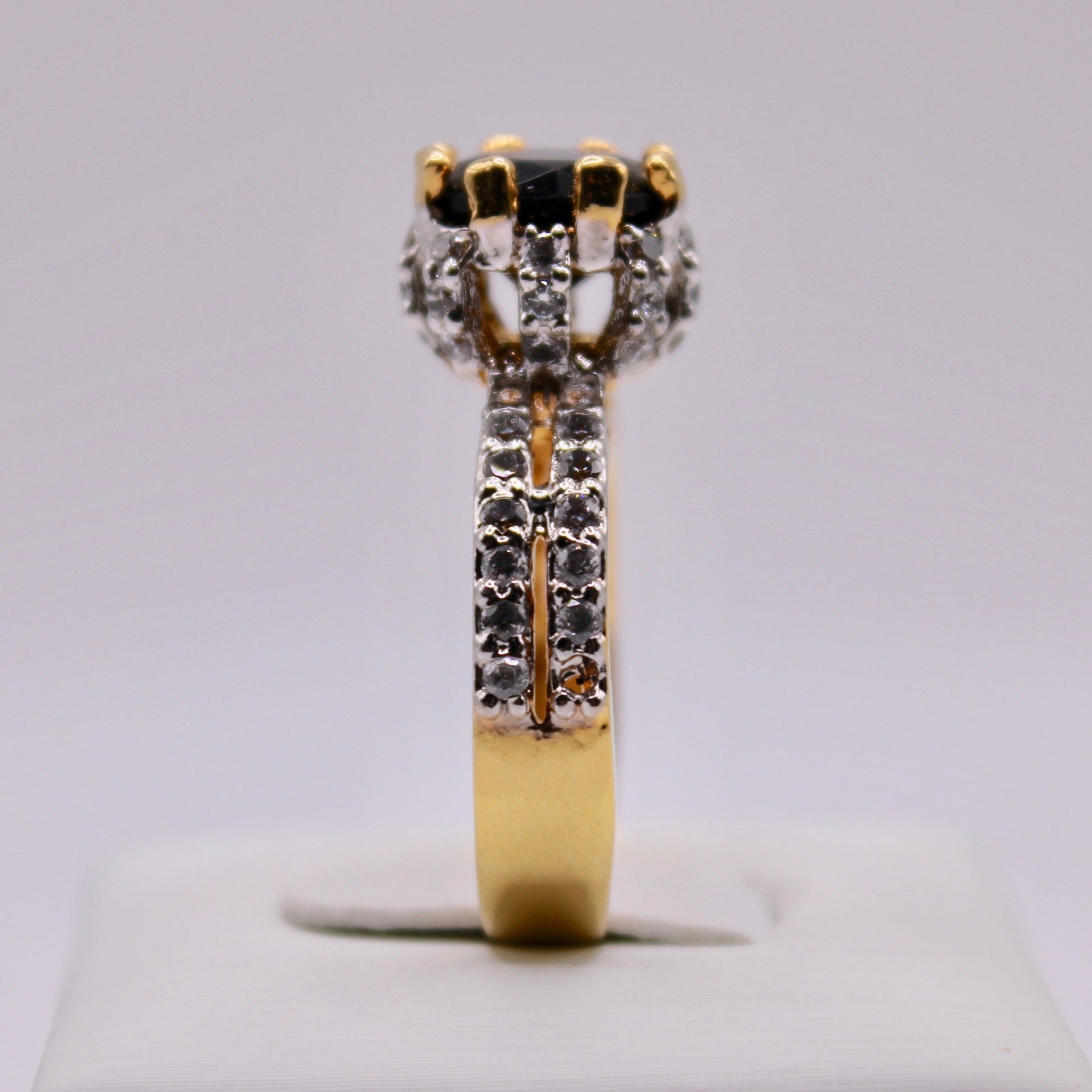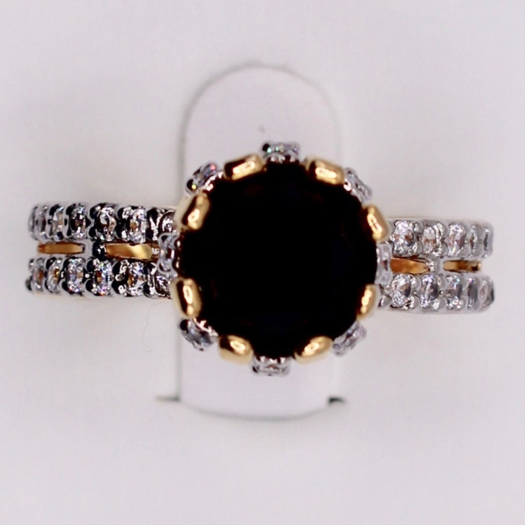 This unique cathedral ring is complete with cubic zirconia throughout. It is the perfect ring to pair with both Eastern and Western outfits. Available in two colours.