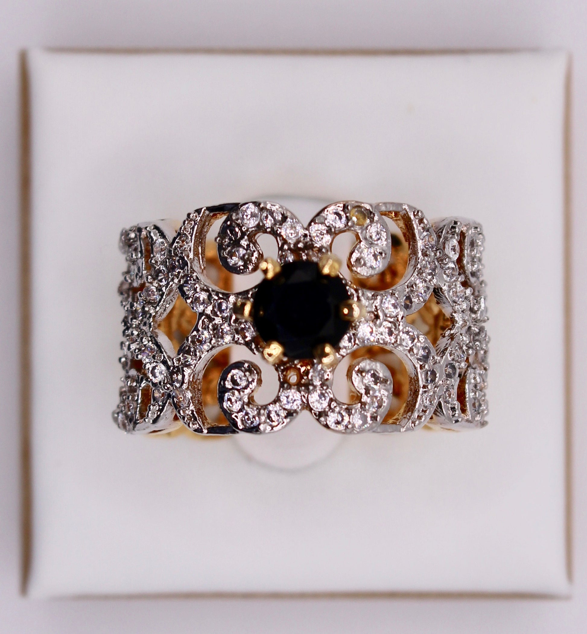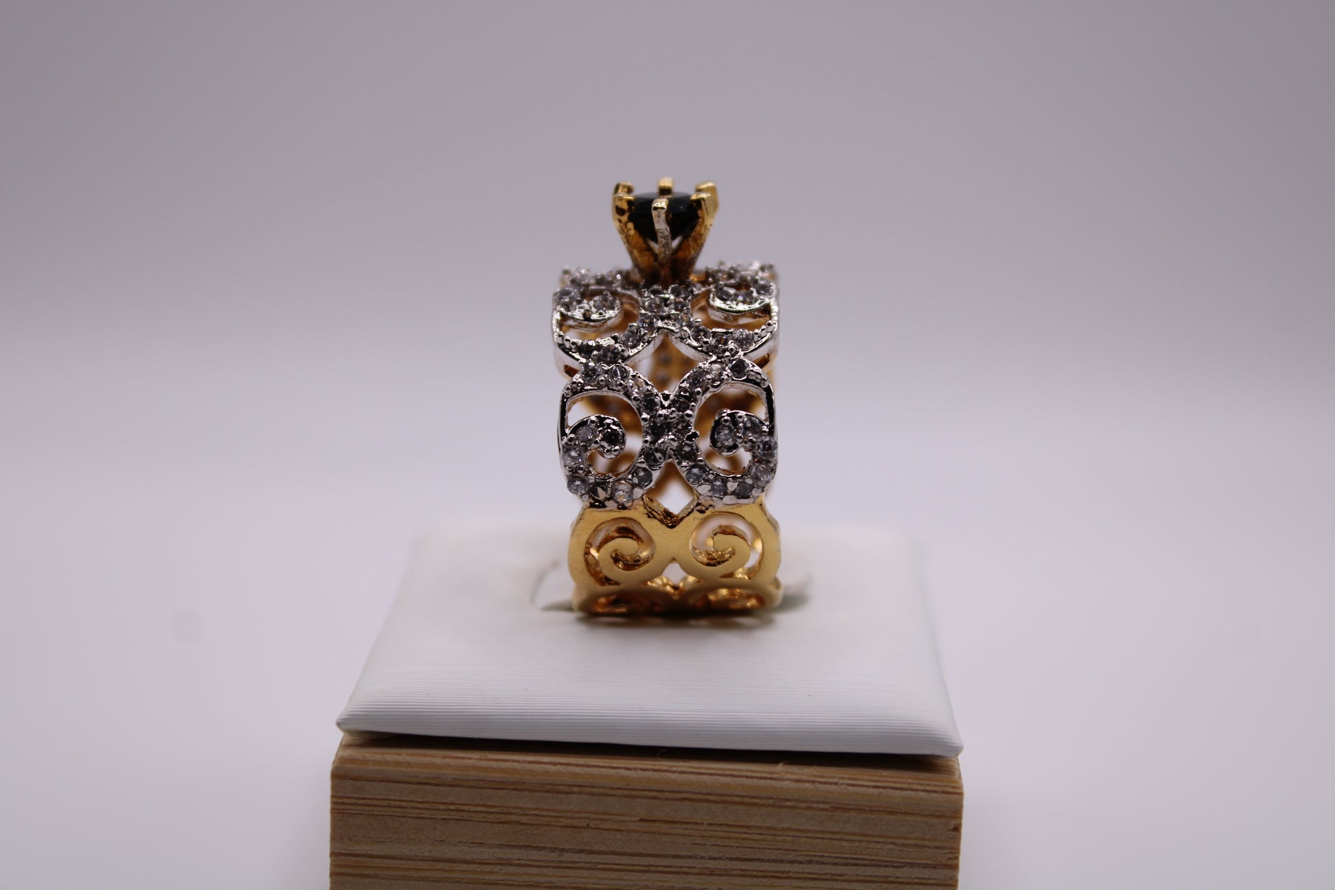 This stunning cubic zirconia statement ring is the perfect addition to any look, both Eastern and Western.